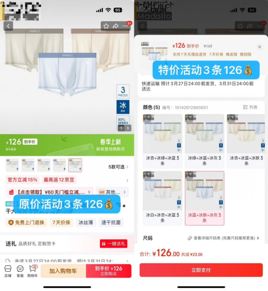 “冰丝内裤是夏天的‘隐形空调’, 总结暴击:专柜品质×白菜价格 原价199元的4条装,渠道专享49.9元 单条不到12.5元!比超市杂牌还便宜! 专柜同款单条卖49.9+!直接打2.5折! 库存仅剩2000组!预计秒抢空!