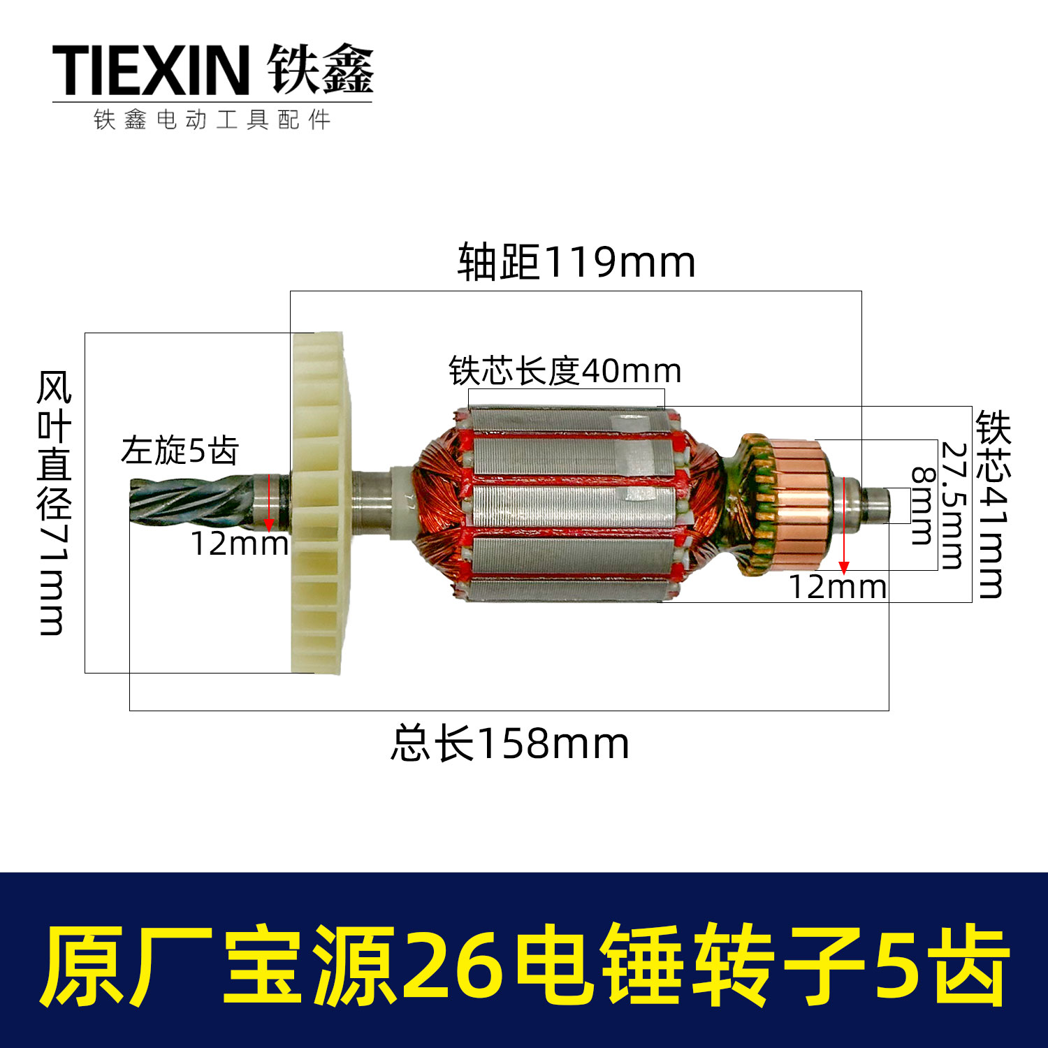【货号07577】原厂金华宝源26电锤转子5齿40高26C电锤电机易博26冲击钻电机