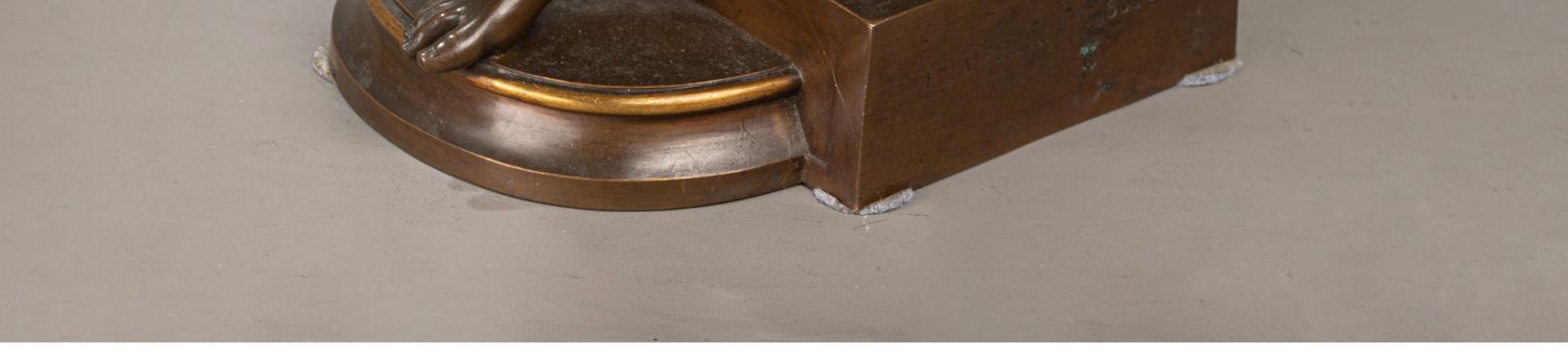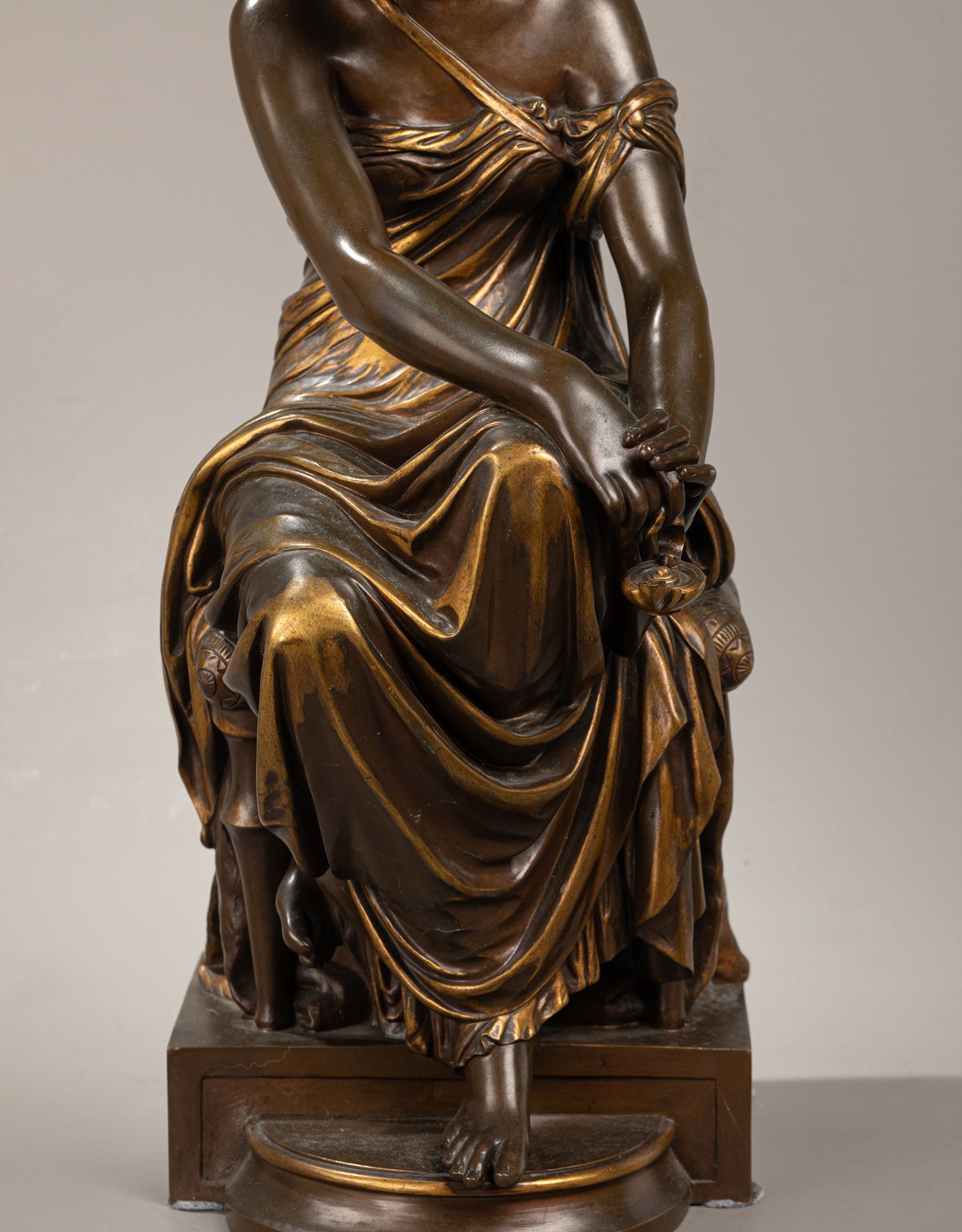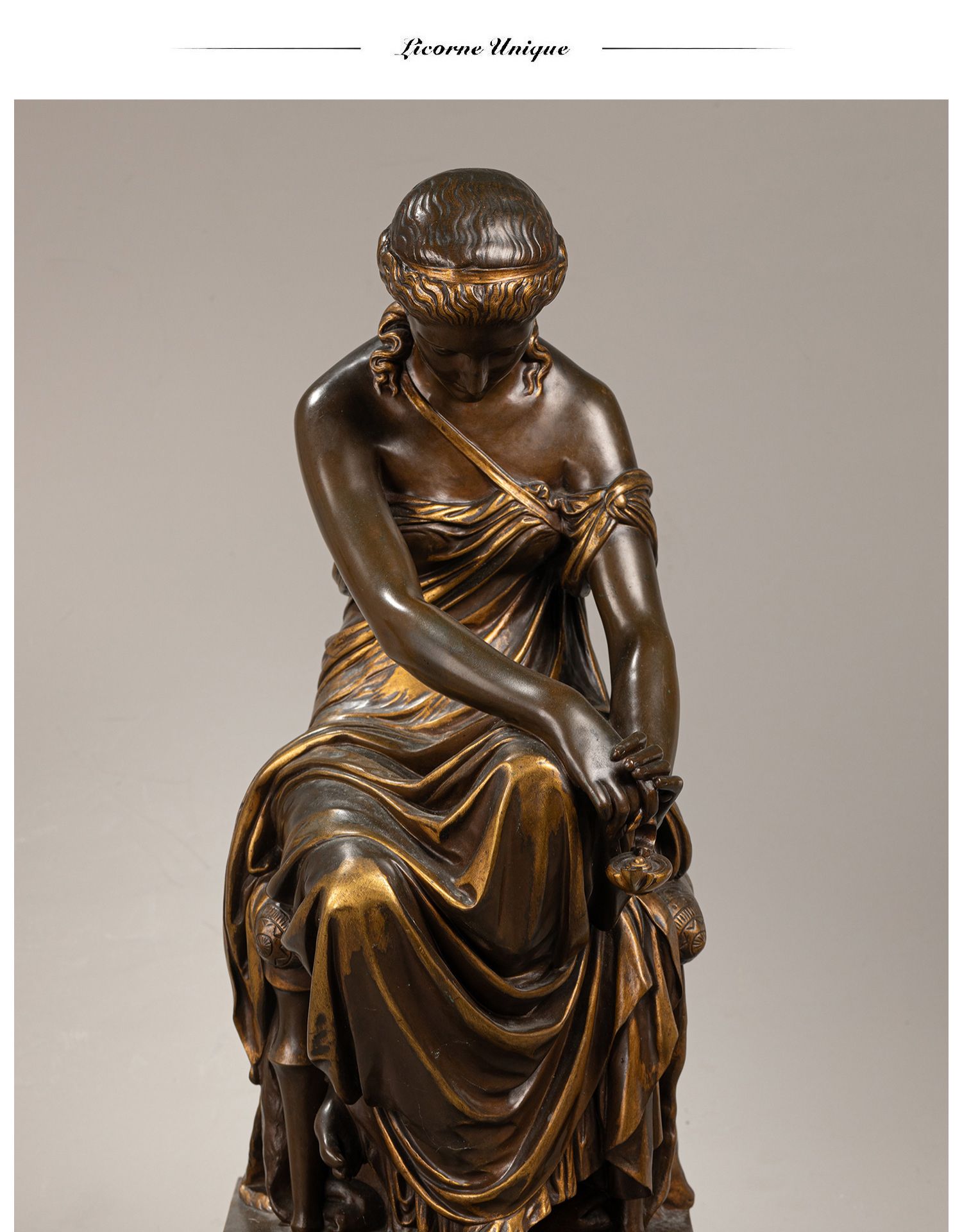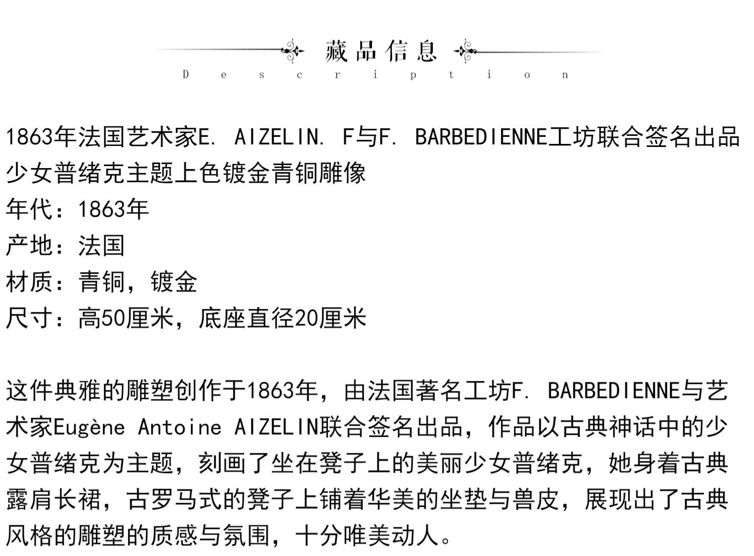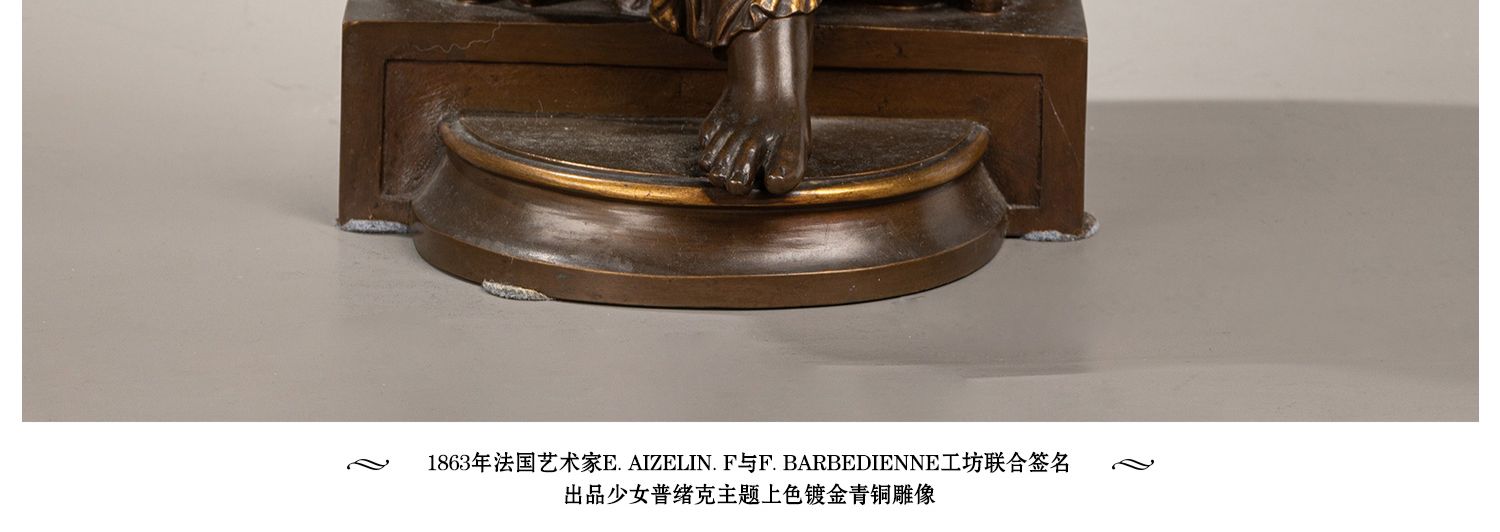 独角鹿西洋古董艺术家与工坊联合签名少女普绪克上色镀金青铜雕像