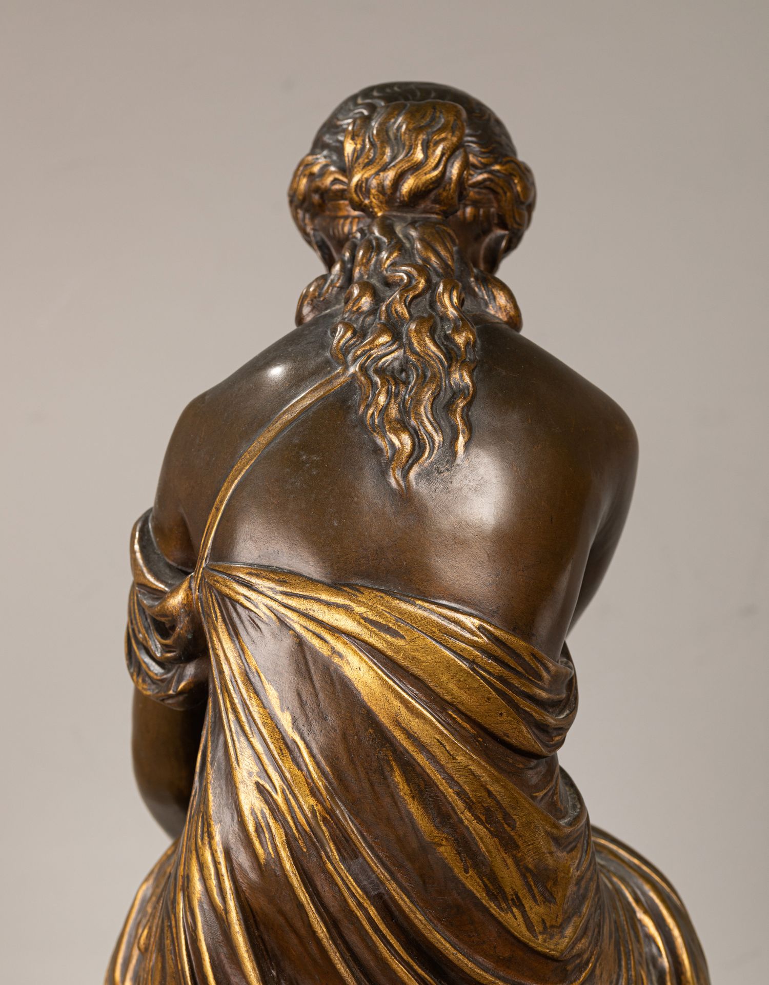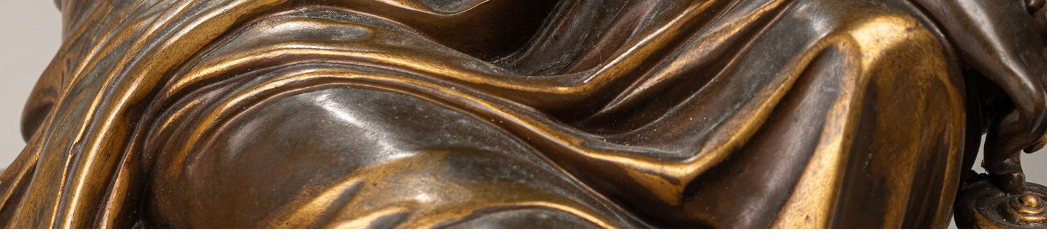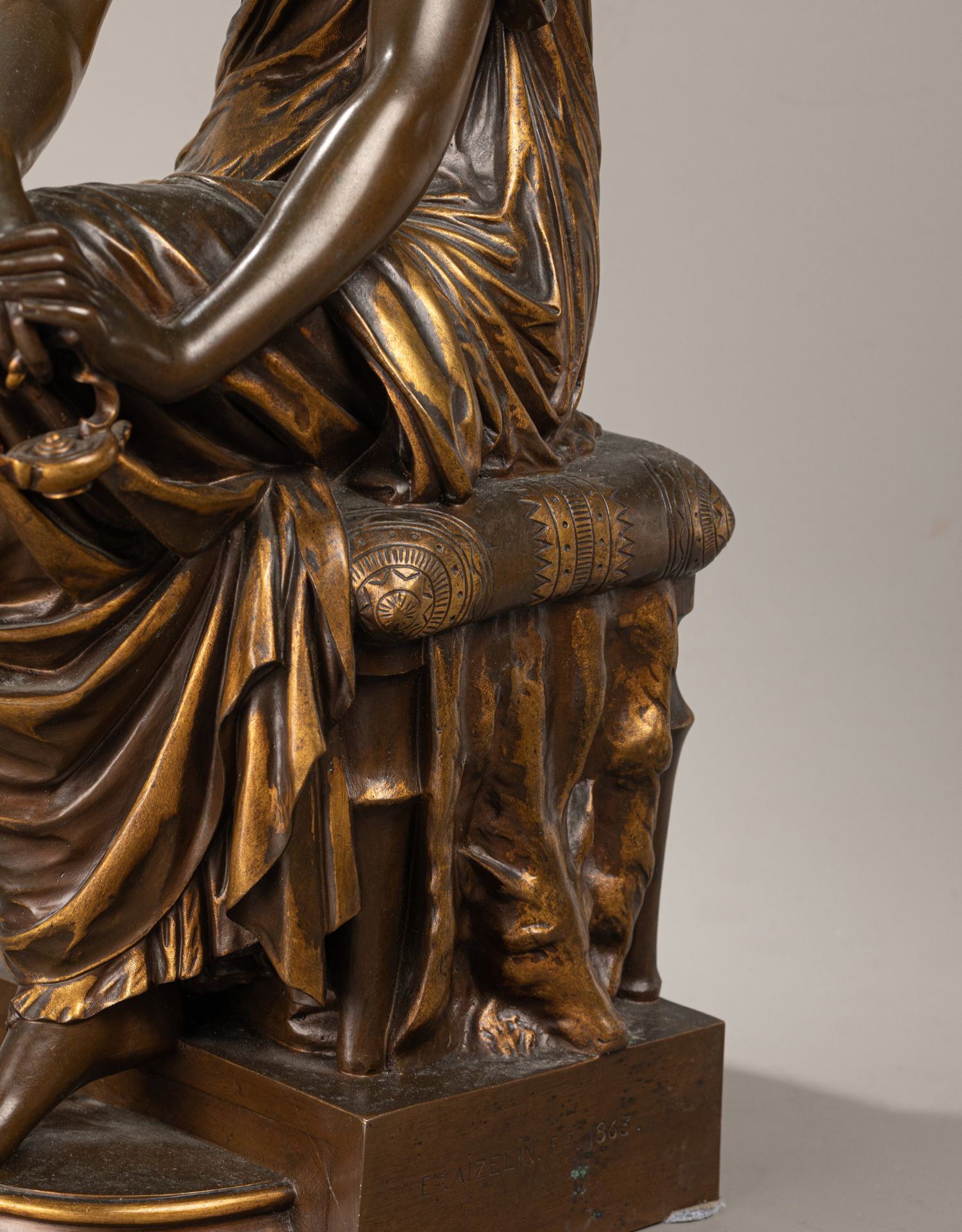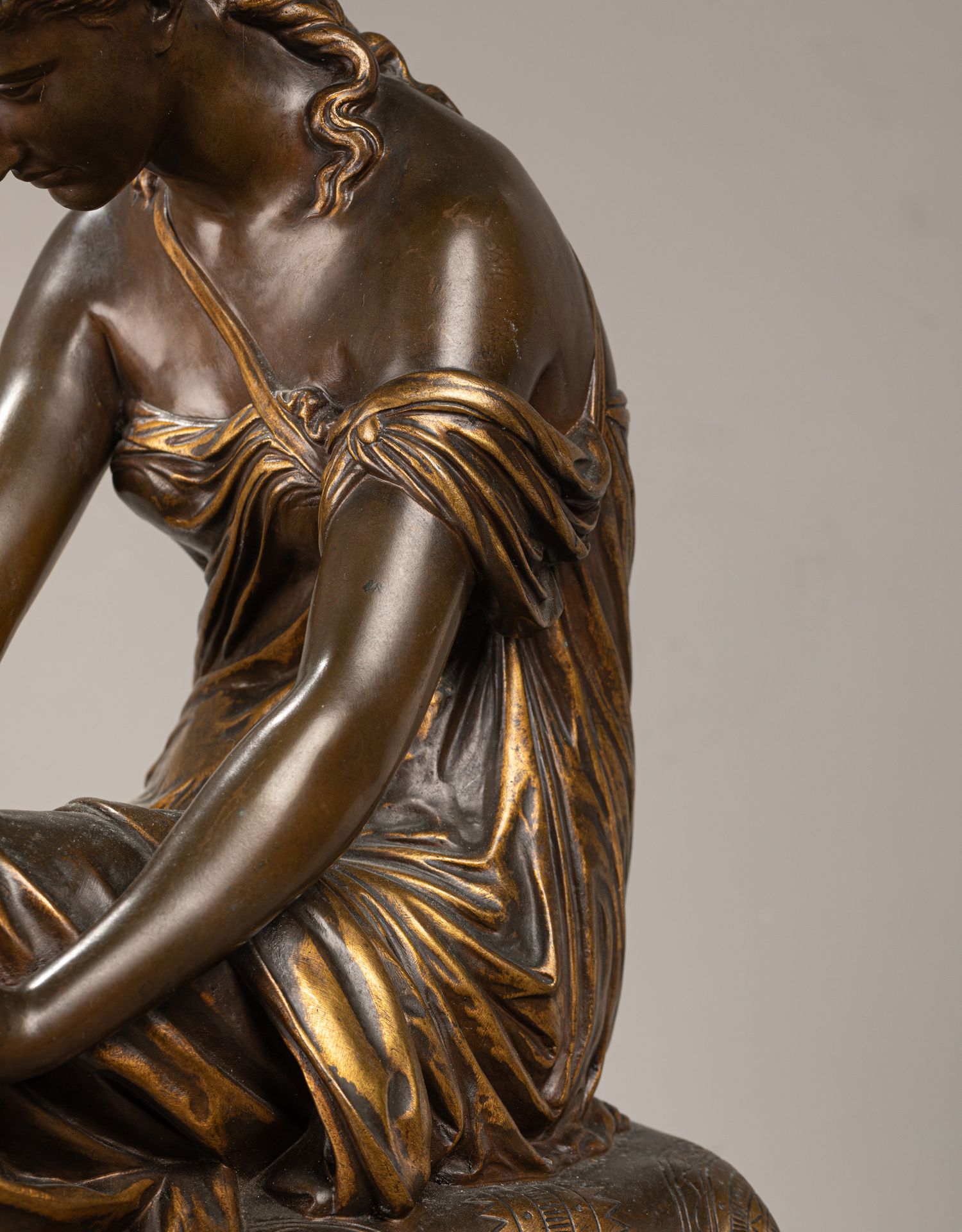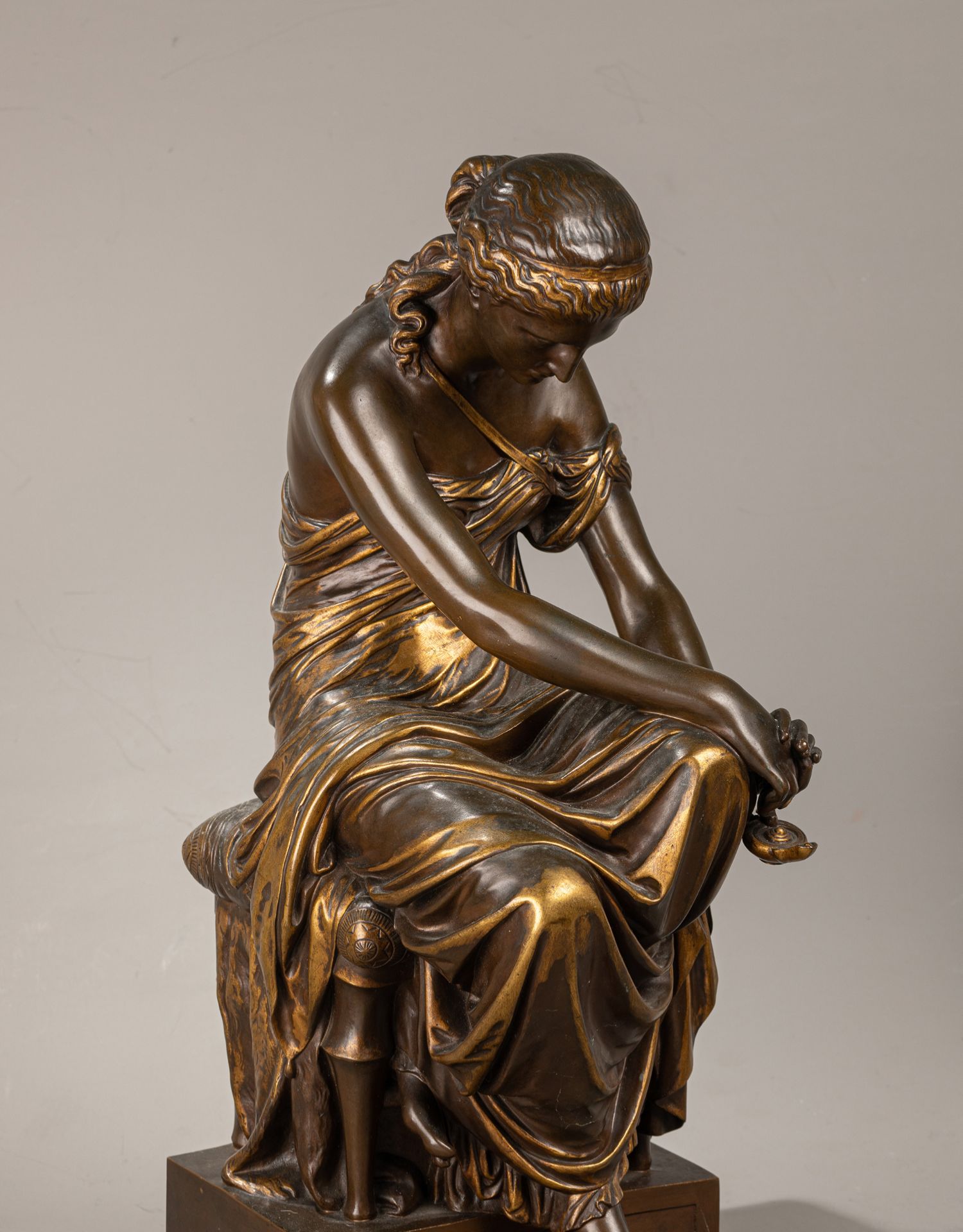 独角鹿西洋古董艺术家与工坊联合签名少女普绪克上色镀金青铜雕像