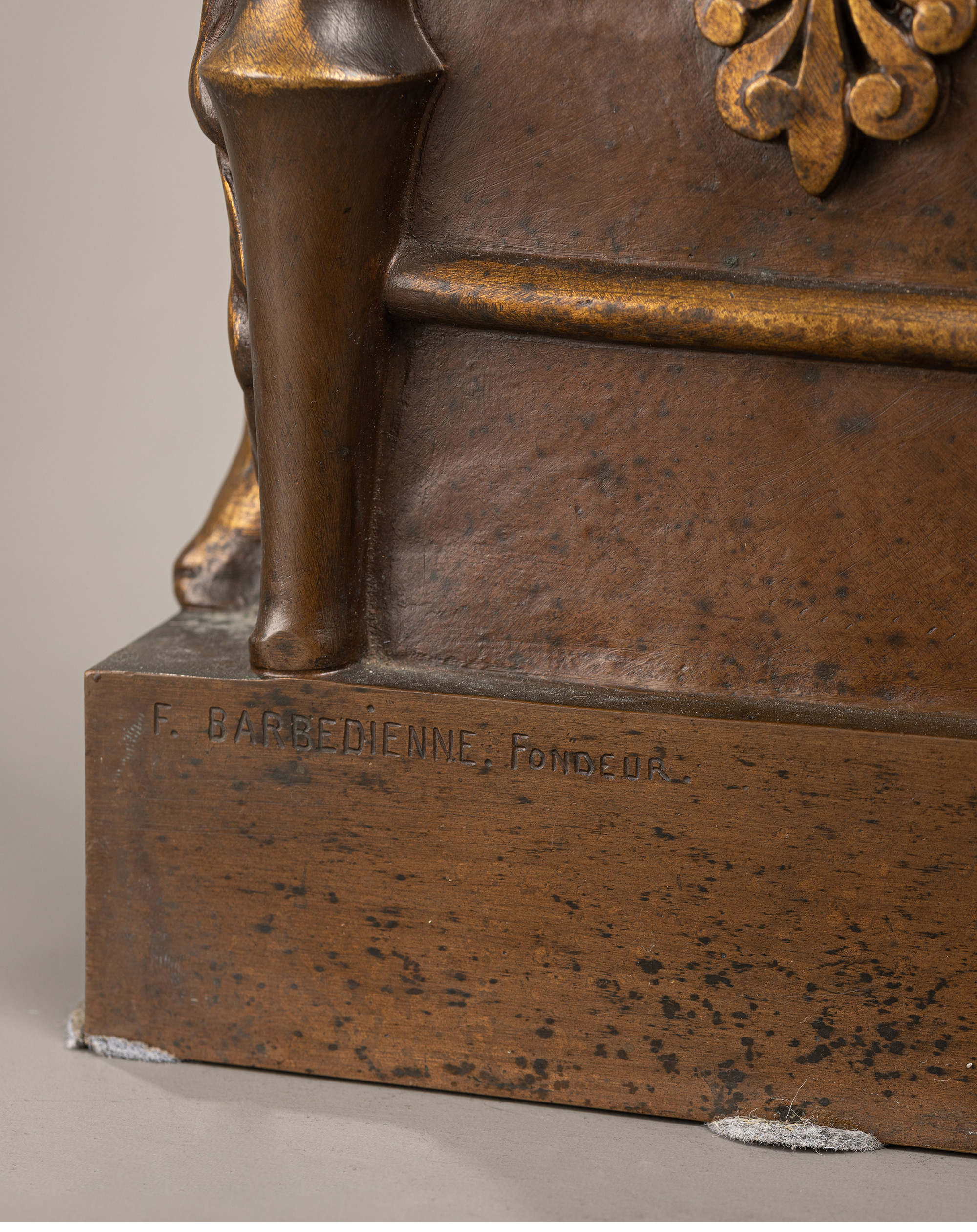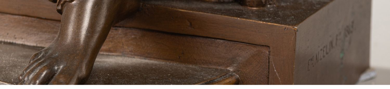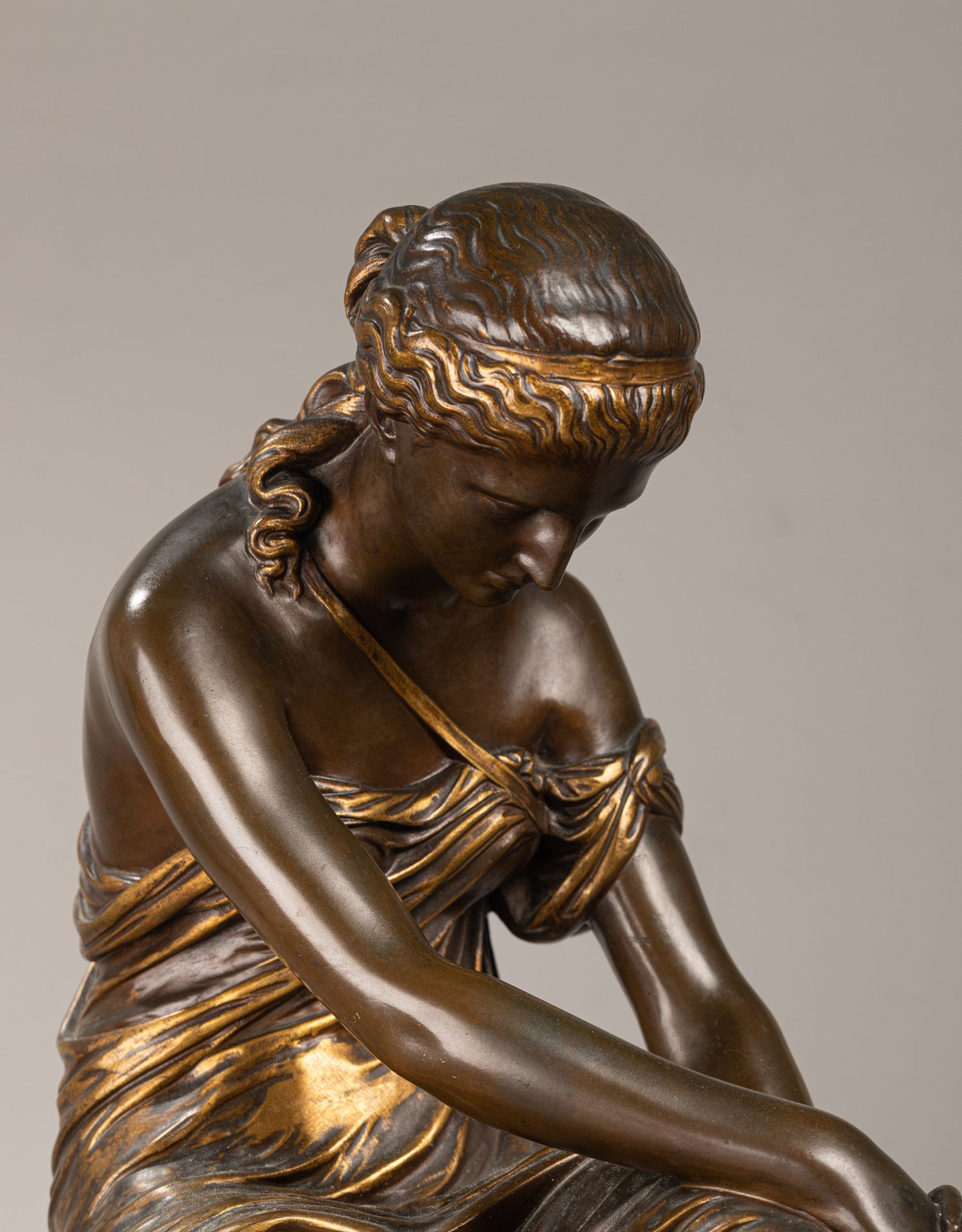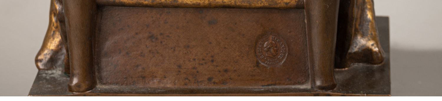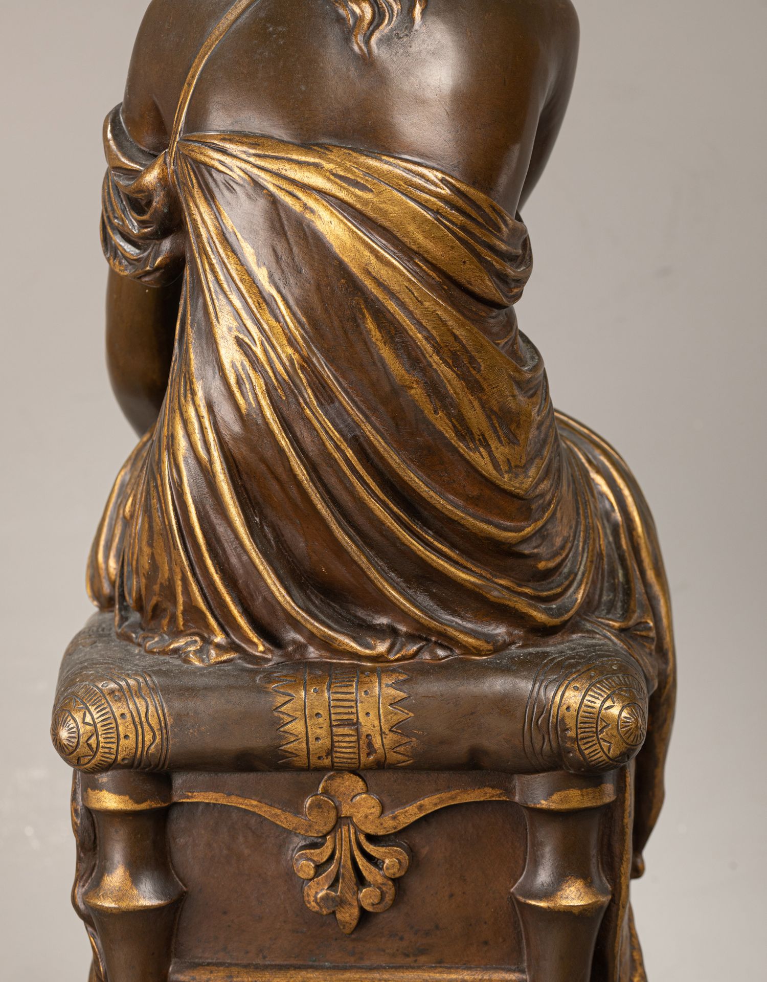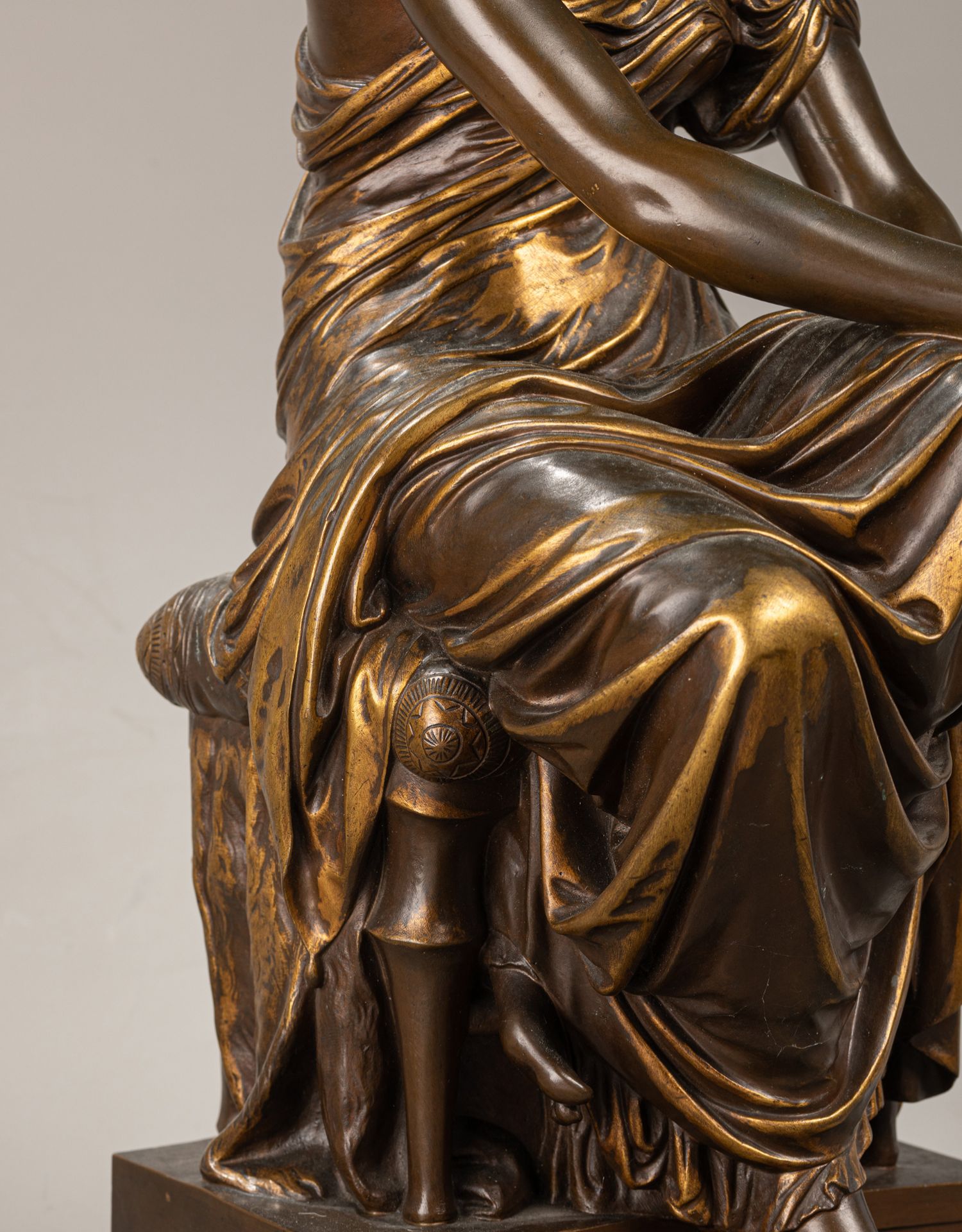 独角鹿西洋古董艺术家与工坊联合签名少女普绪克上色镀金青铜雕像