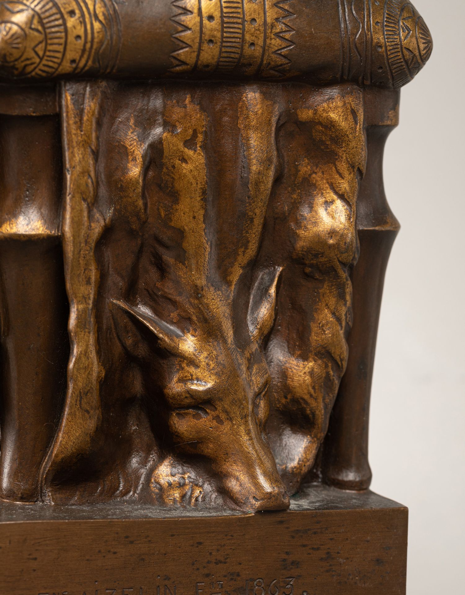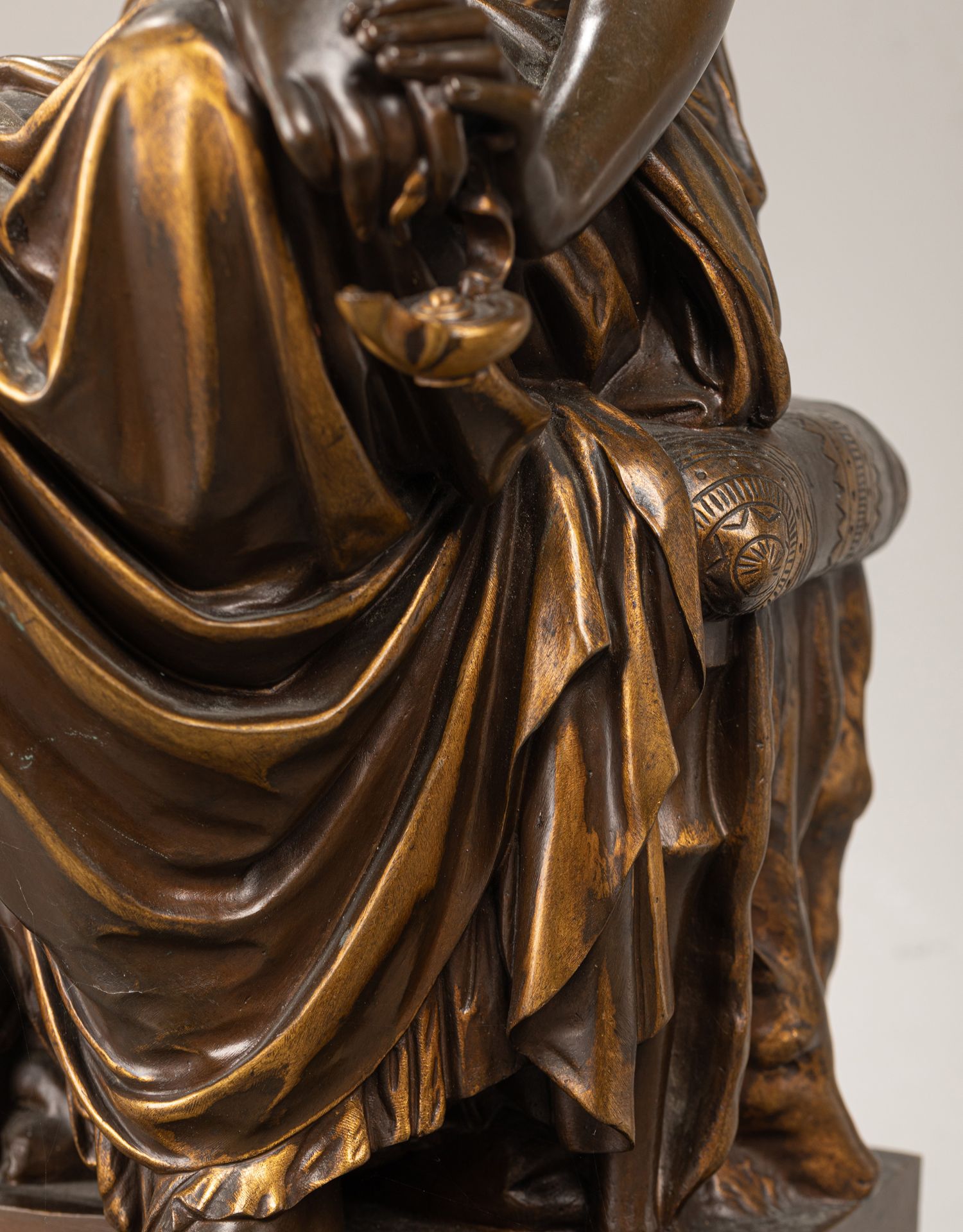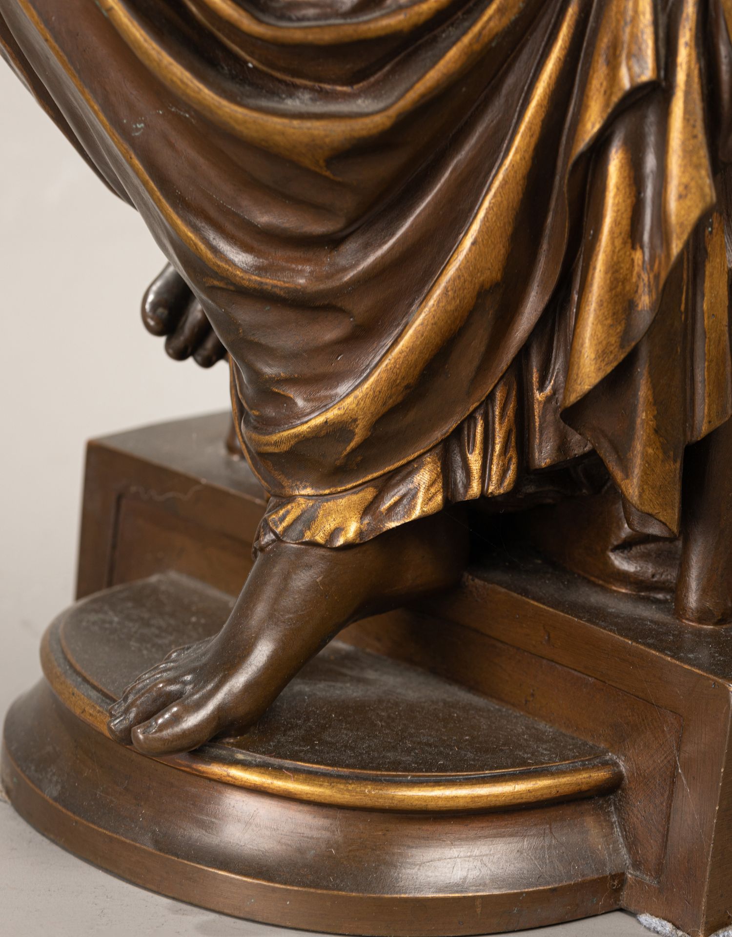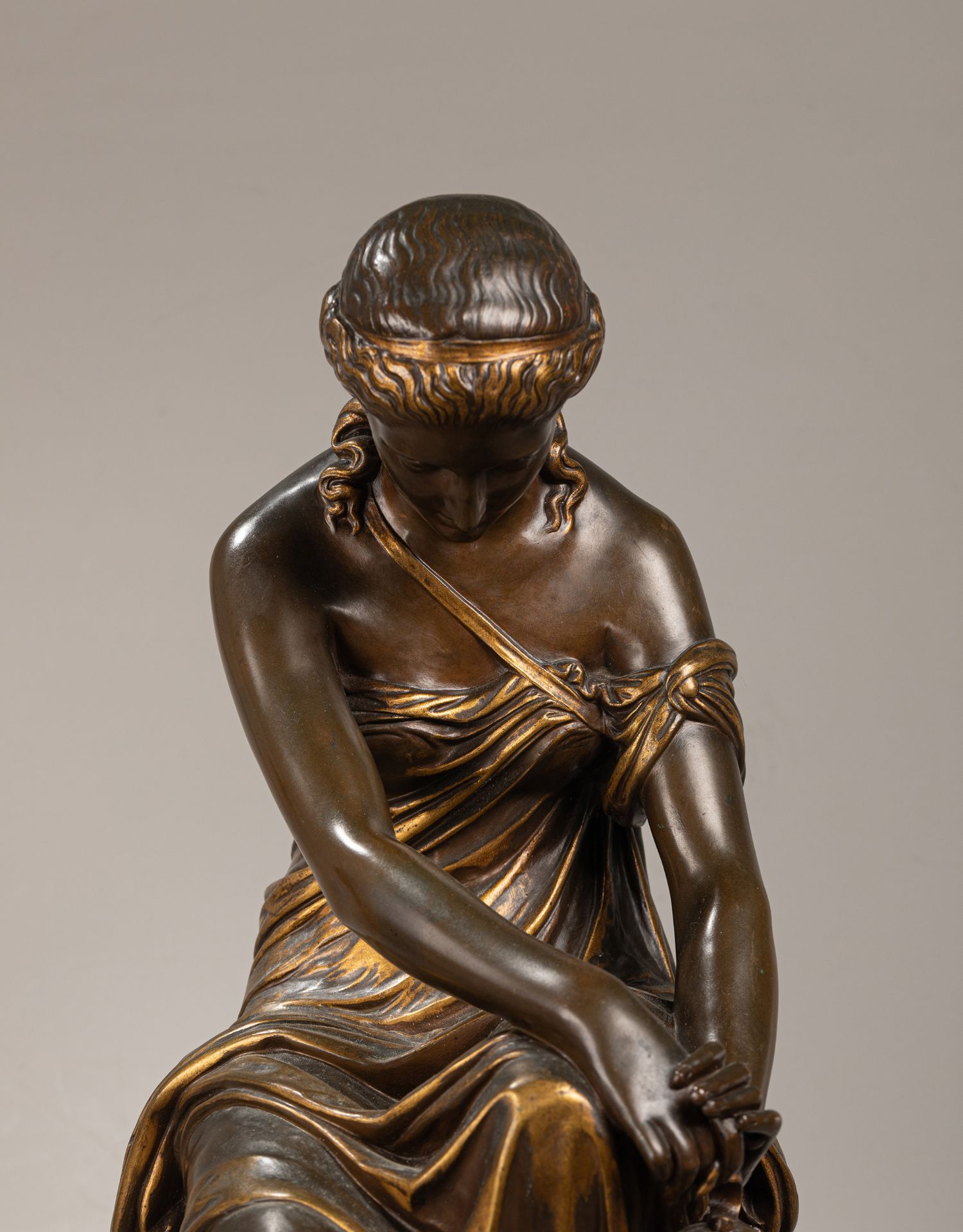 独角鹿西洋古董艺术家与工坊联合签名少女普绪克上色镀金青铜雕像
