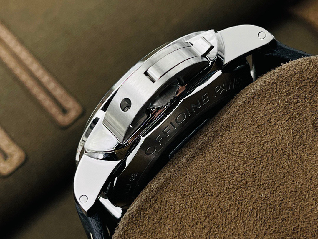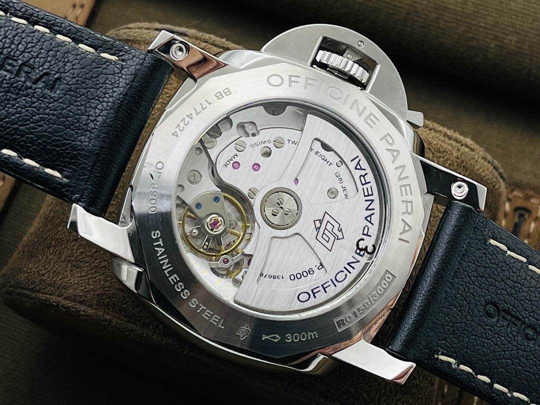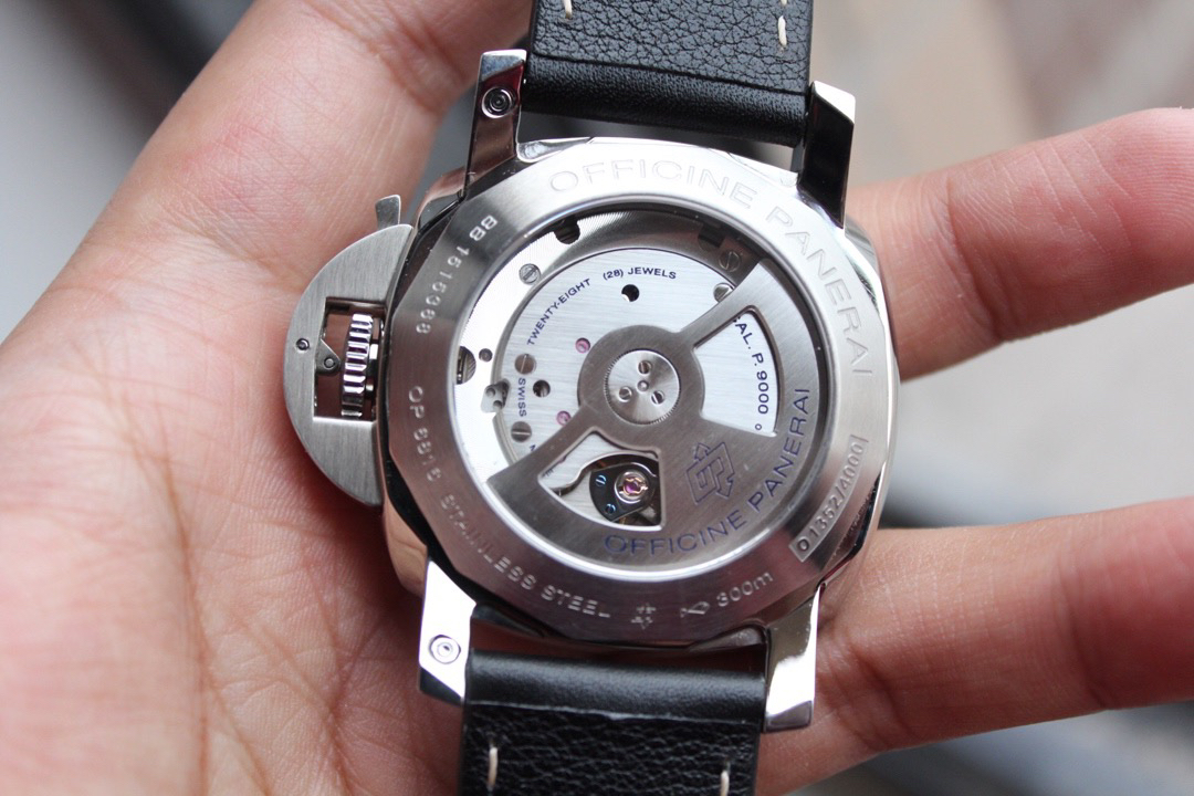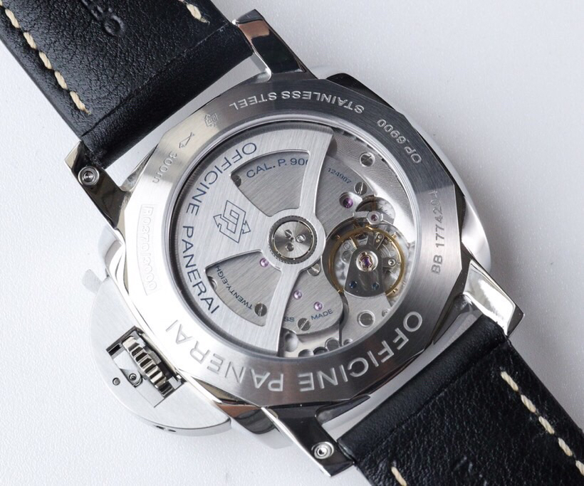 VS沛纳海V2升级版pam00359/PAM359。经过两年多的研发,克隆了原装全自动p.9000机械机芯,通过背面透底可以看出避震器摆轮位