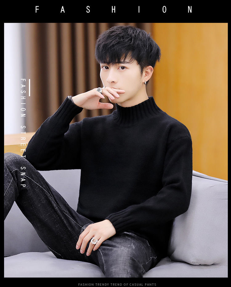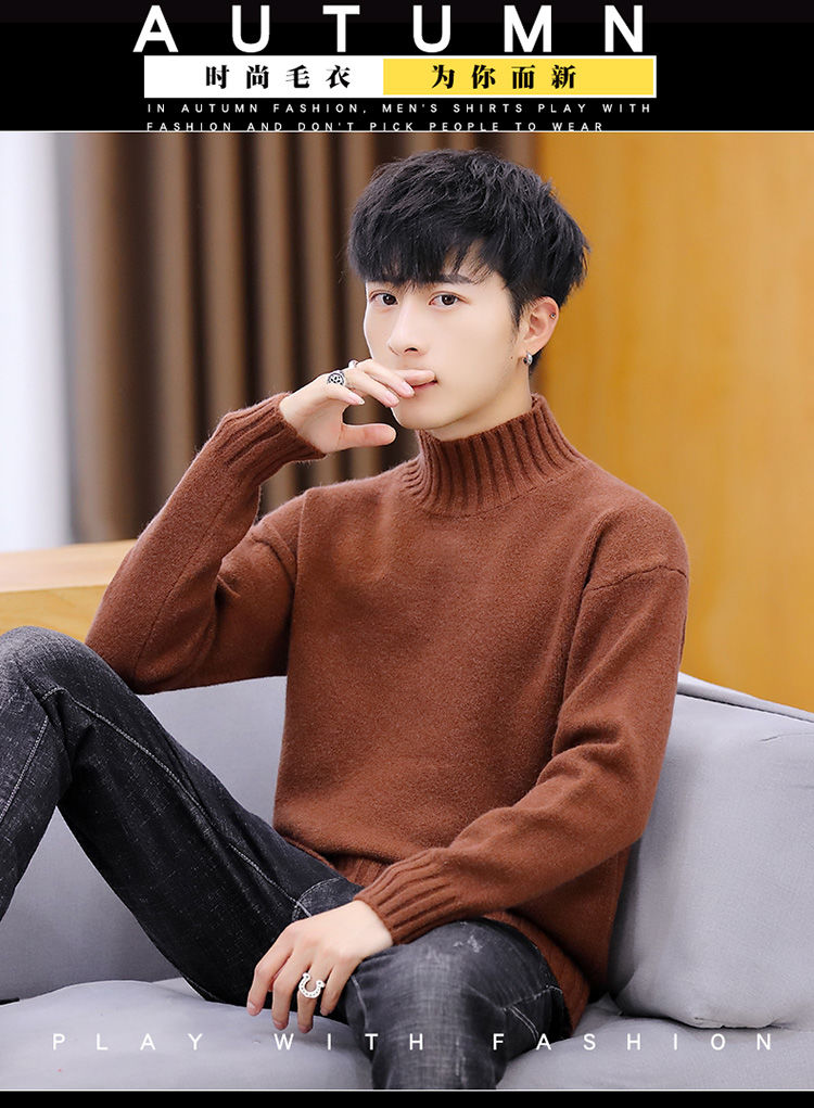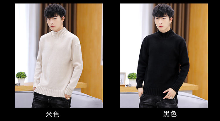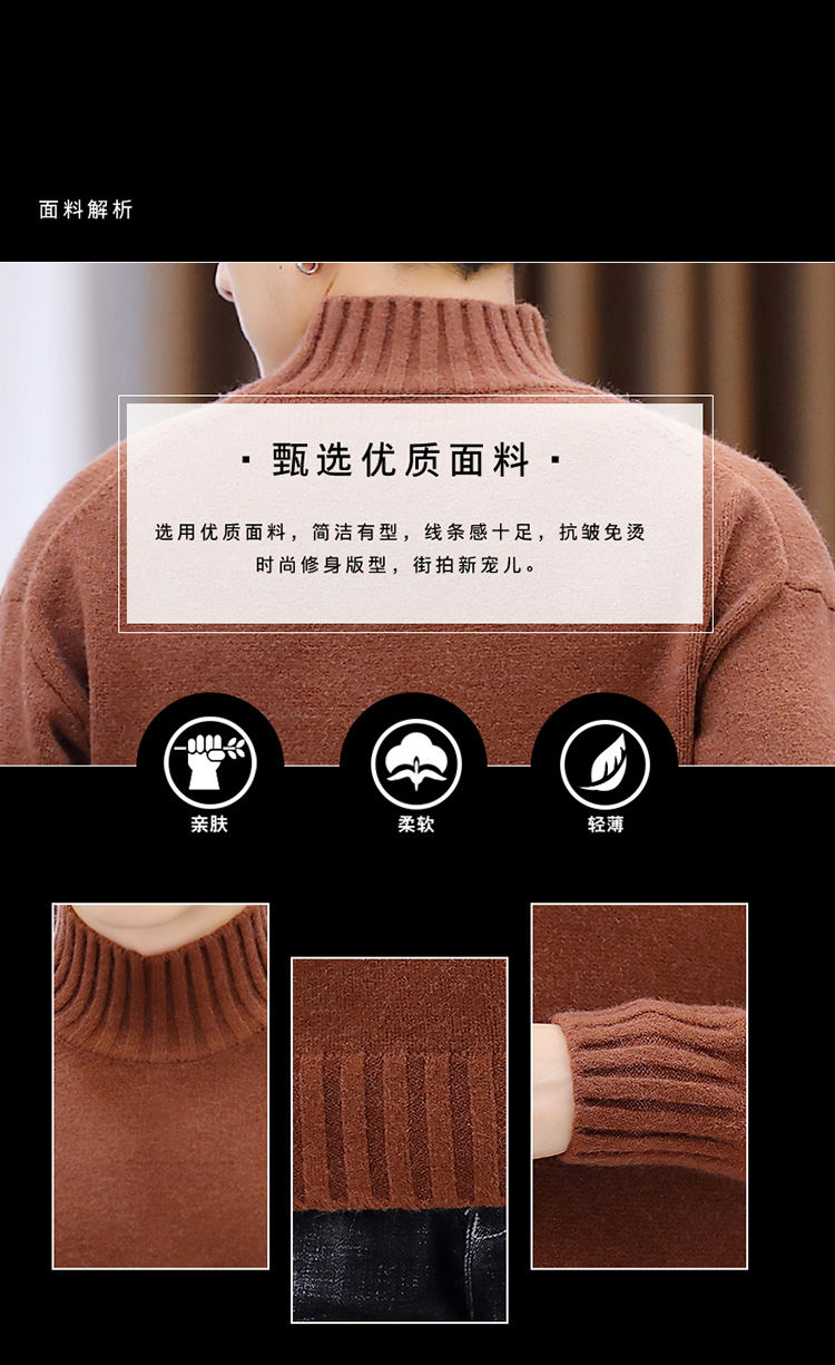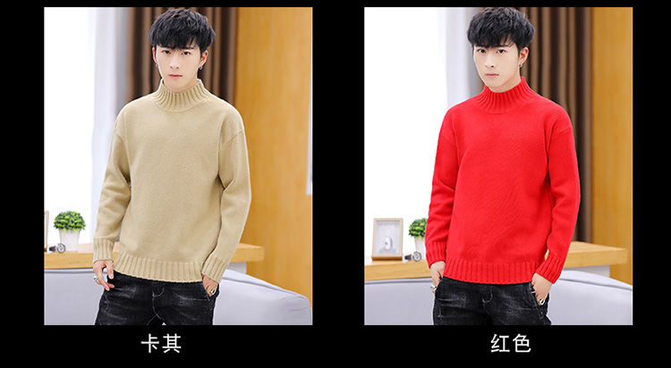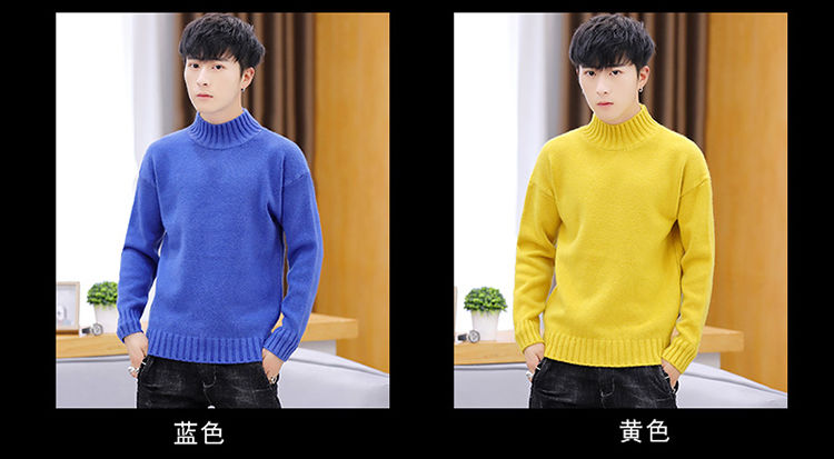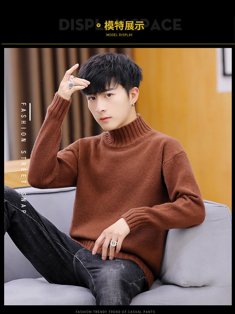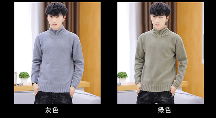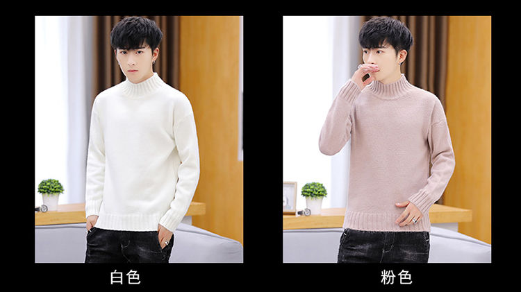 买一送一!毛衣男韩版秋冬新款加绒加厚纯色半高领针织衫青年学生保暖打底衫