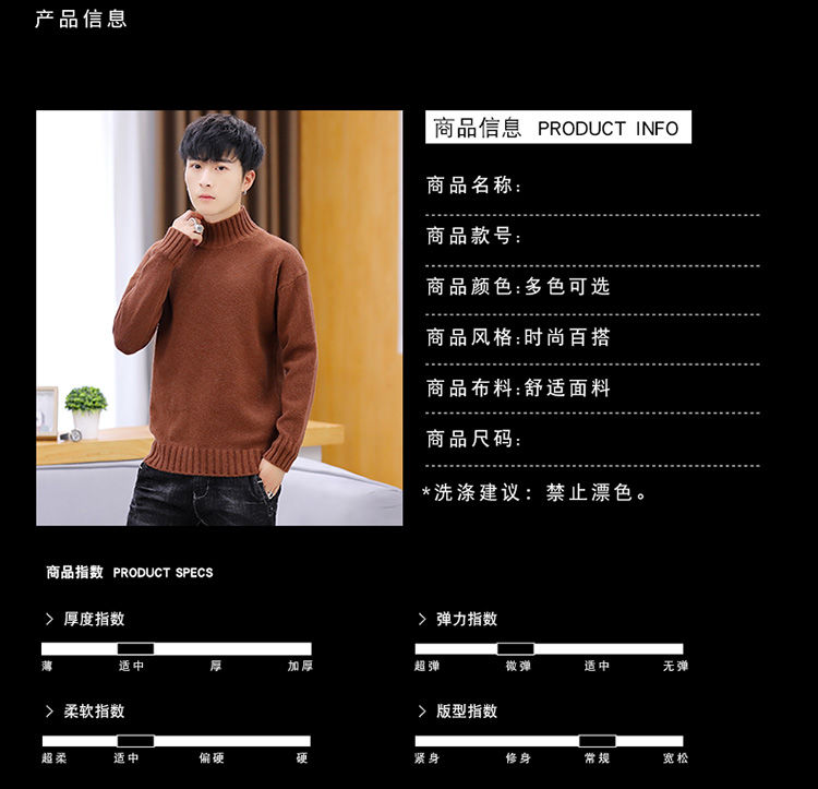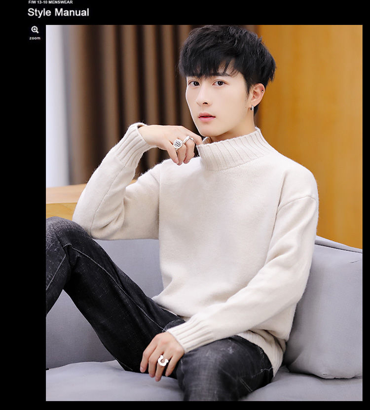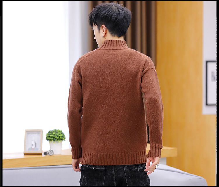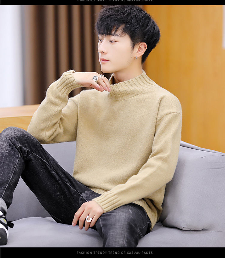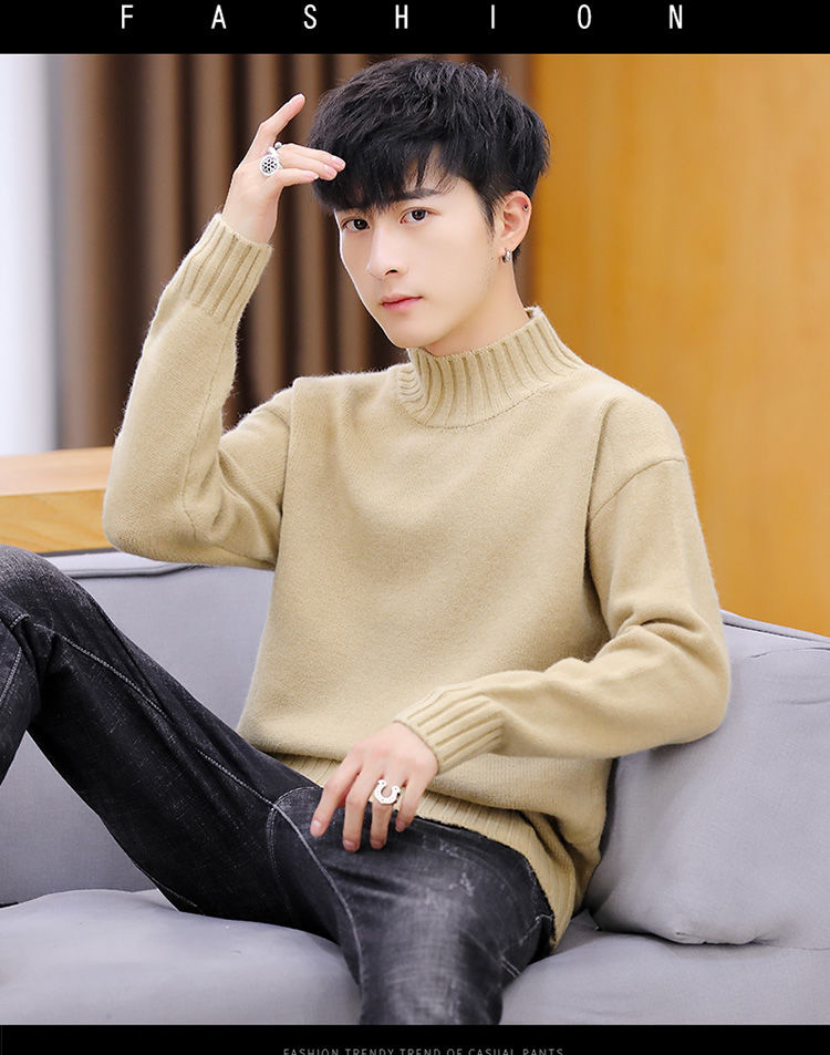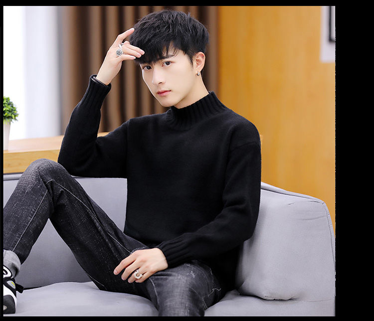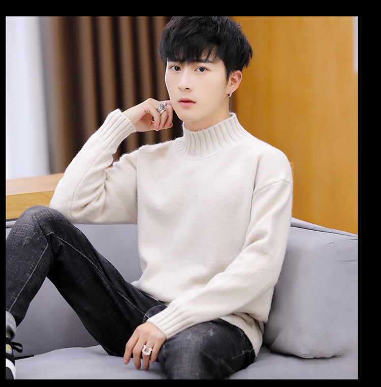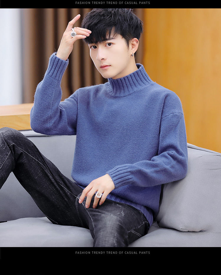 买一送一!毛衣男韩版秋冬新款加绒加厚纯色半高领针织衫青年学生保暖打底衫