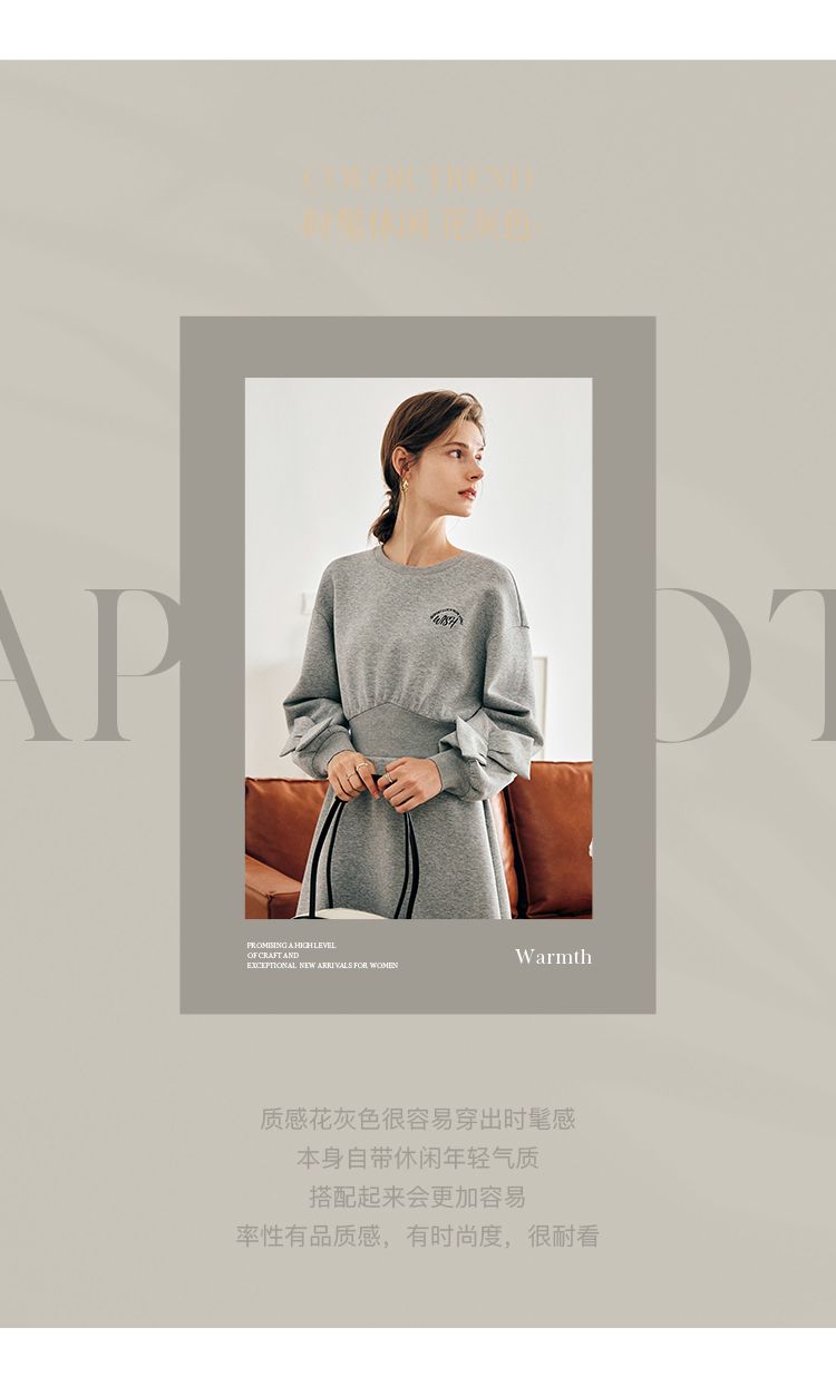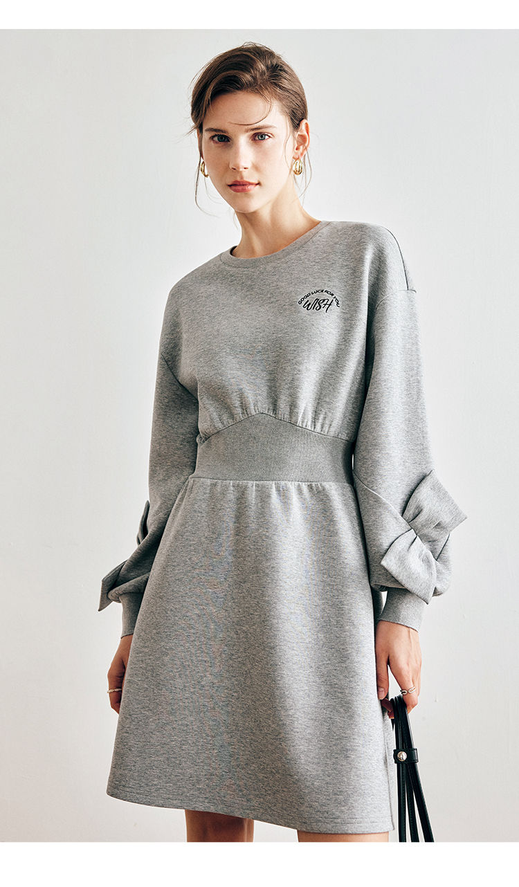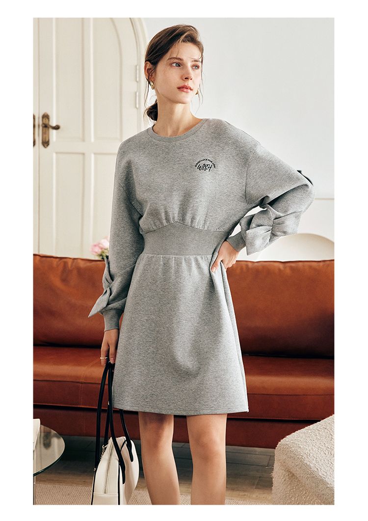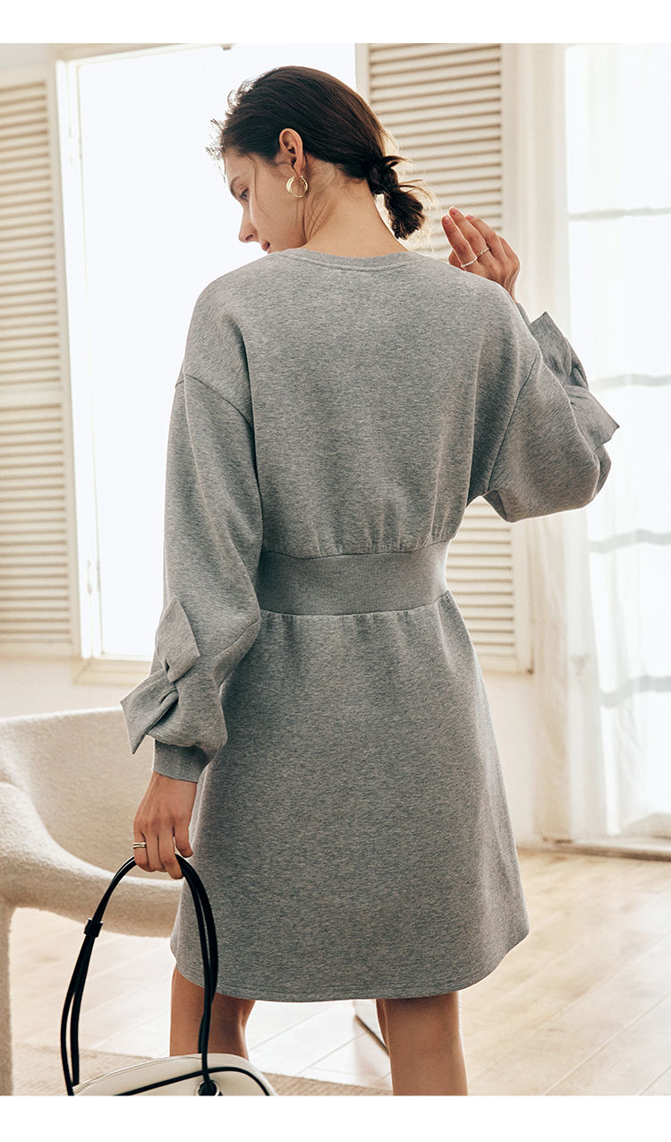 OLrain欧芮儿法式灰色针织连衣裙女早春2023新款收腰设计感卫衣裙