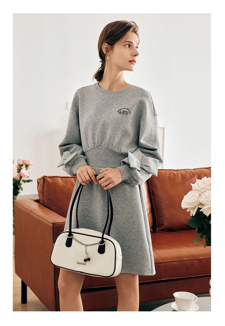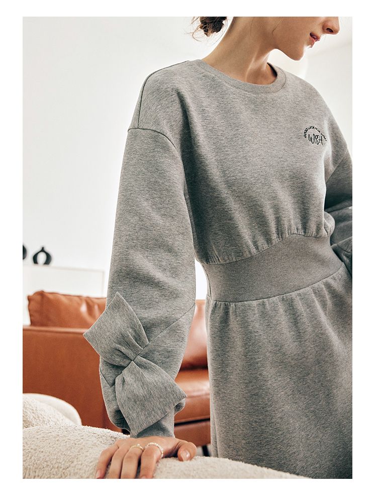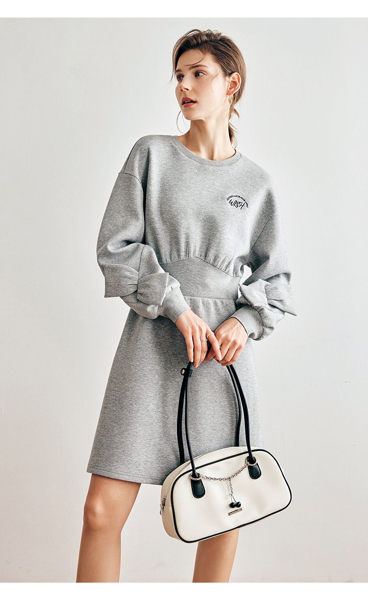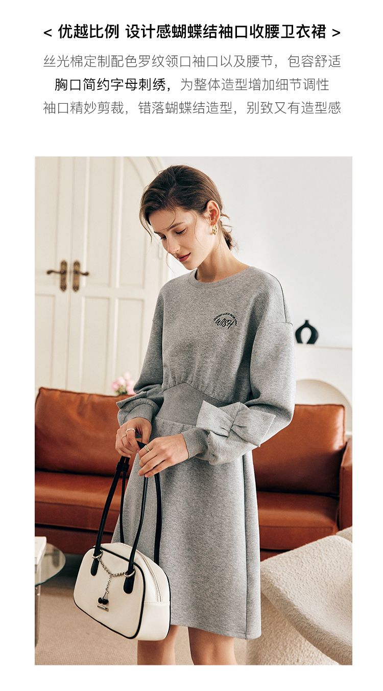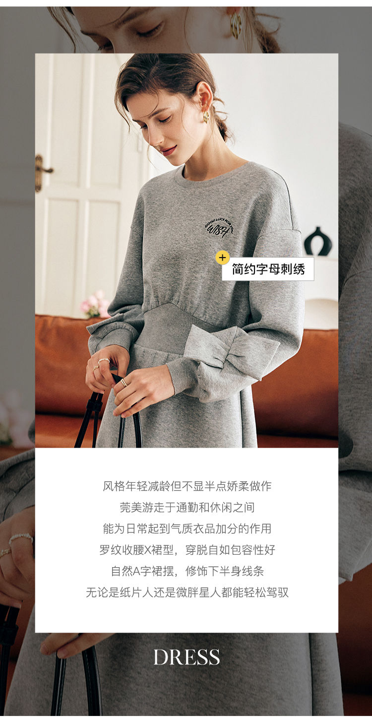 OLrain欧芮儿法式灰色针织连衣裙女早春2023新款收腰设计感卫衣裙