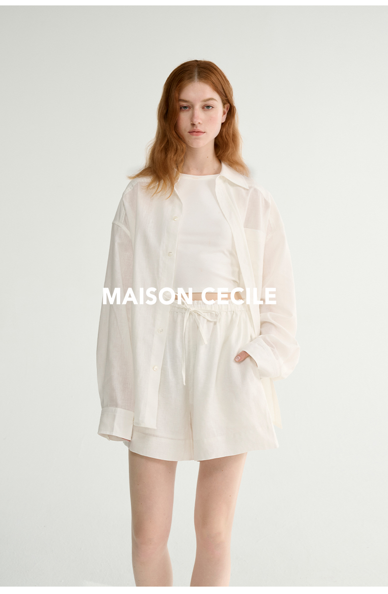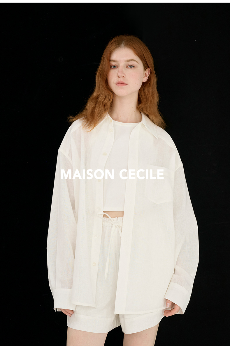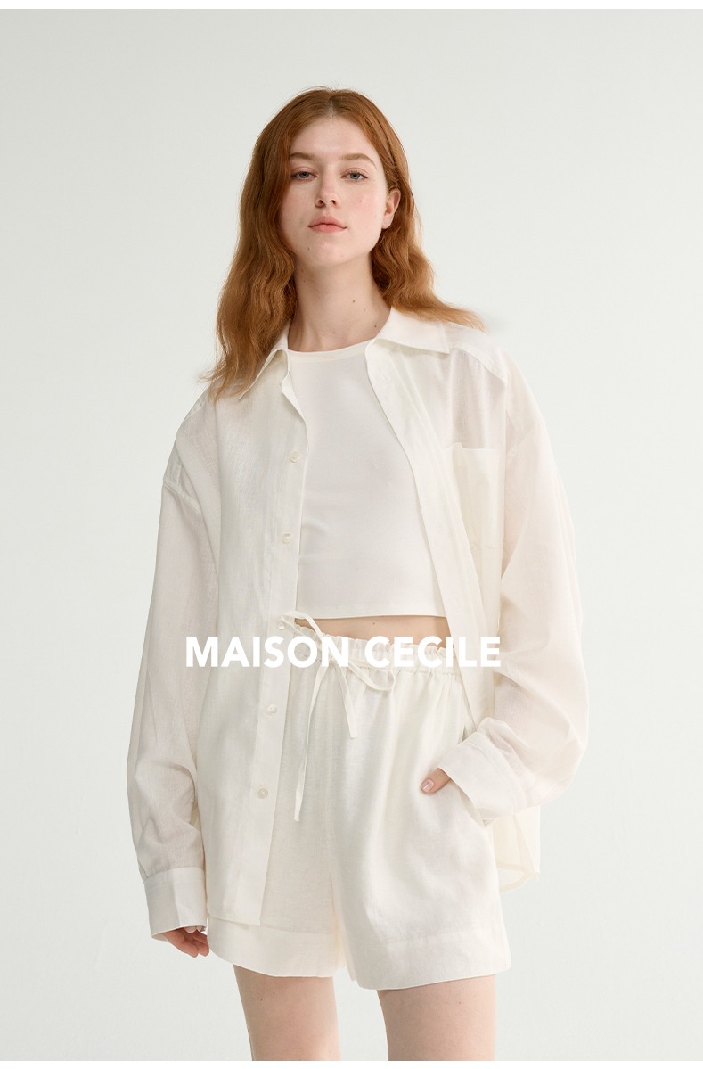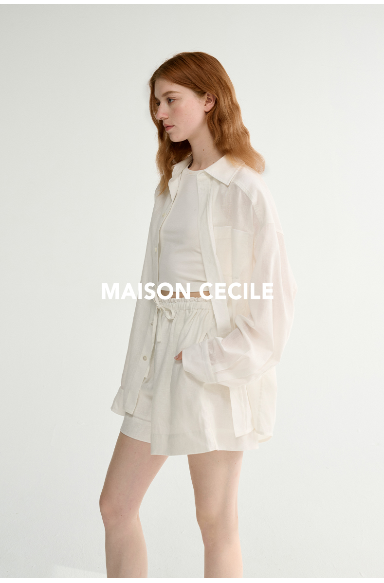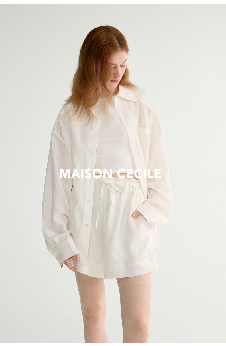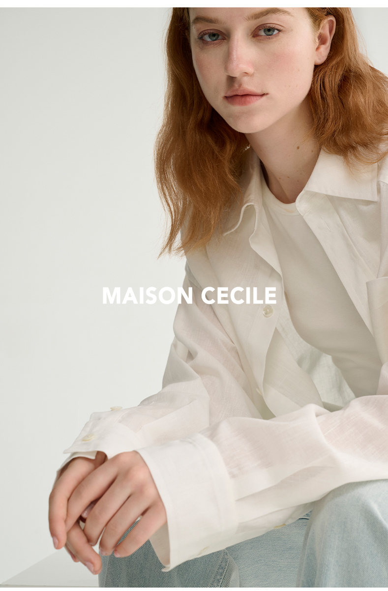 MAISON CECILE 亚麻肌理感清爽透气宽松简约男友风翻领百搭白衬衫