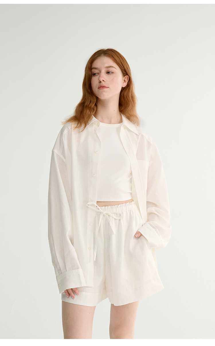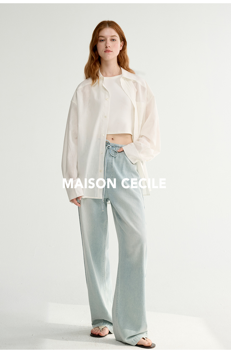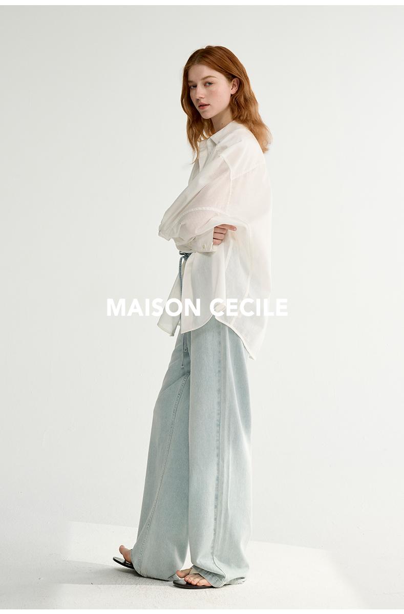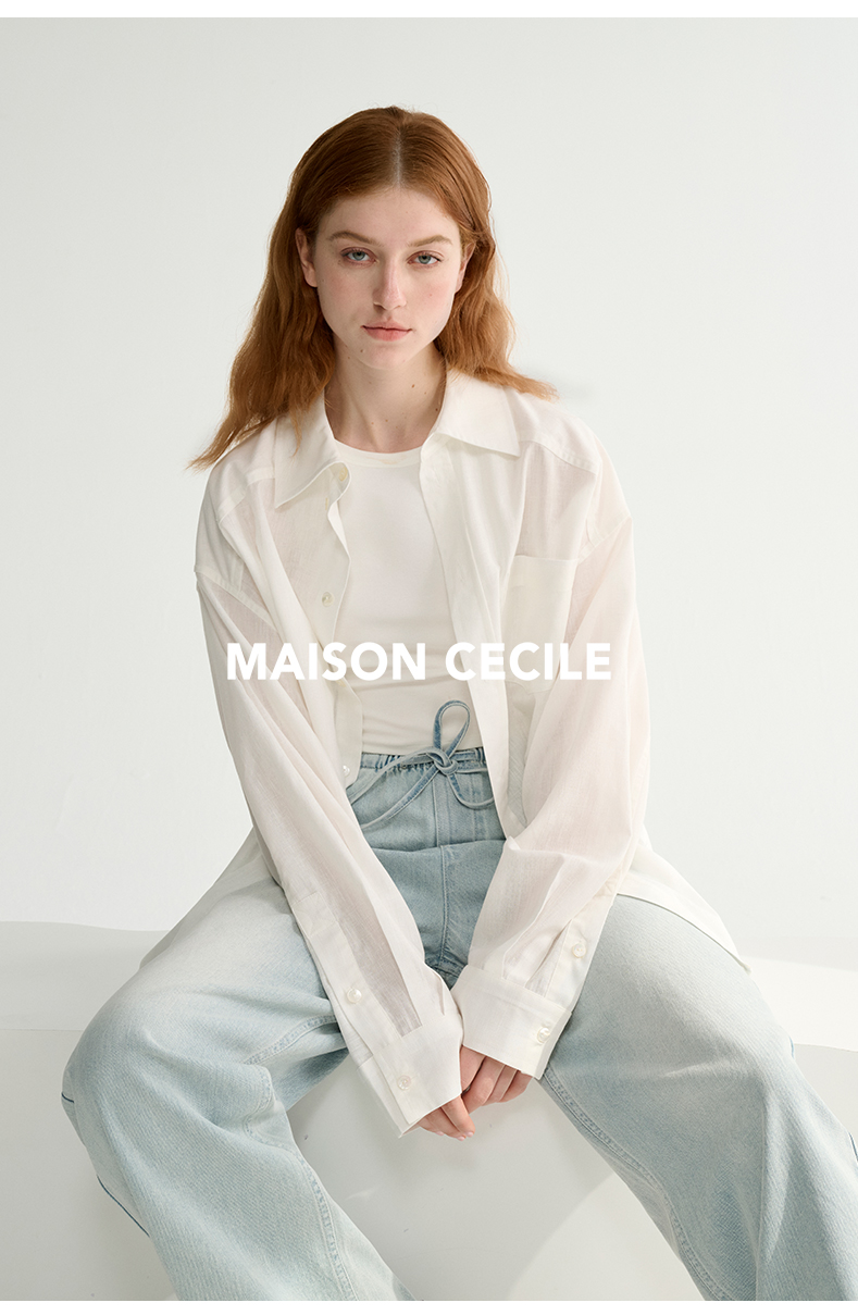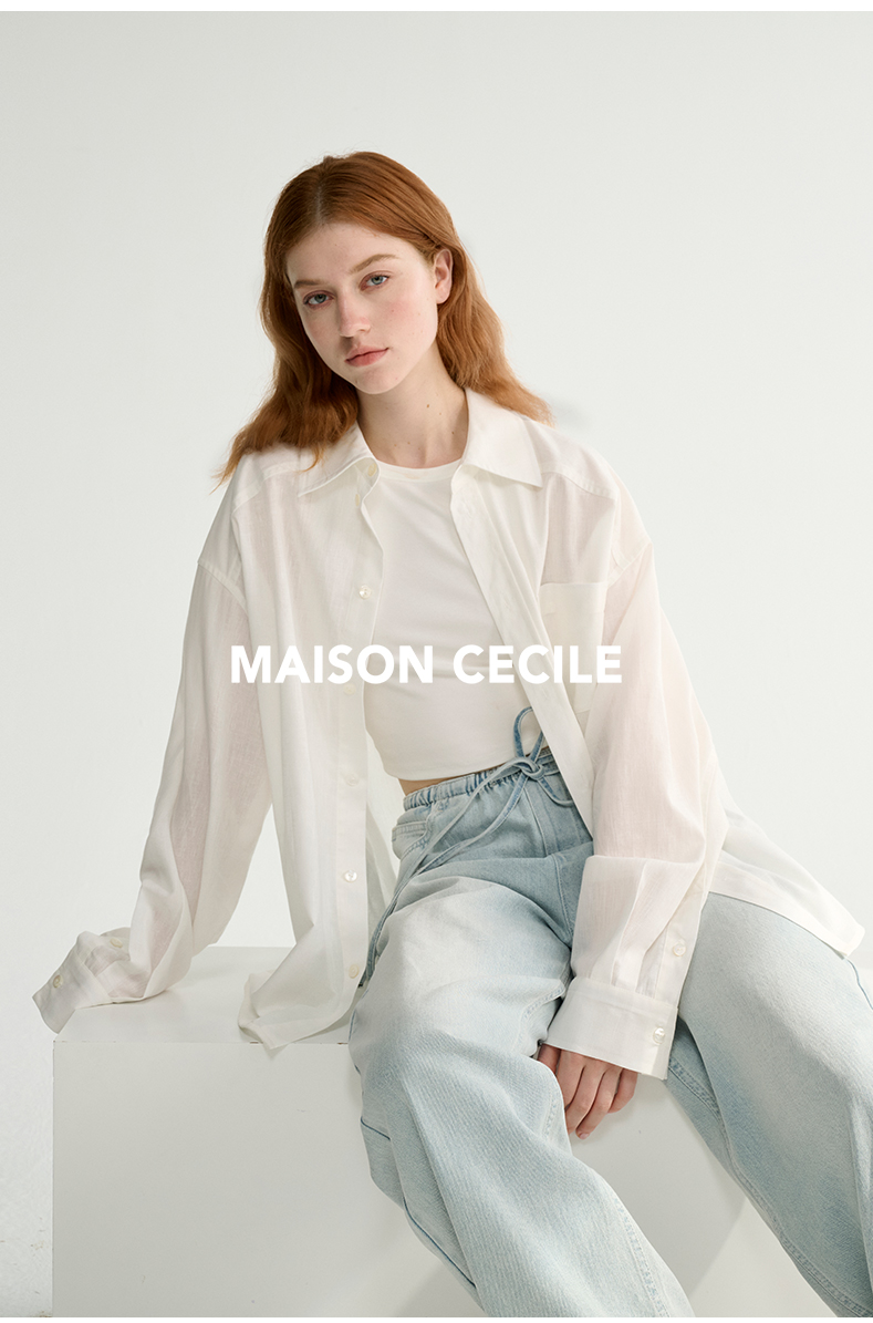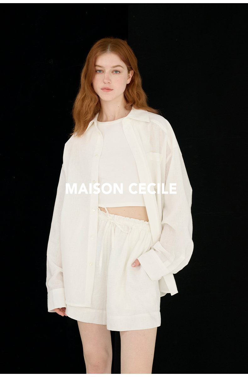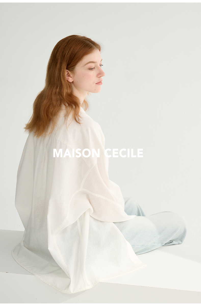 MAISON CECILE 亚麻肌理感清爽透气宽松简约男友风翻领百搭白衬衫