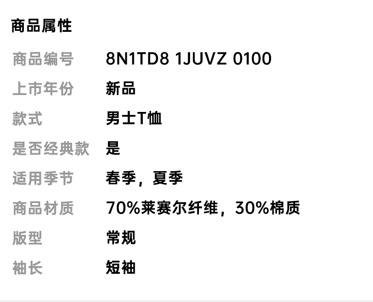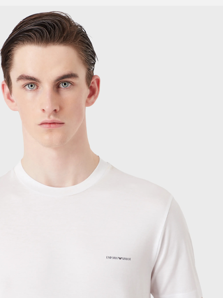 【二】EMPORIO ARMANI 阿玛尼 男士莱赛尔纤维混纺字母徽标印花圆领短袖T恤 白色 8N1TD8 1JUVZ 0100