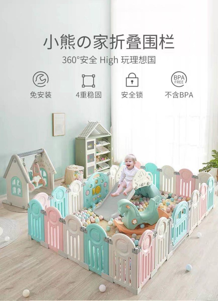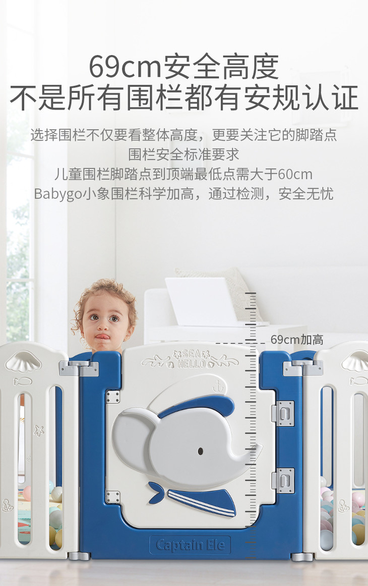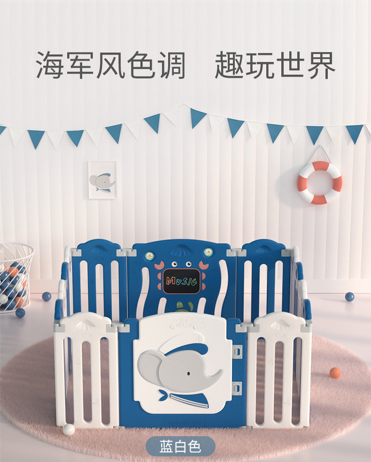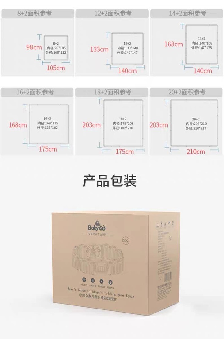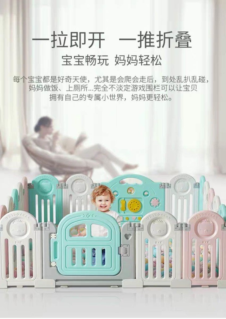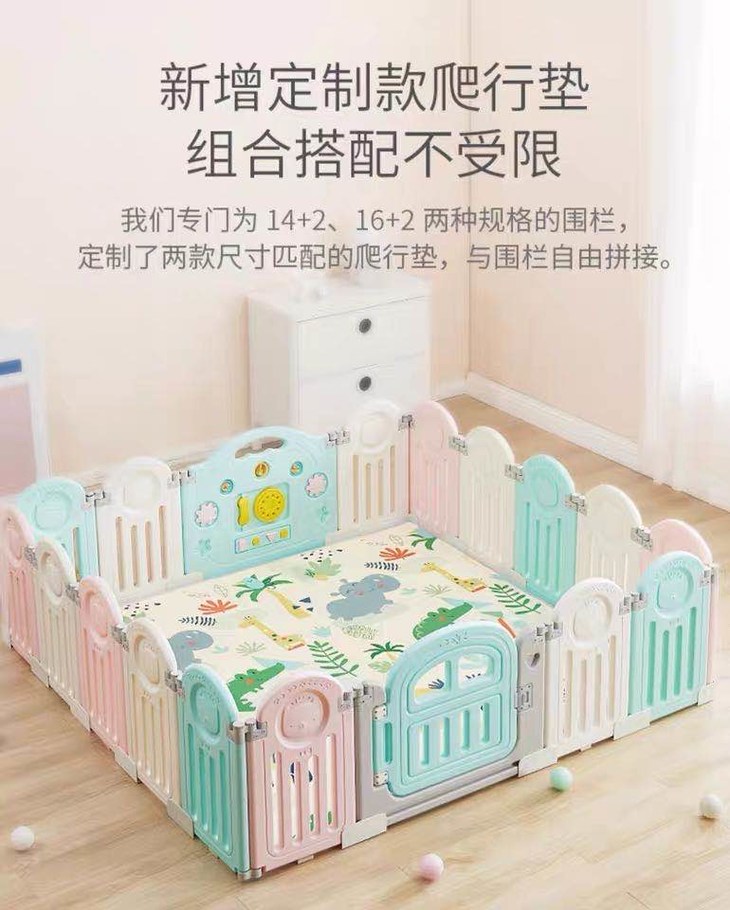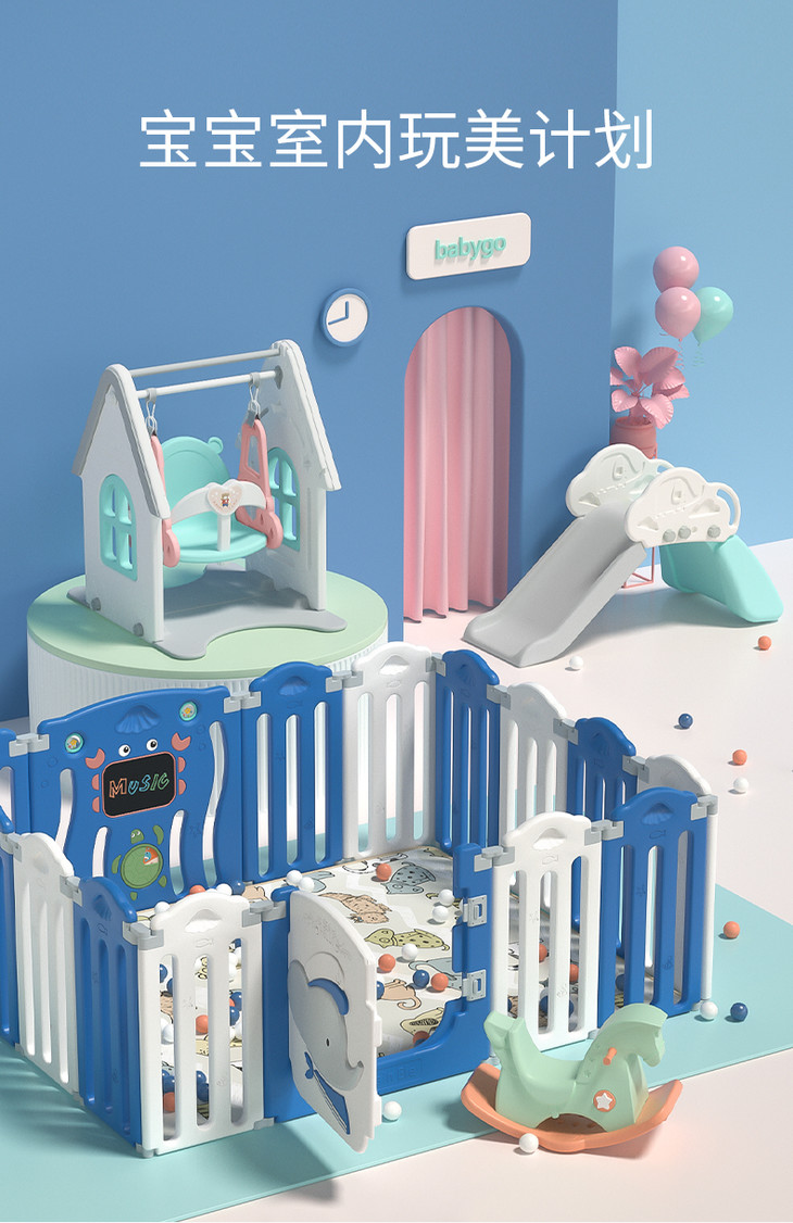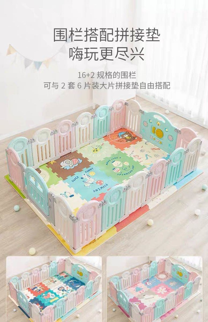 (超值)babygo 儿童游戏室内家用爬行学步防护围栏 小熊款/小象款