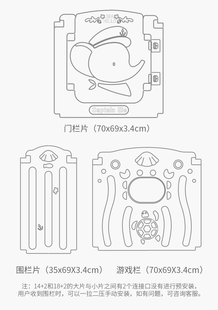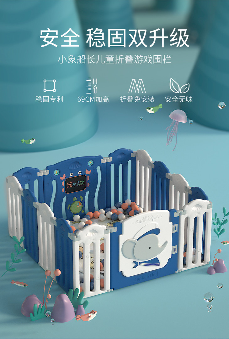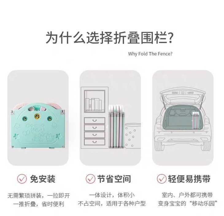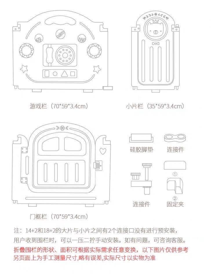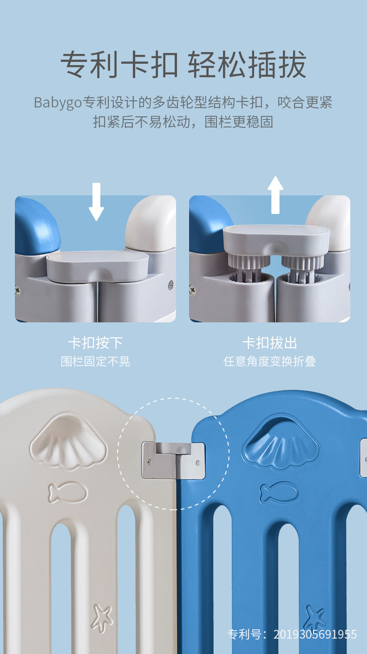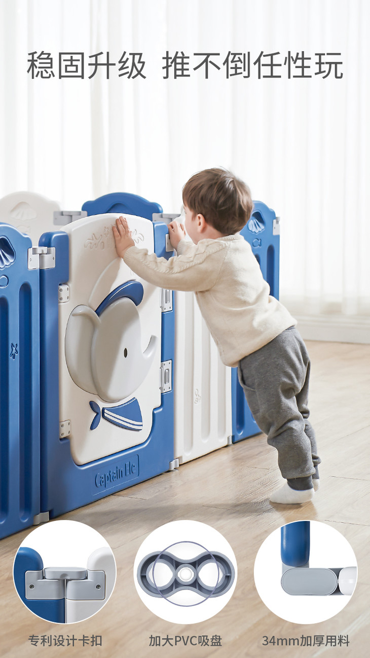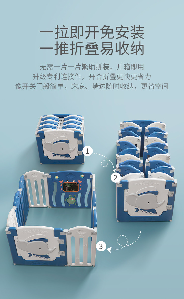 (超值)babygo 儿童游戏室内家用爬行学步防护围栏 小熊款/小象款
