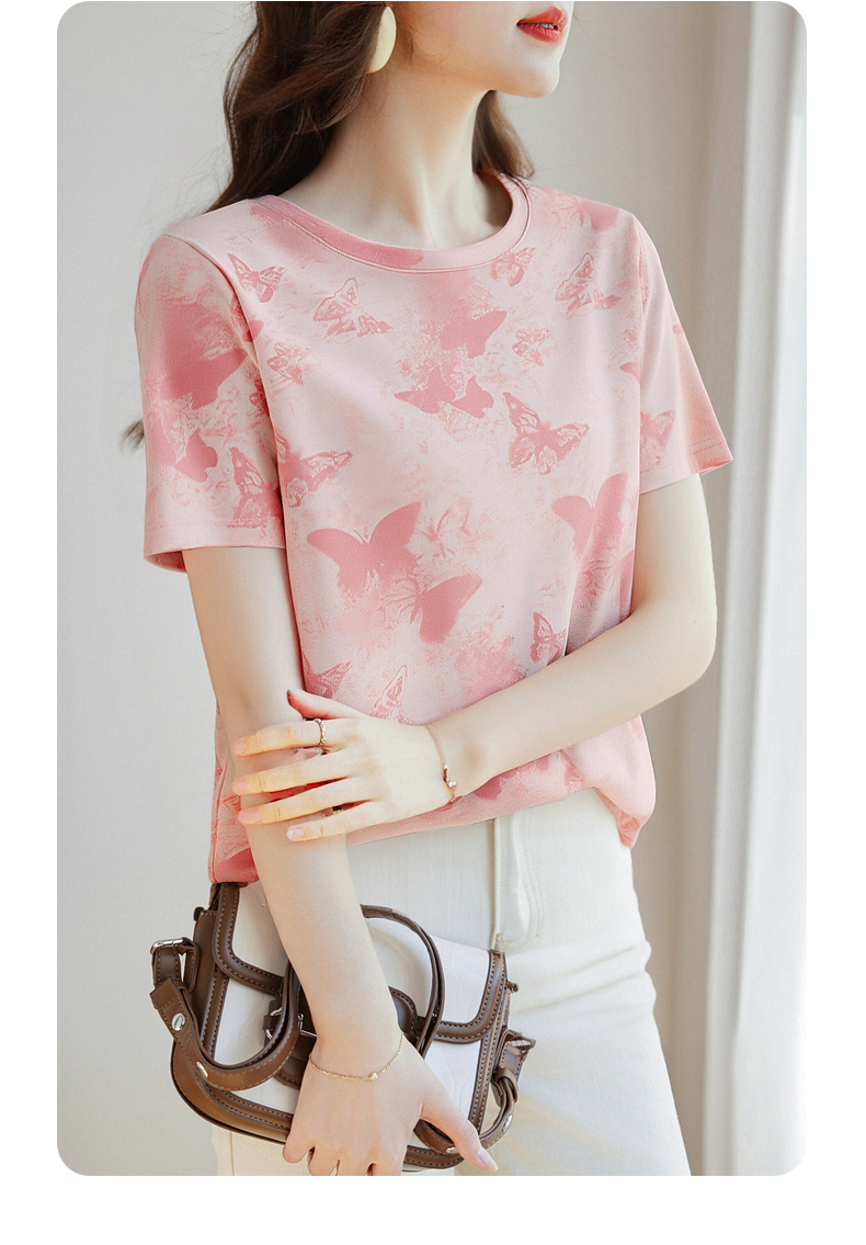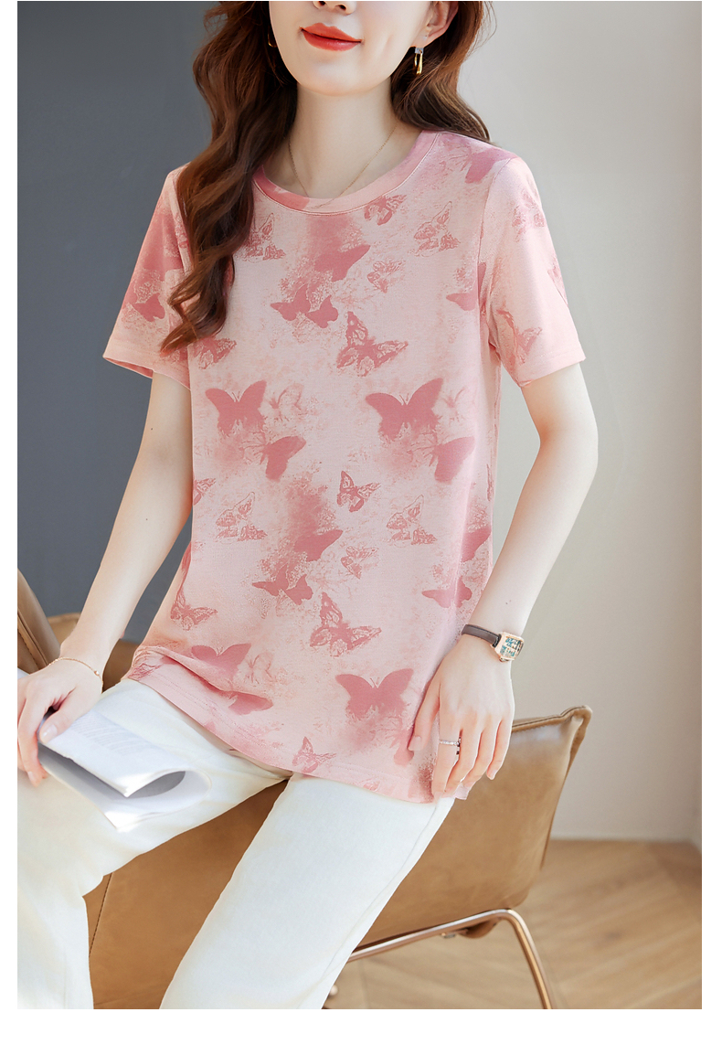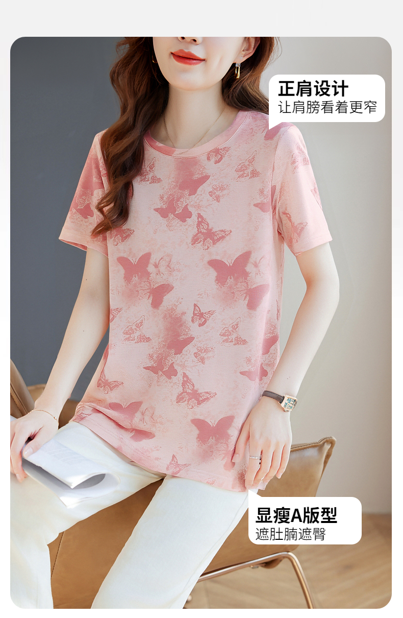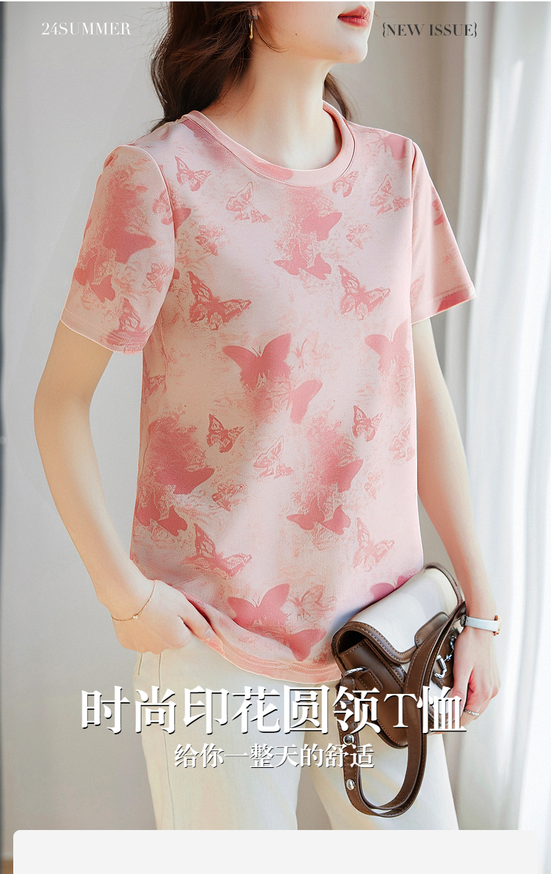 冰丝短袖t恤女士夏装新款时尚洋气小衫大码印花上衣中长款打底衫