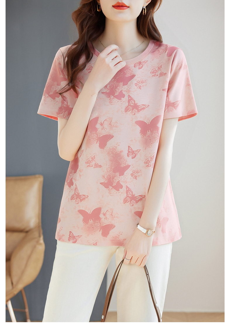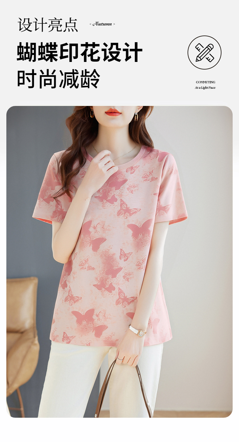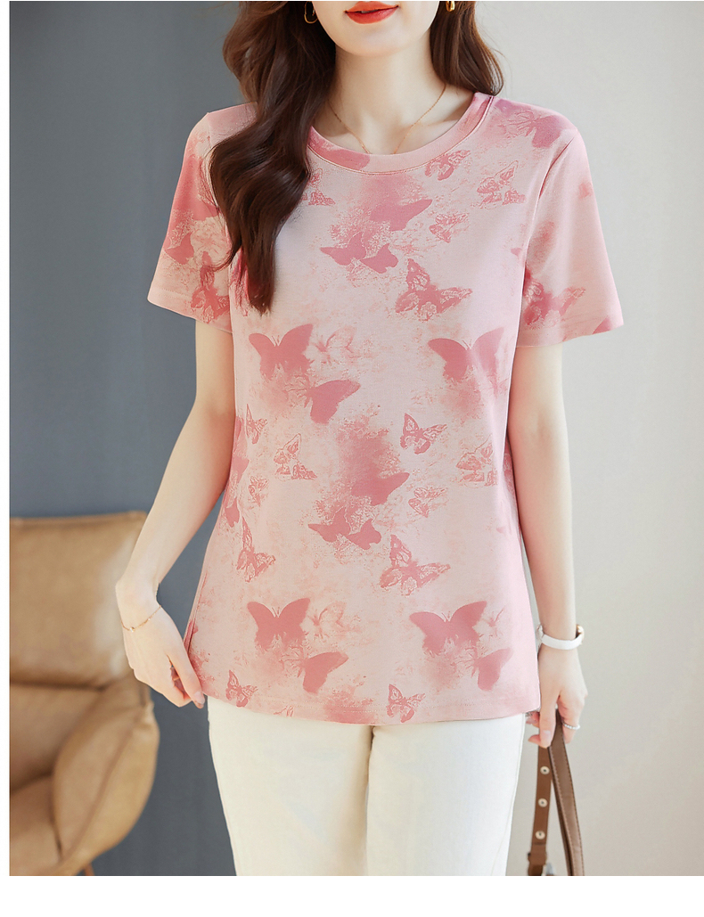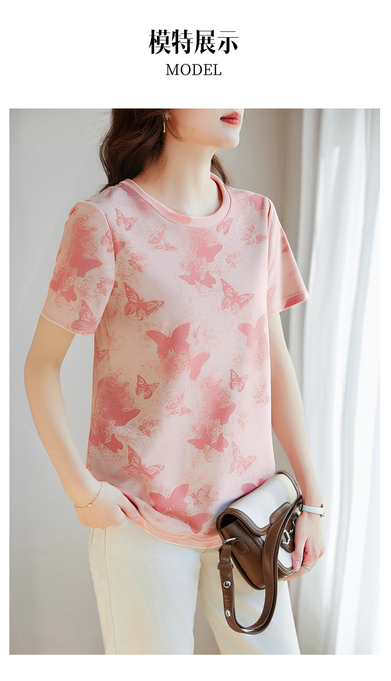 冰丝短袖t恤女士夏装新款时尚洋气小衫大码印花上衣中长款打底衫