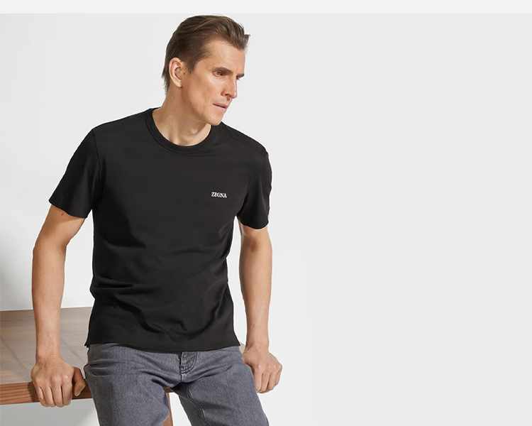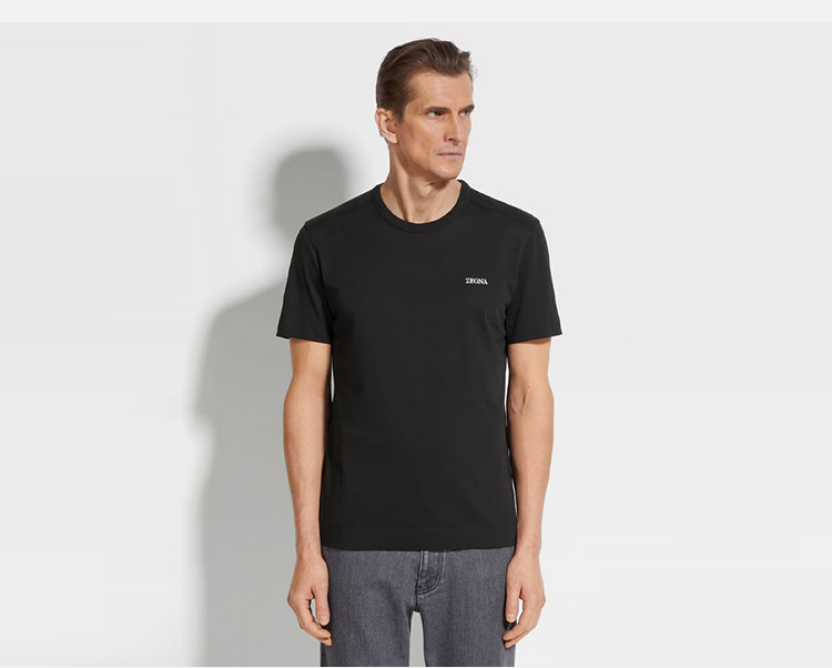 【二】ZEGNA 杰尼亚 男士字母徽标刺绣棉质圆领短袖T恤 黑色 E7360A5 B760 K09