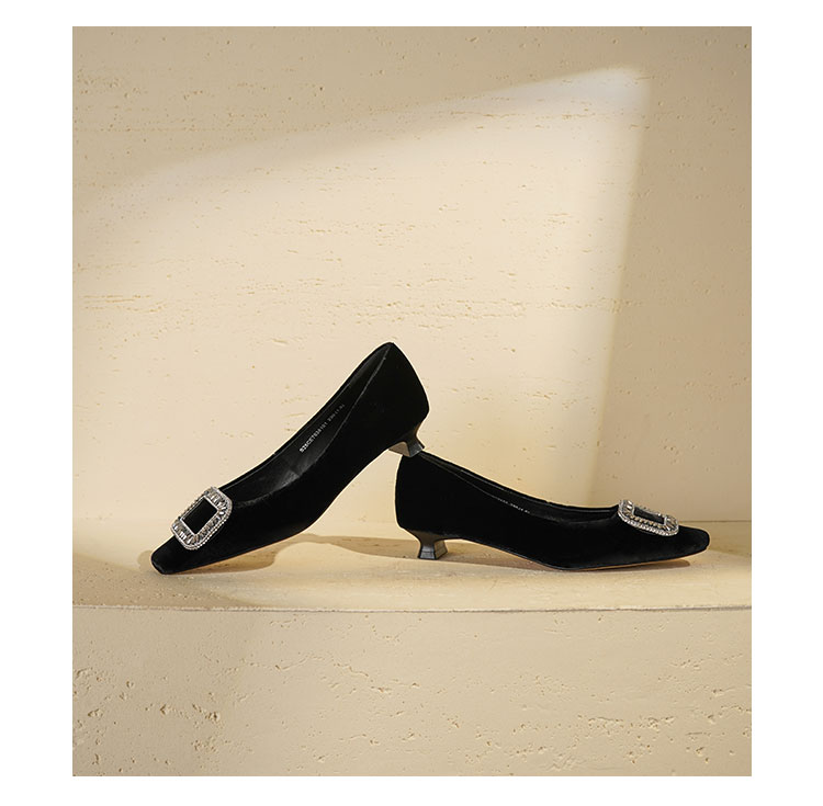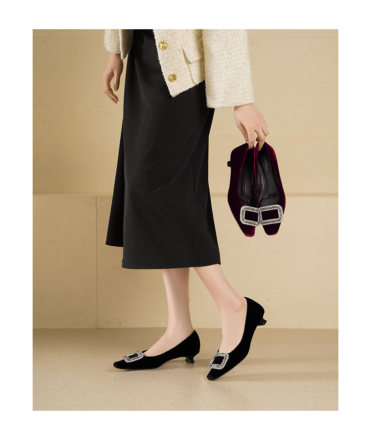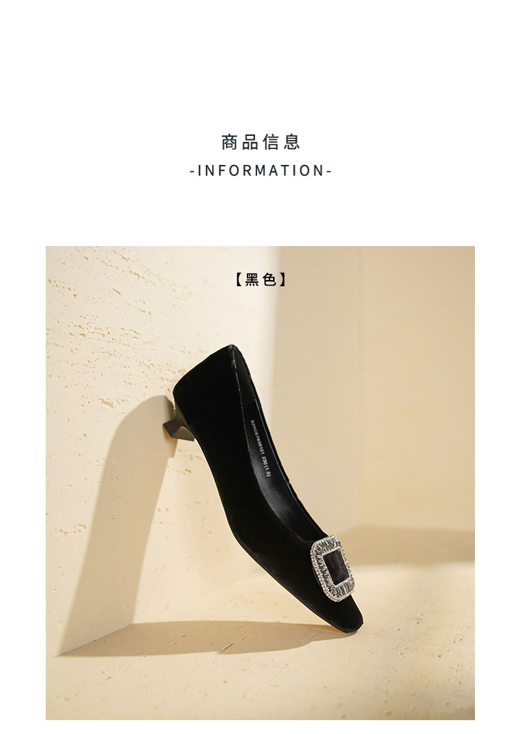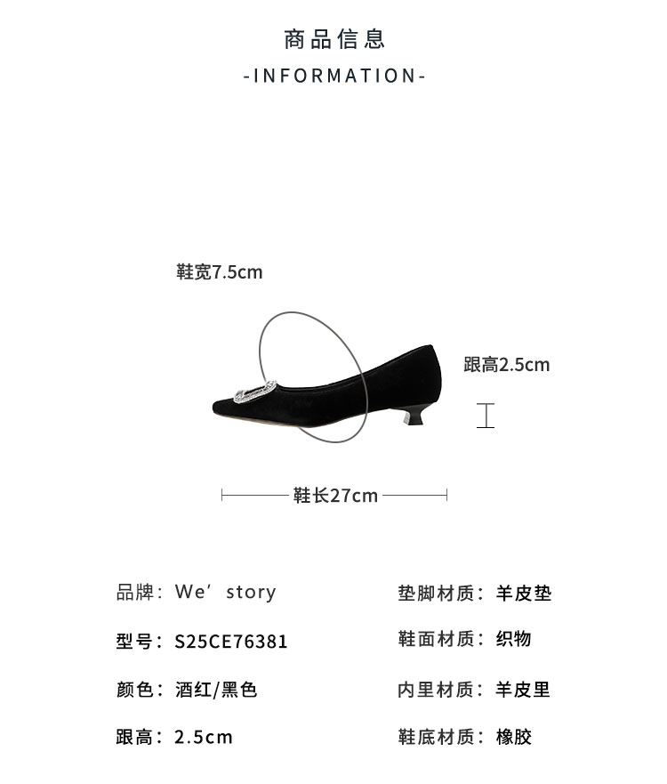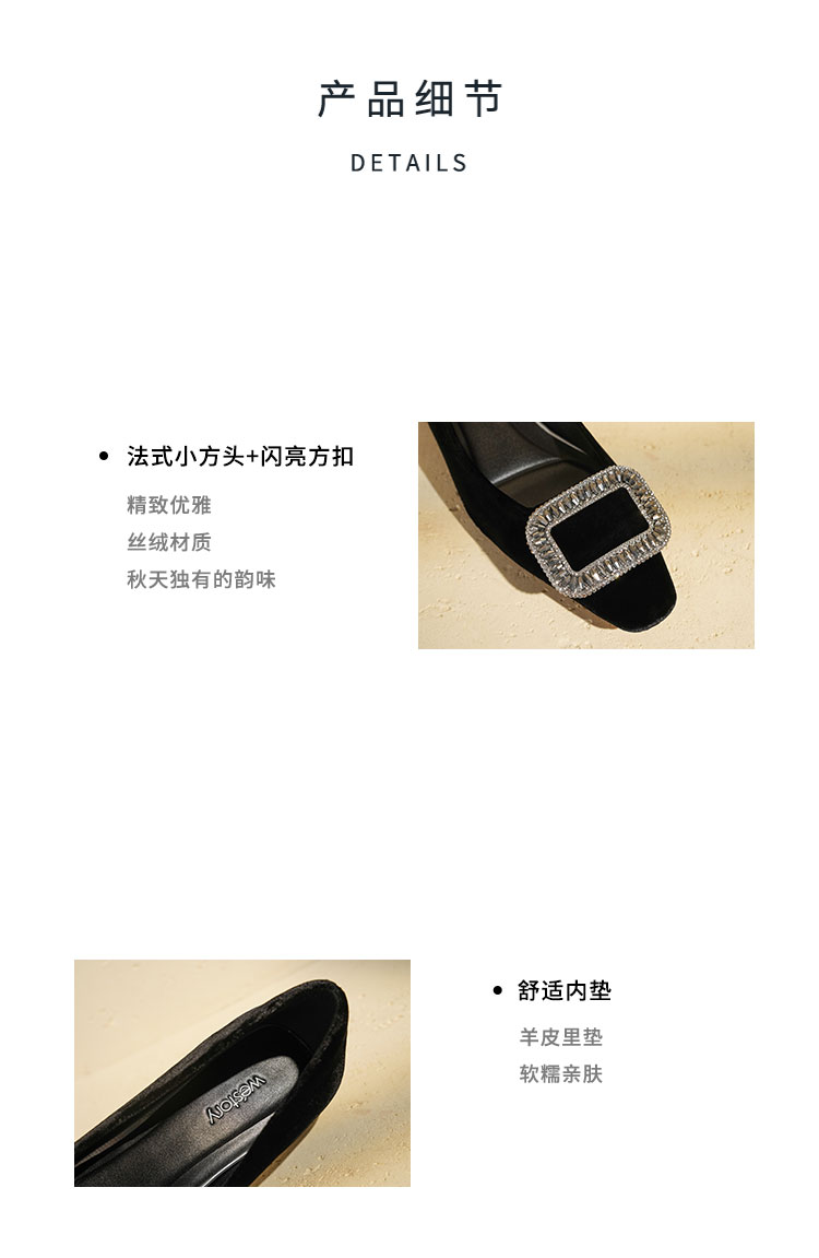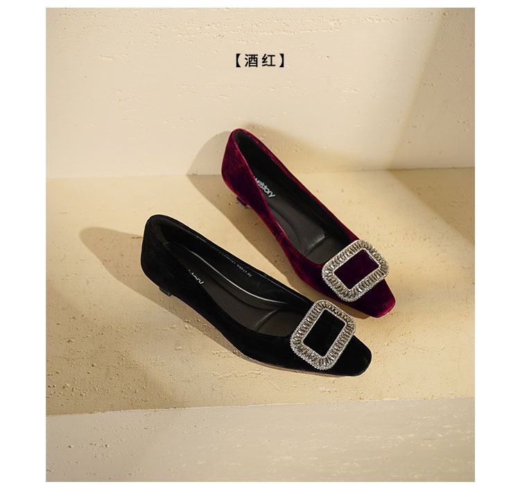 Westory2025年秋季丝绒低跟小方头方扣浅口单鞋S25CE76381