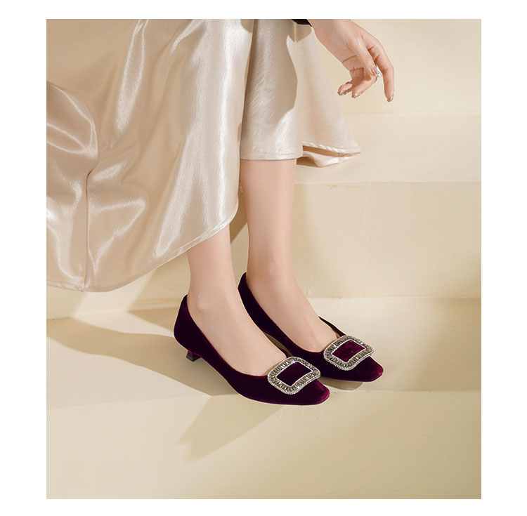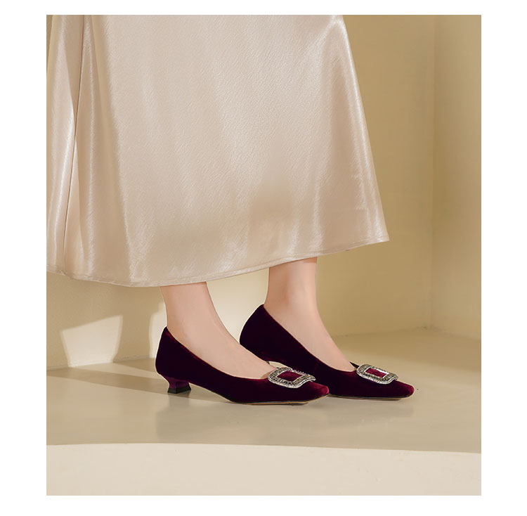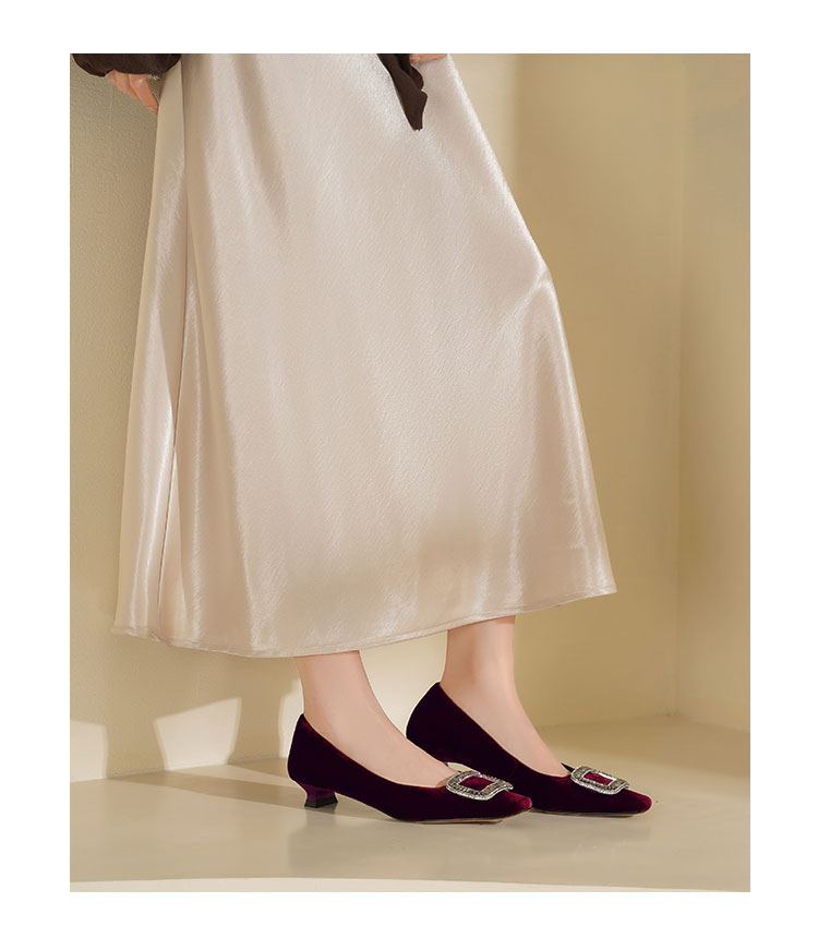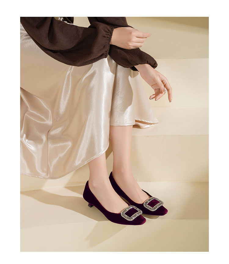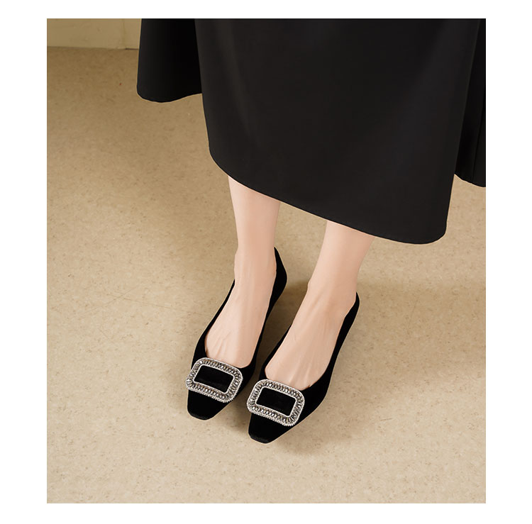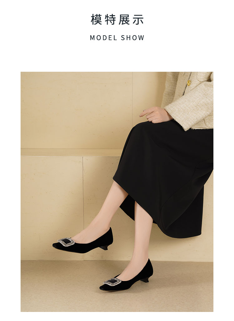 Westory2025年秋季丝绒低跟小方头方扣浅口单鞋S25CE76381