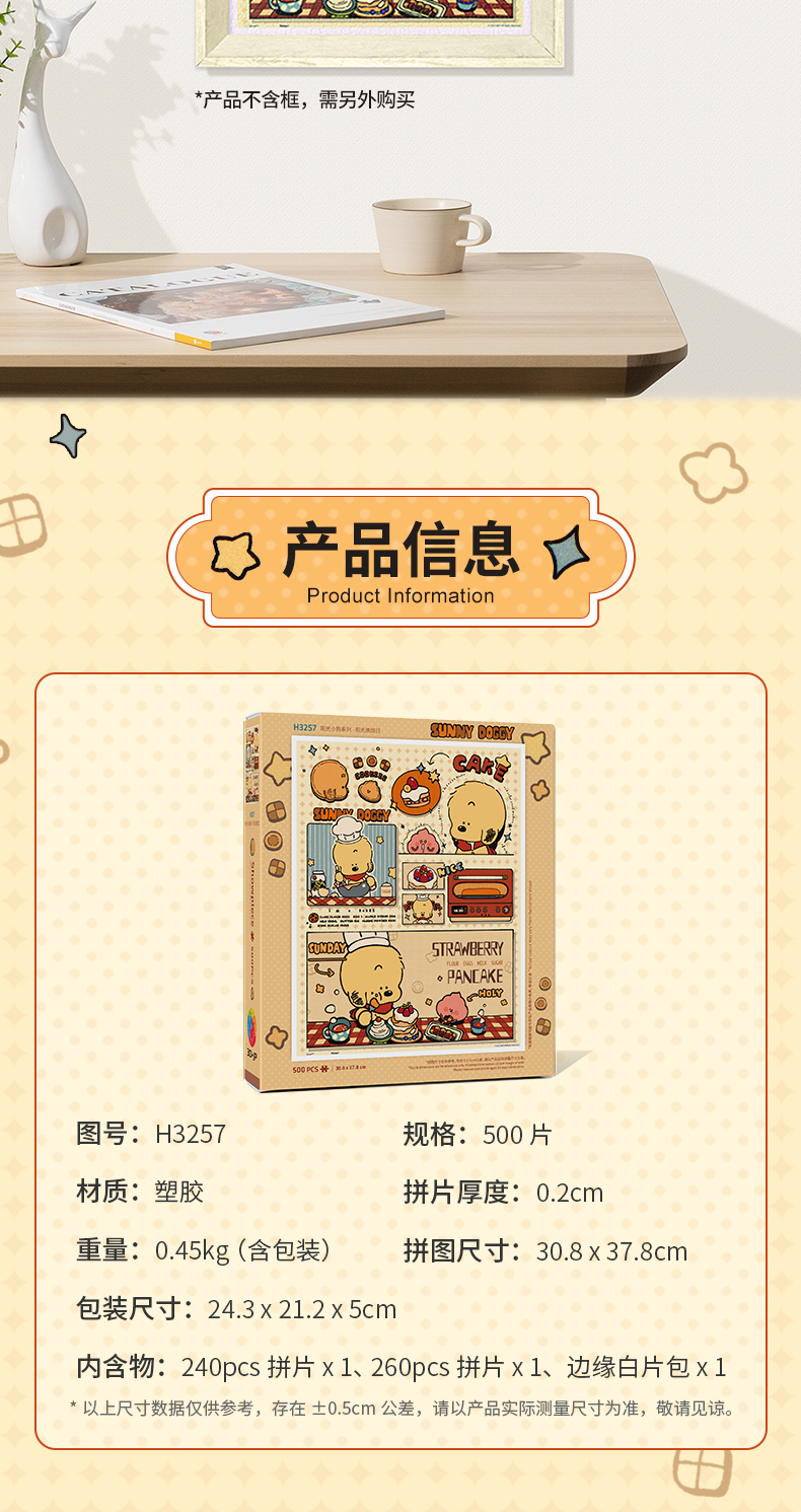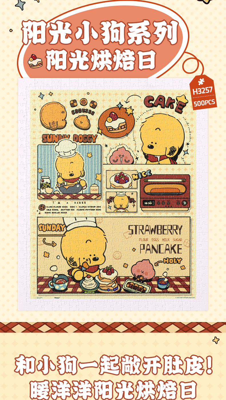 【折扣商品 不退不换】500片 平面塑料拼图 H3257 阳光小狗系列-阳光烘焙日