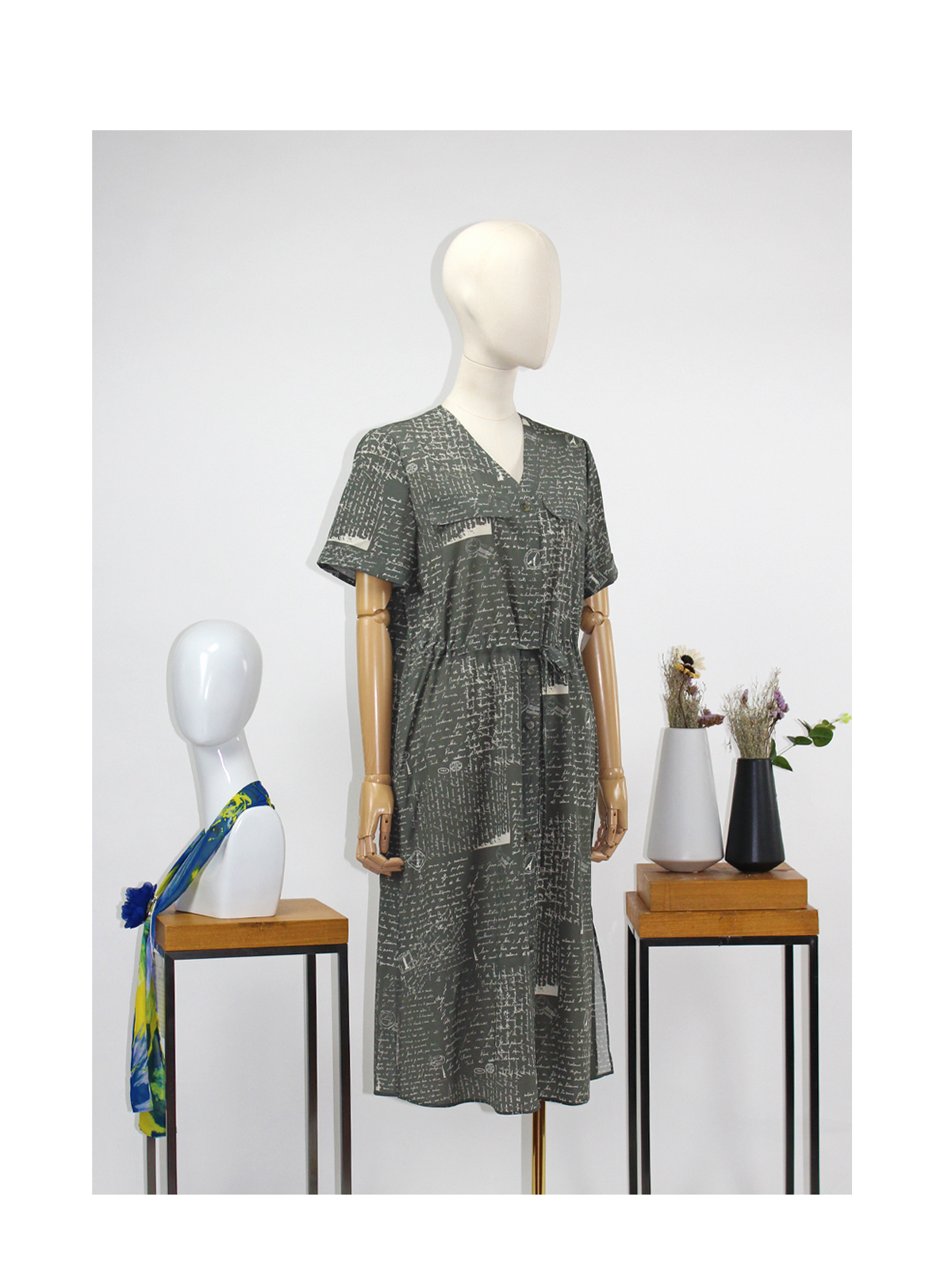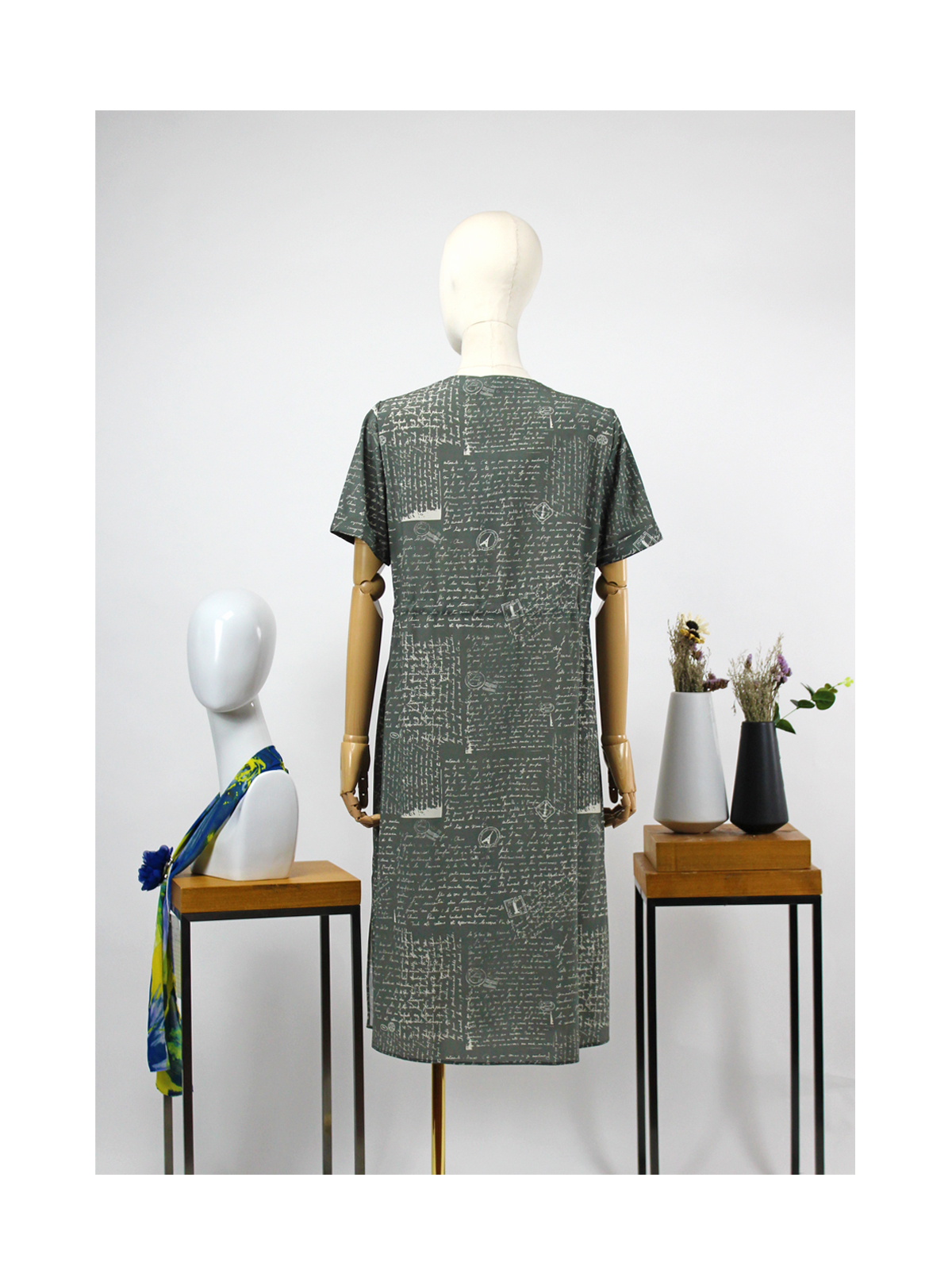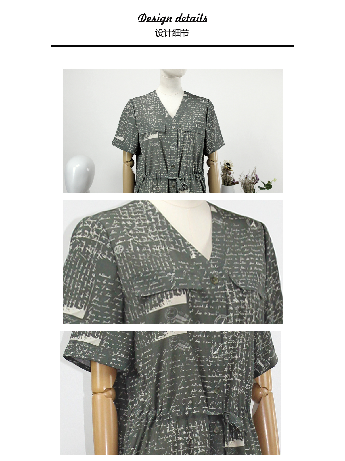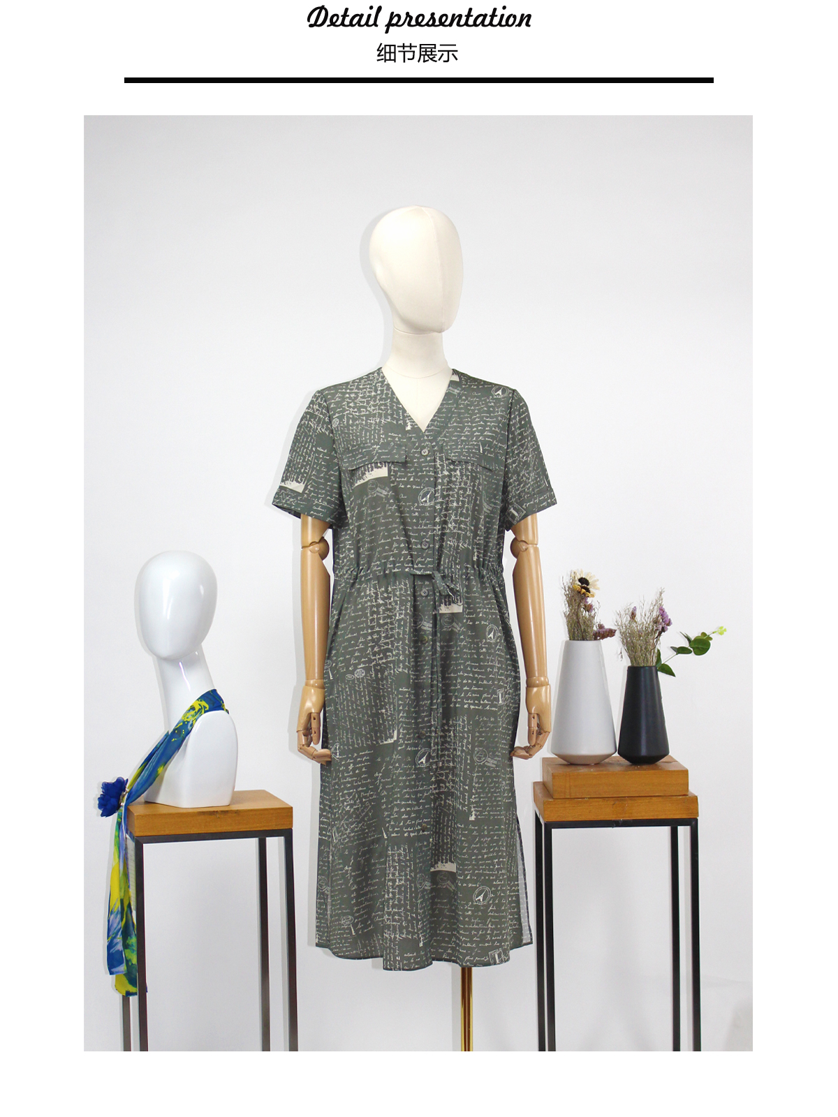 FOCALS福柯斯夏季桑蚕丝V领短袖字母印花中长款连衣裙FRRBX225GM