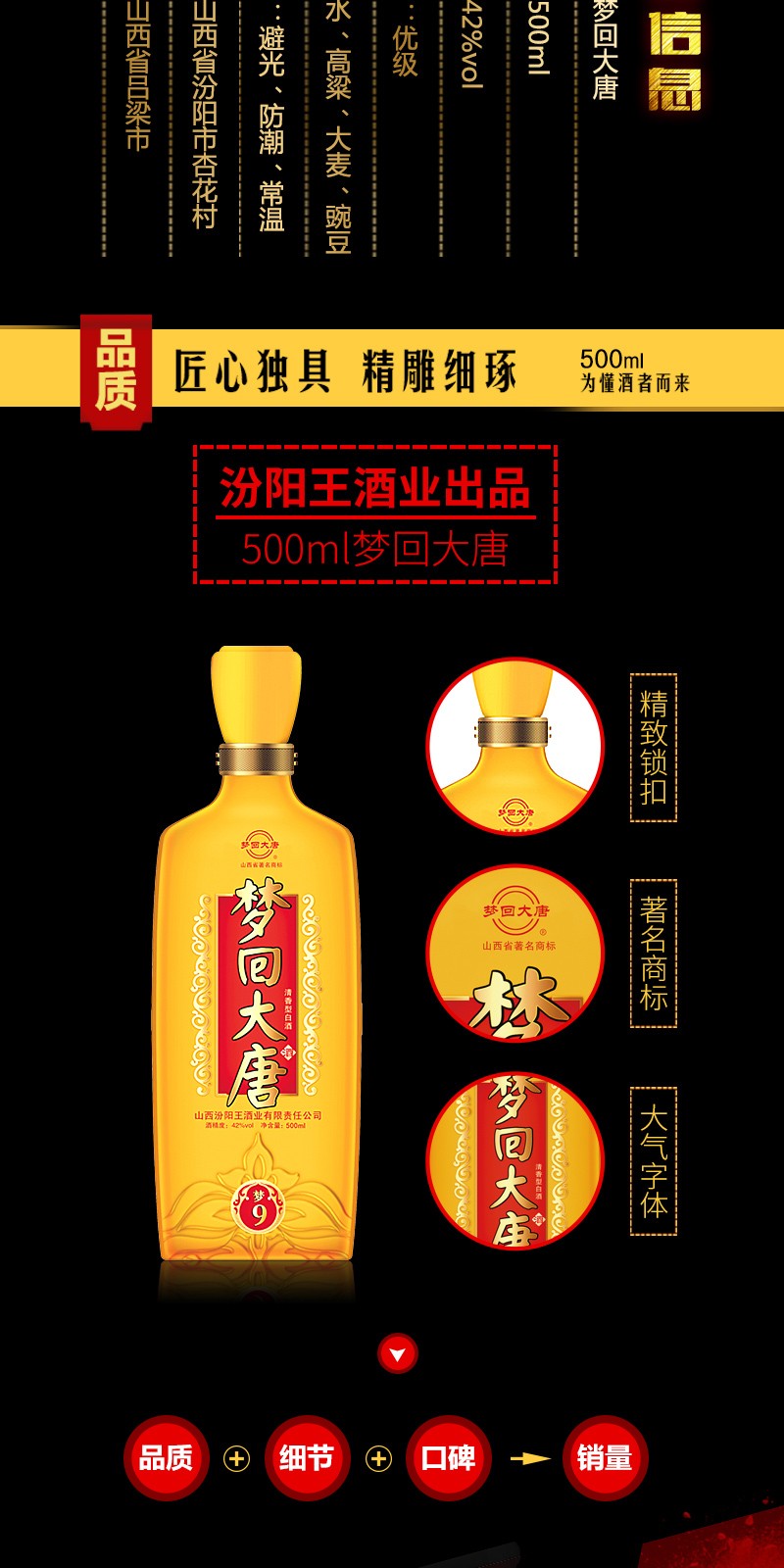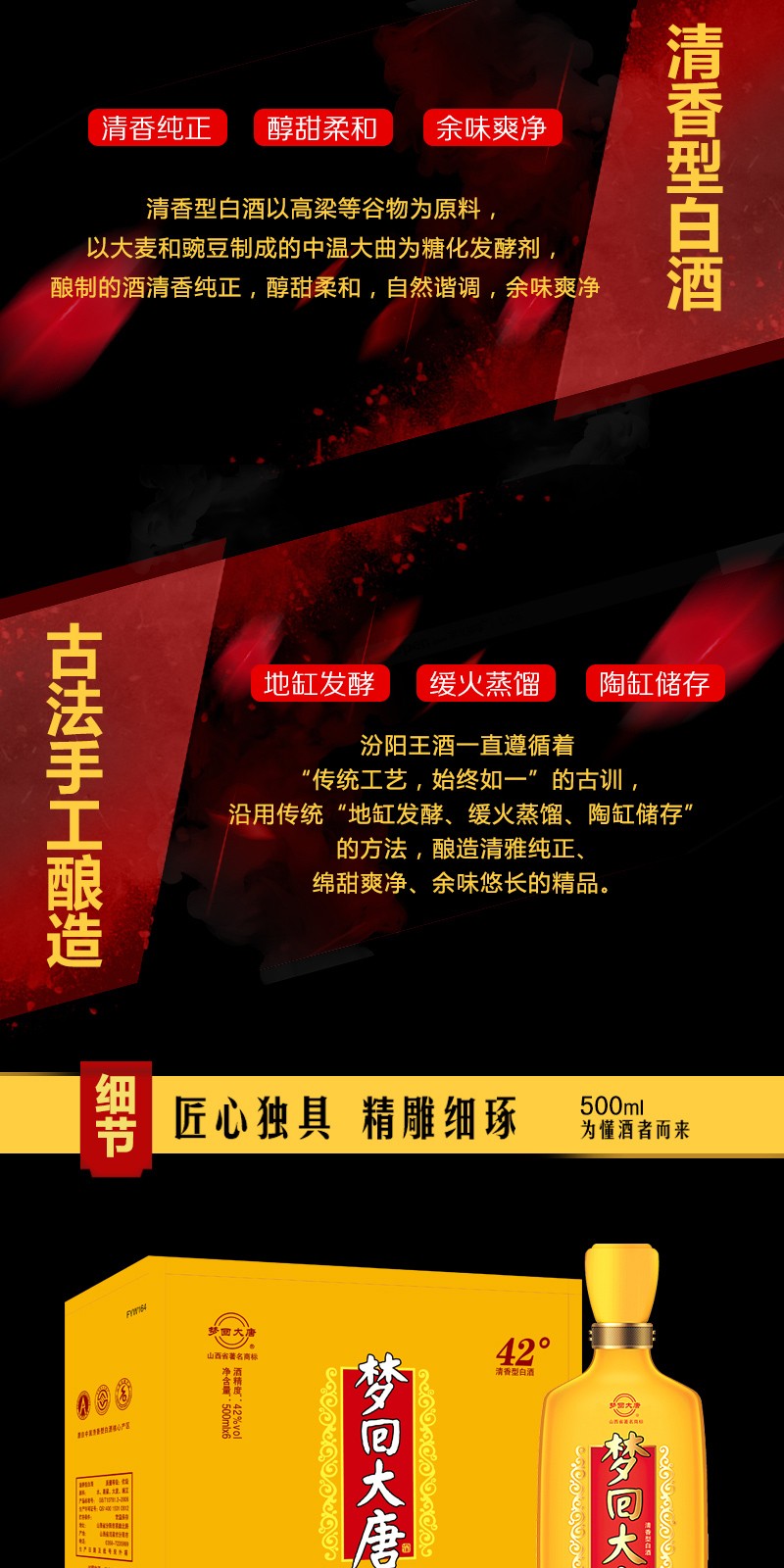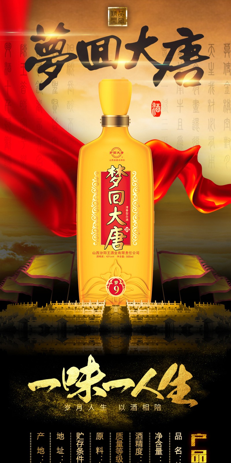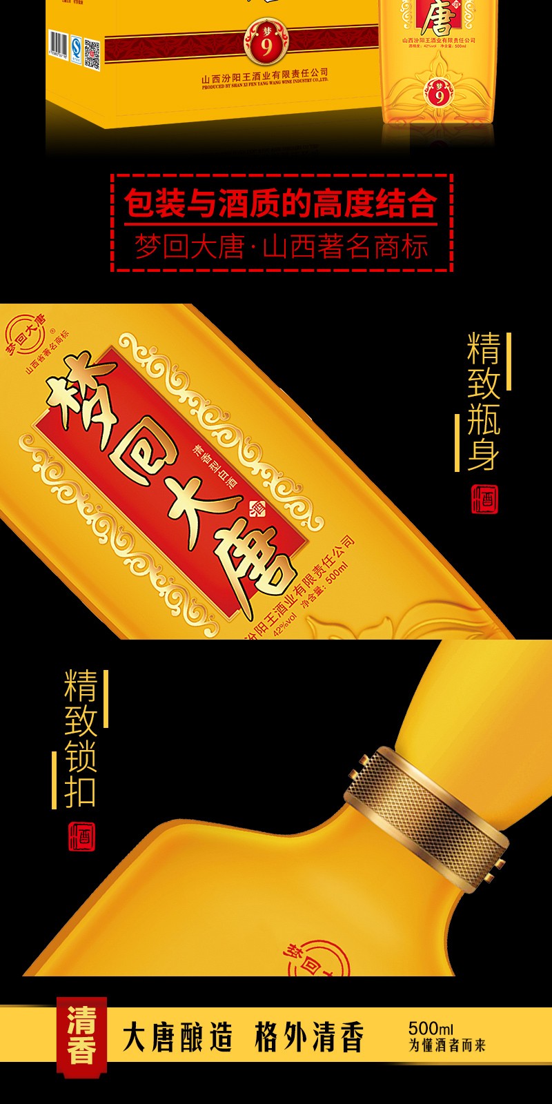 汾阳王42°梦回大唐梦9清香型自饮白酒500ml*6瓶整箱山西名酒 杏花村产区