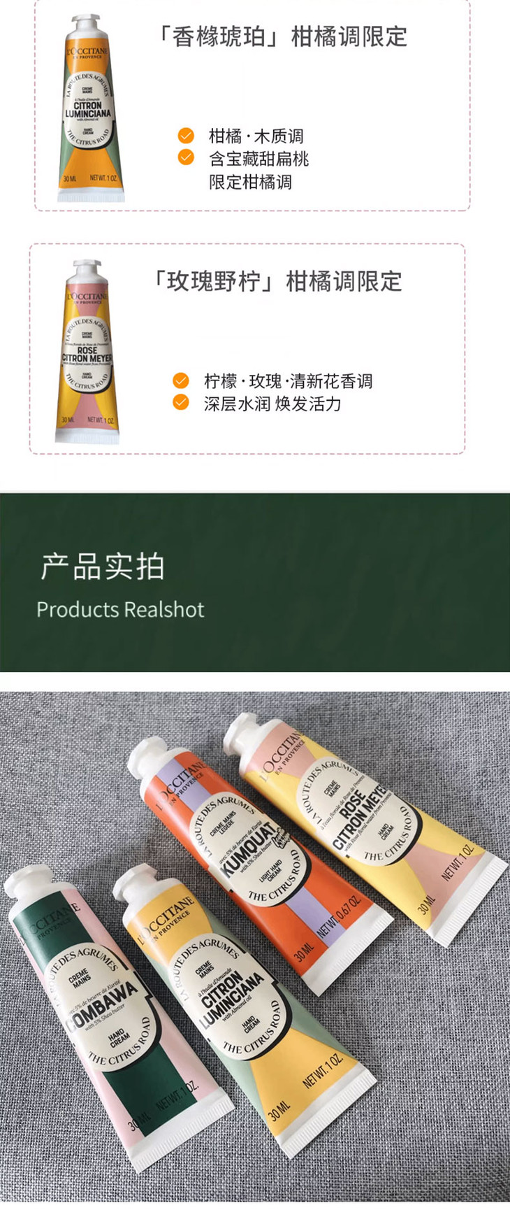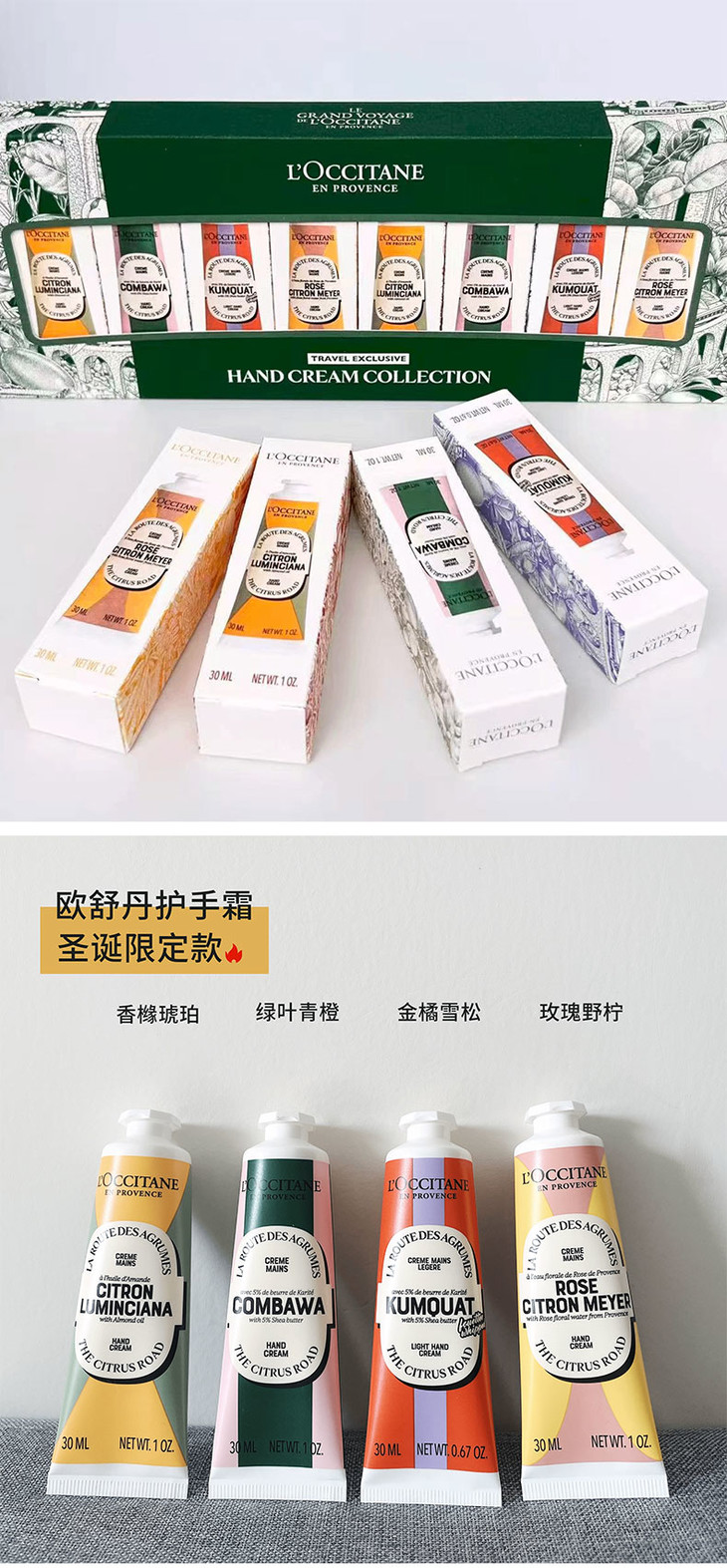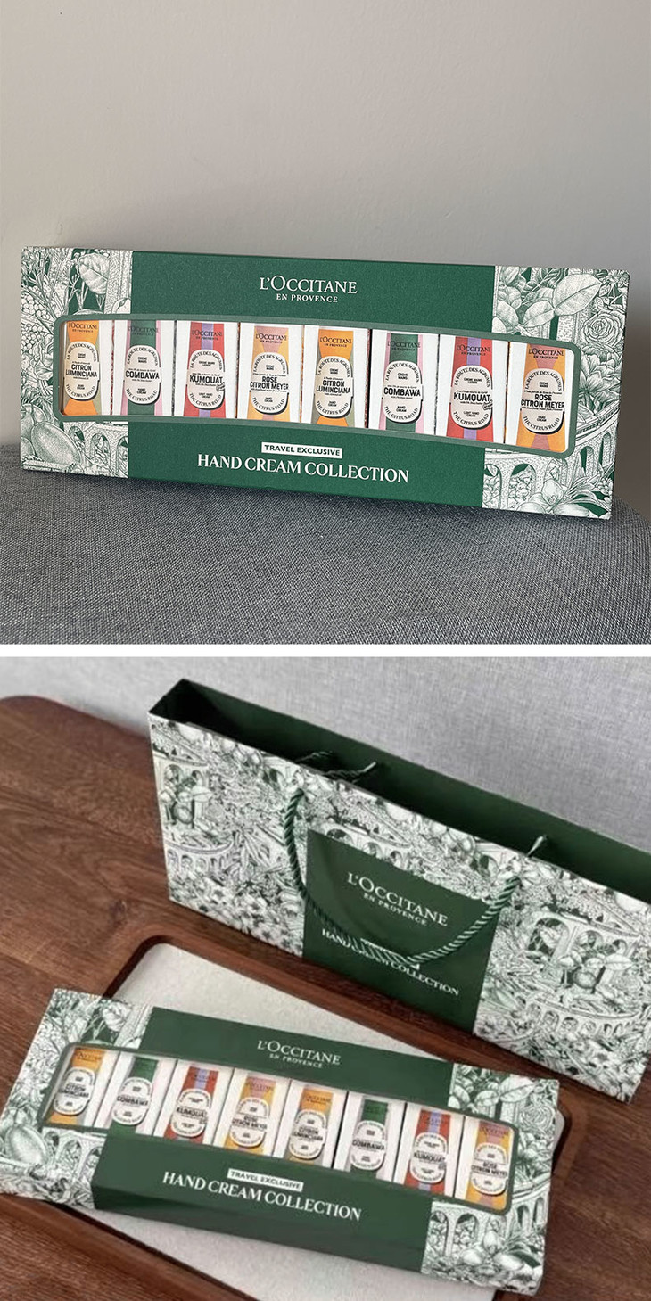 【圣诞限定 送礼袋】欧舒丹护手霜八件套 绿盒(玫瑰野拧*2+甜扁桃香橼*2+乳木果金橘"2+乳木果绿叶*2)