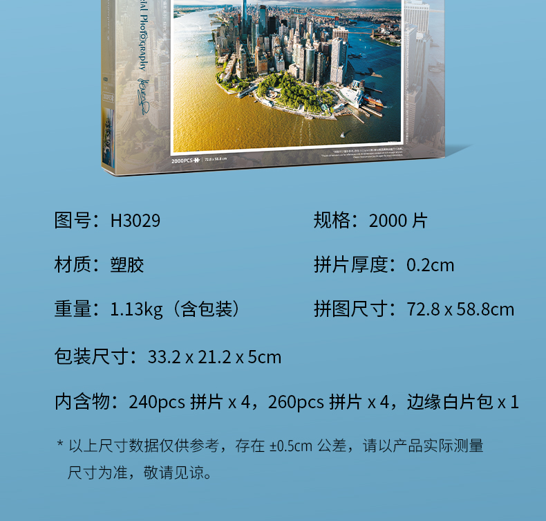 【折扣商品 不退不换】2000片平面拼图塑料拼图 H3029 Henry Do-高空摄影系列-纽约, 美国