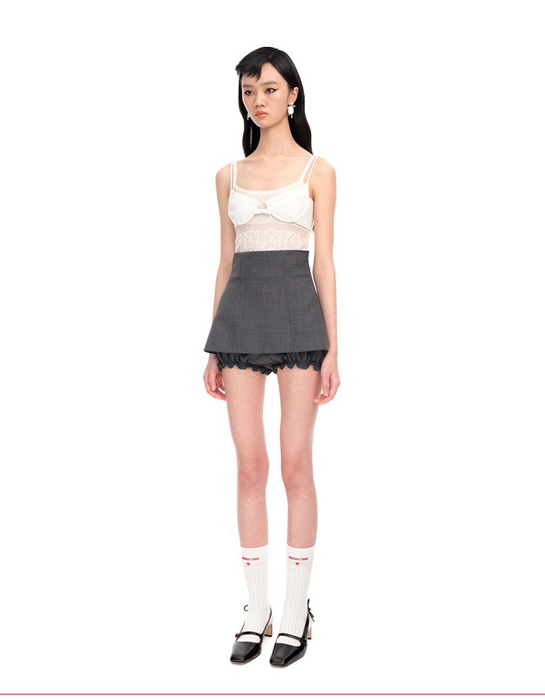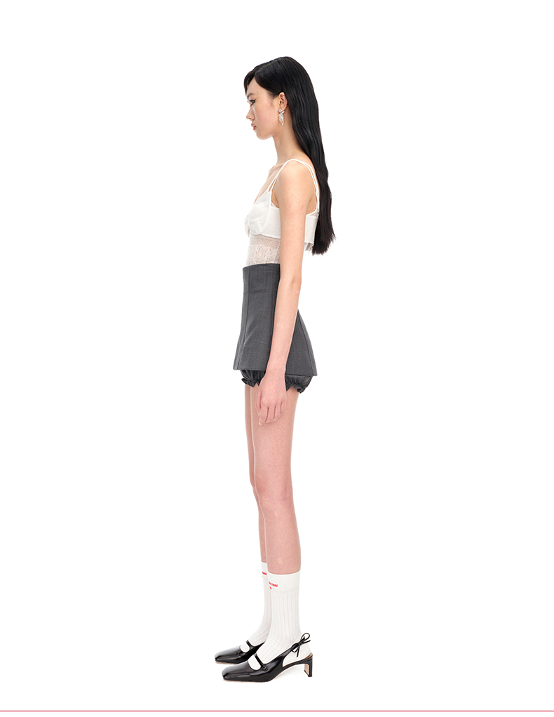 【SHUSHUTONG】蕾虎修身经典高腰后拉链法式A字迷你裙裤 商品图2