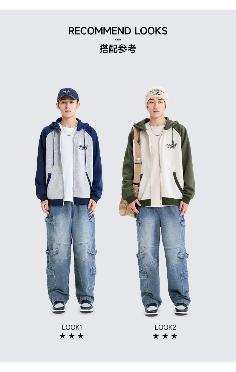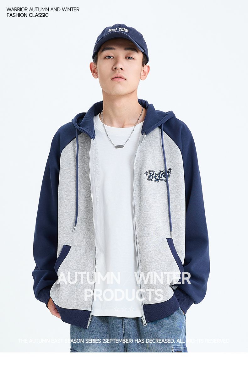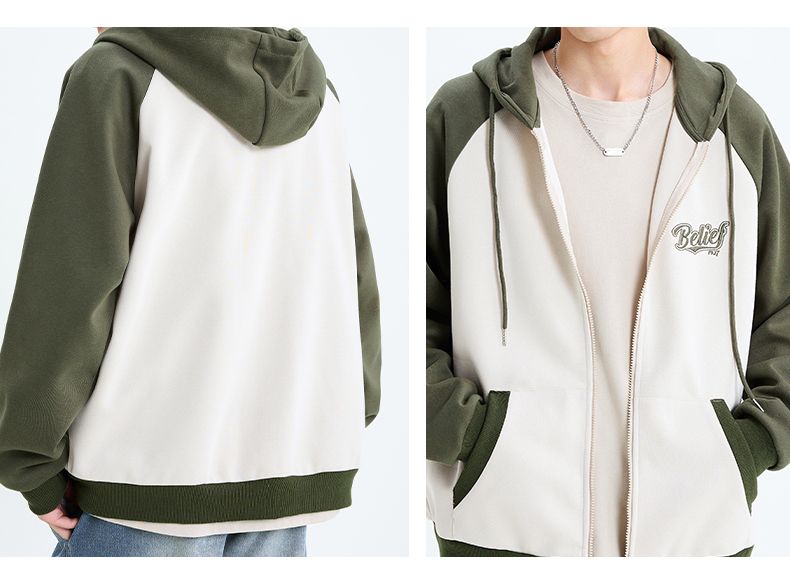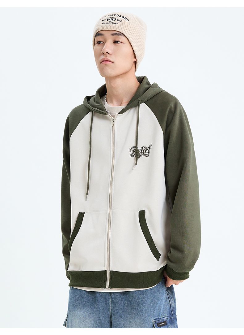 回力撞色连帽卫衣男2025春季新款美式休闲插肩袖外套宽松潮牌上衣