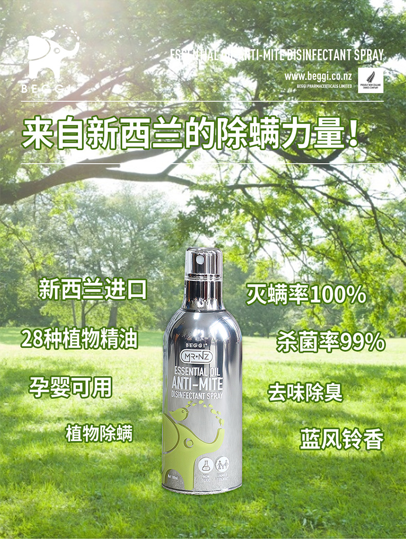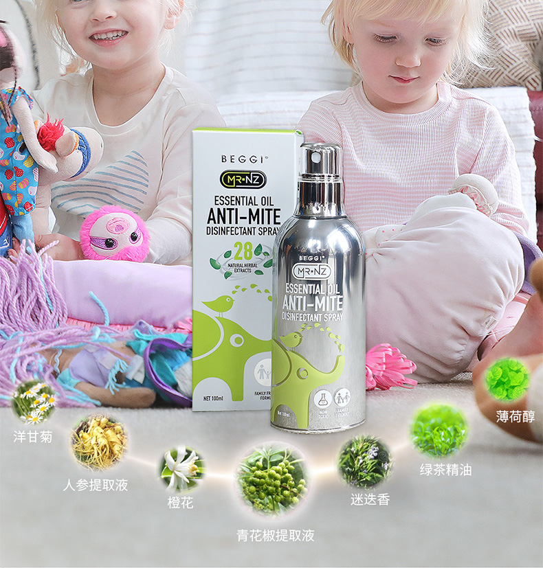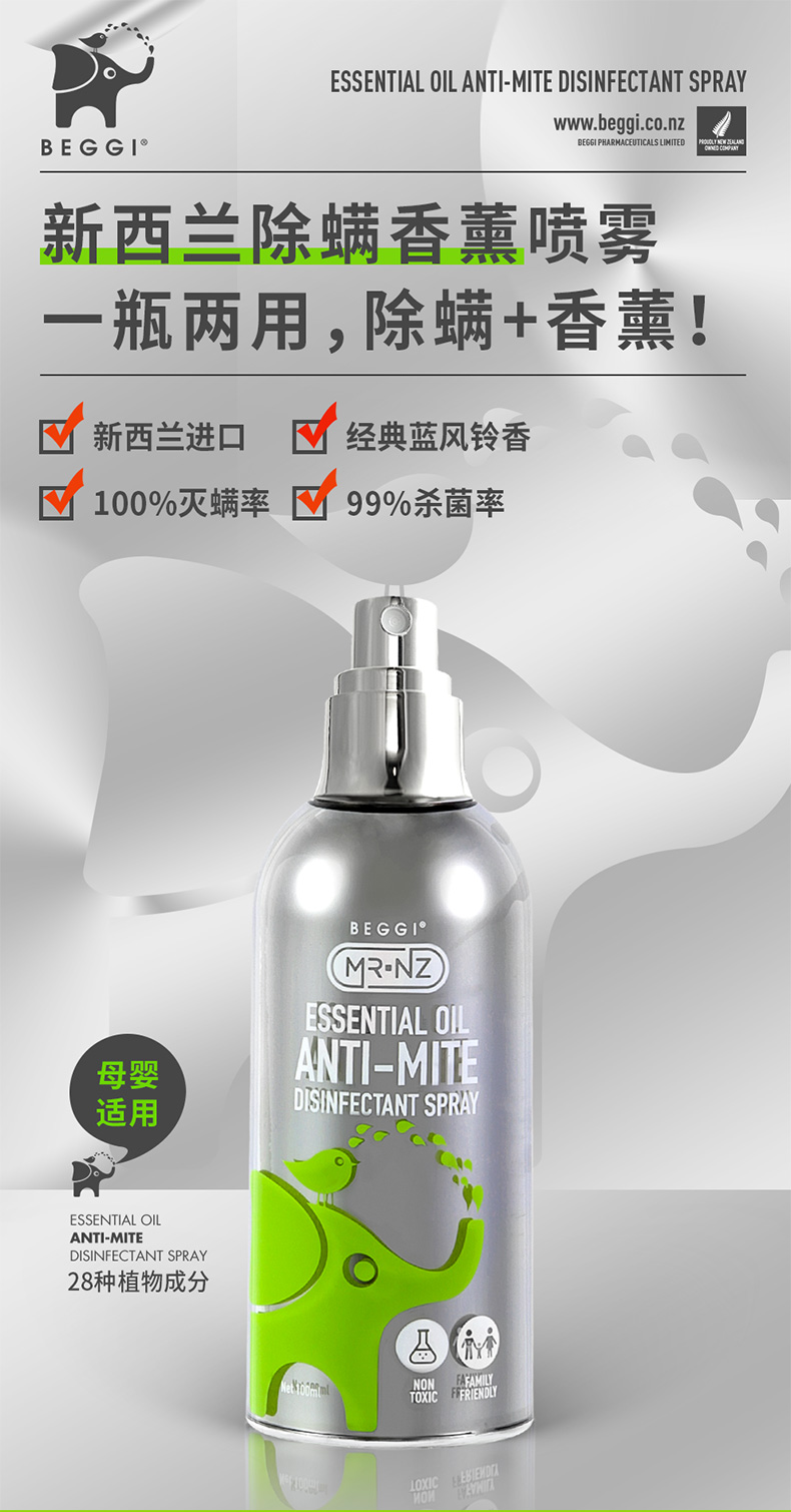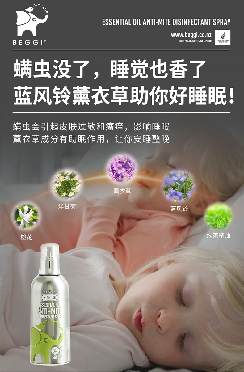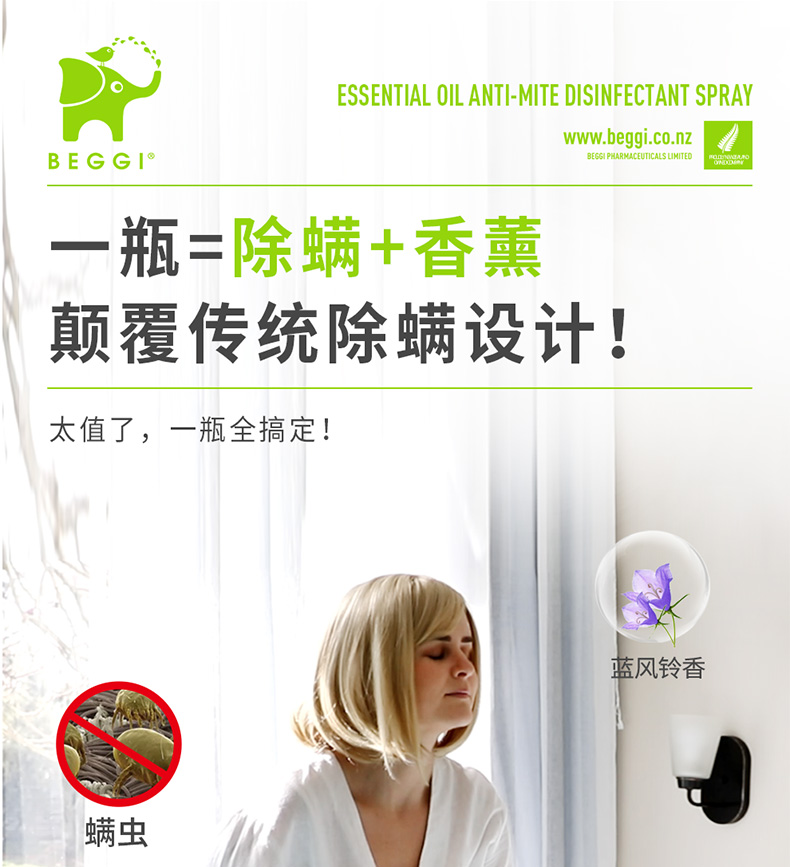 新西兰BEGGI除螨喷雾剂床上婴儿除菌袪螨虫神器家用香薰免洗免晒