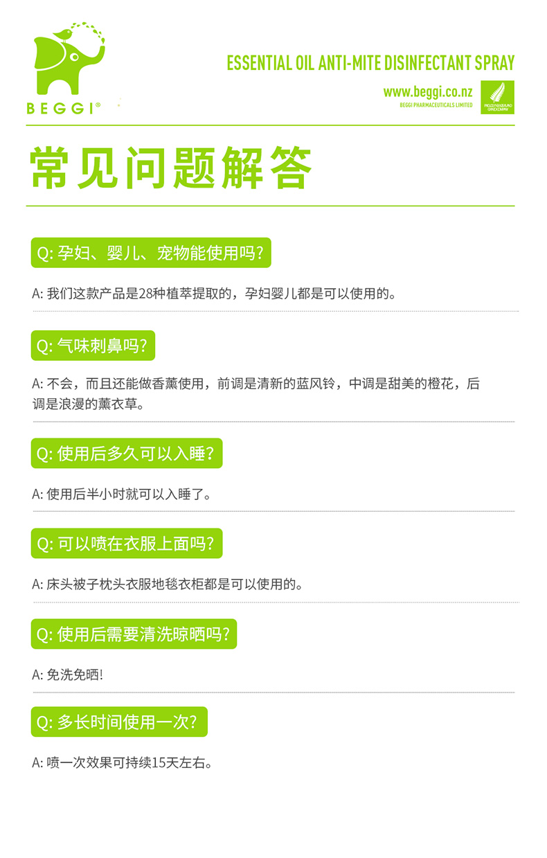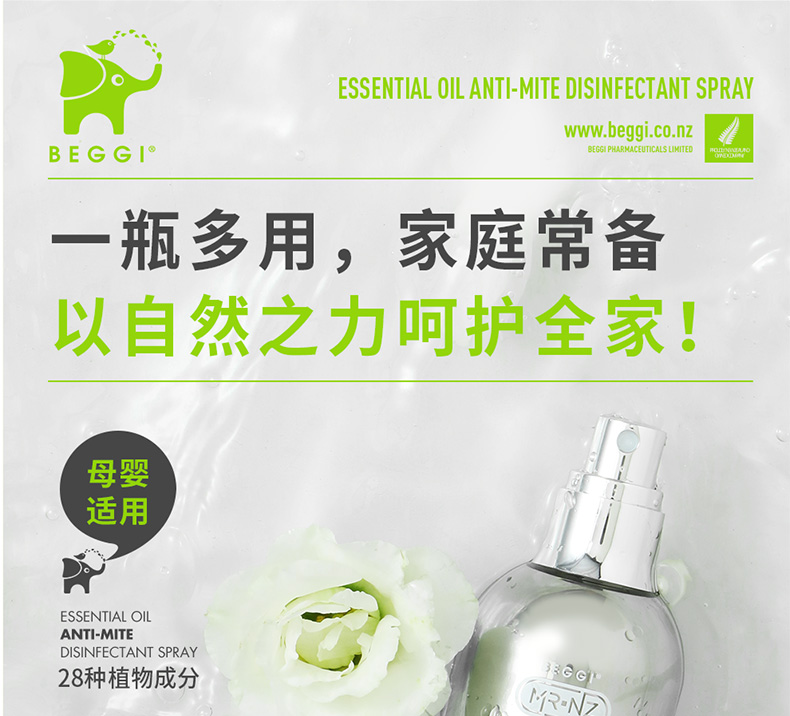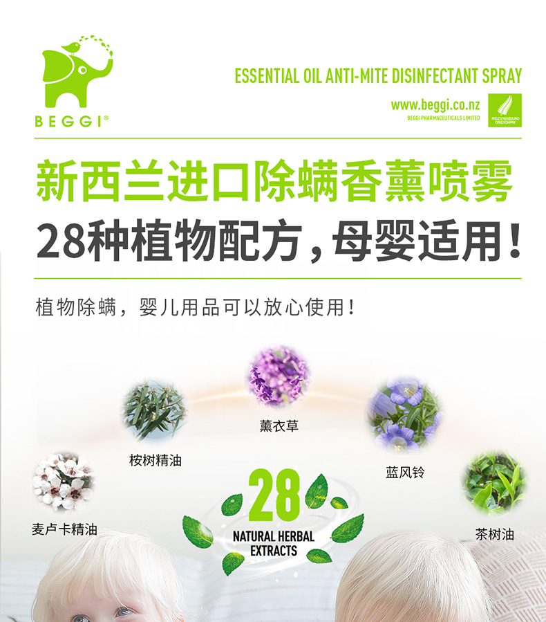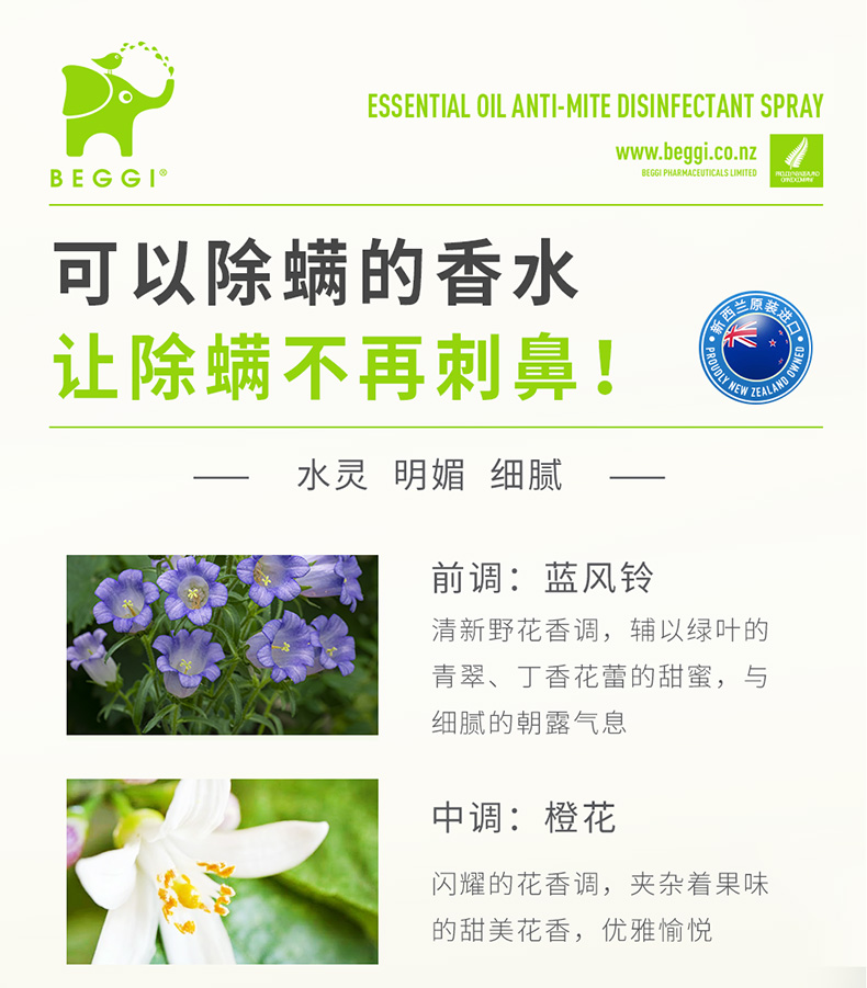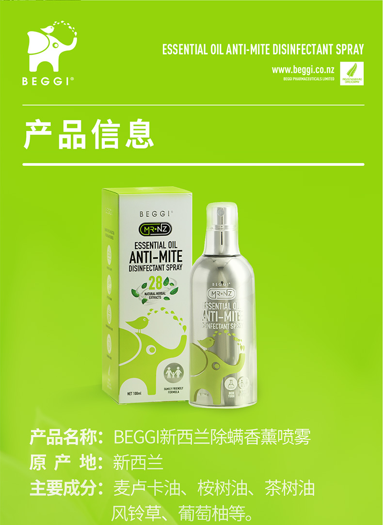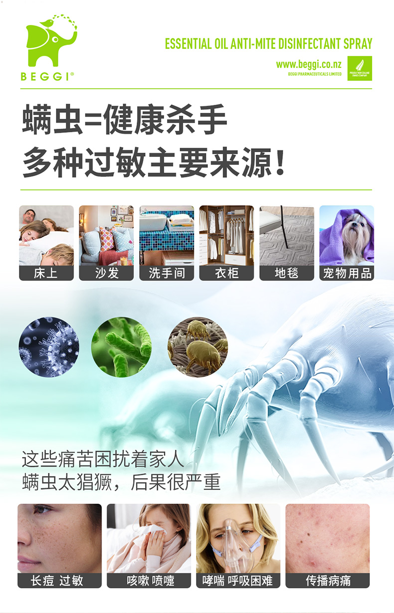 新西兰BEGGI除螨喷雾剂床上婴儿除菌袪螨虫神器家用香薰免洗免晒