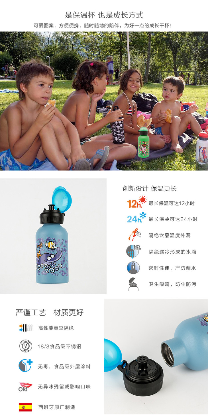 西班牙LAKEN不锈钢保温水杯儿童水杯