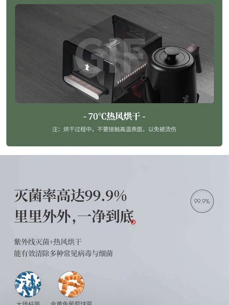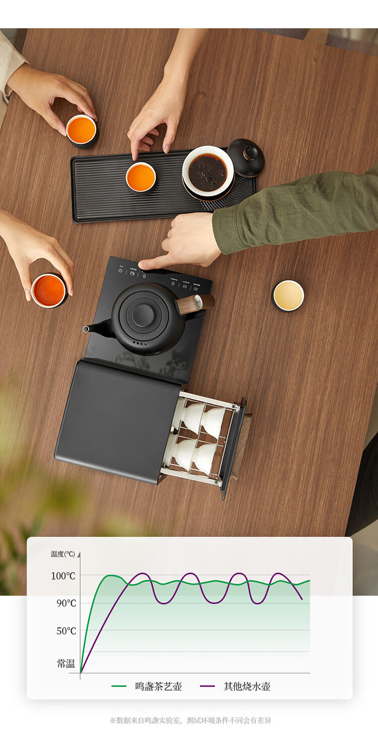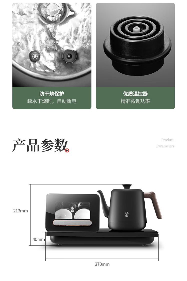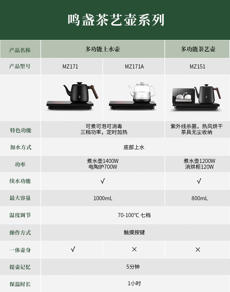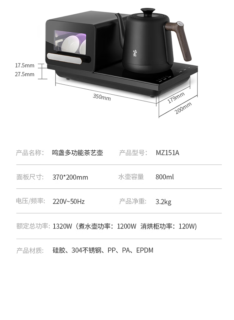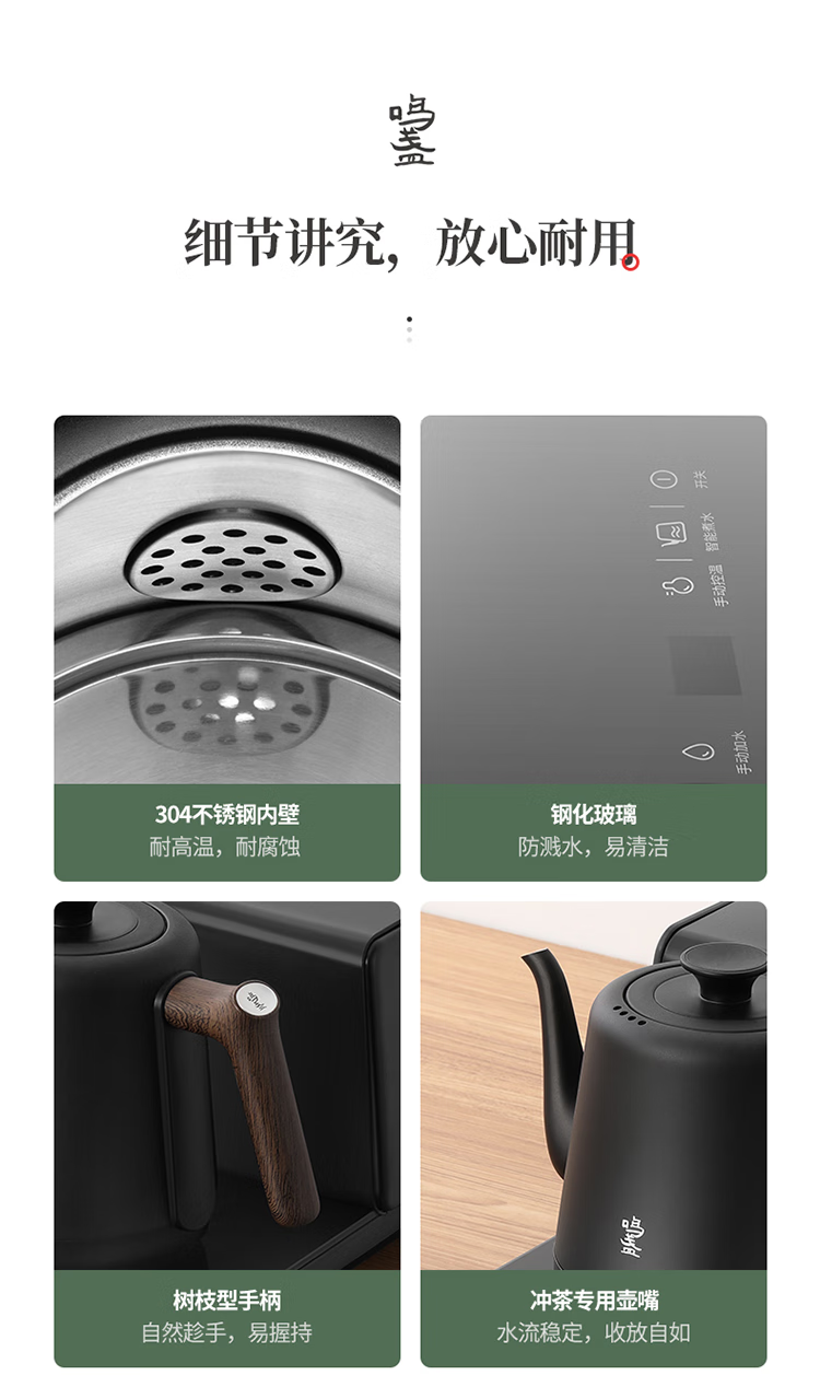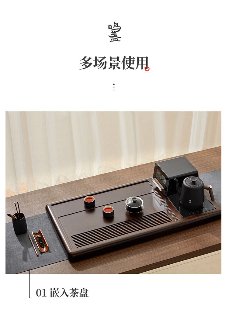 鸣盏|紫外线杀菌烘干一体底部上水壶多段控温烧水壶 全自动上水电水壶 MZ151A嵌入茶盘370*200