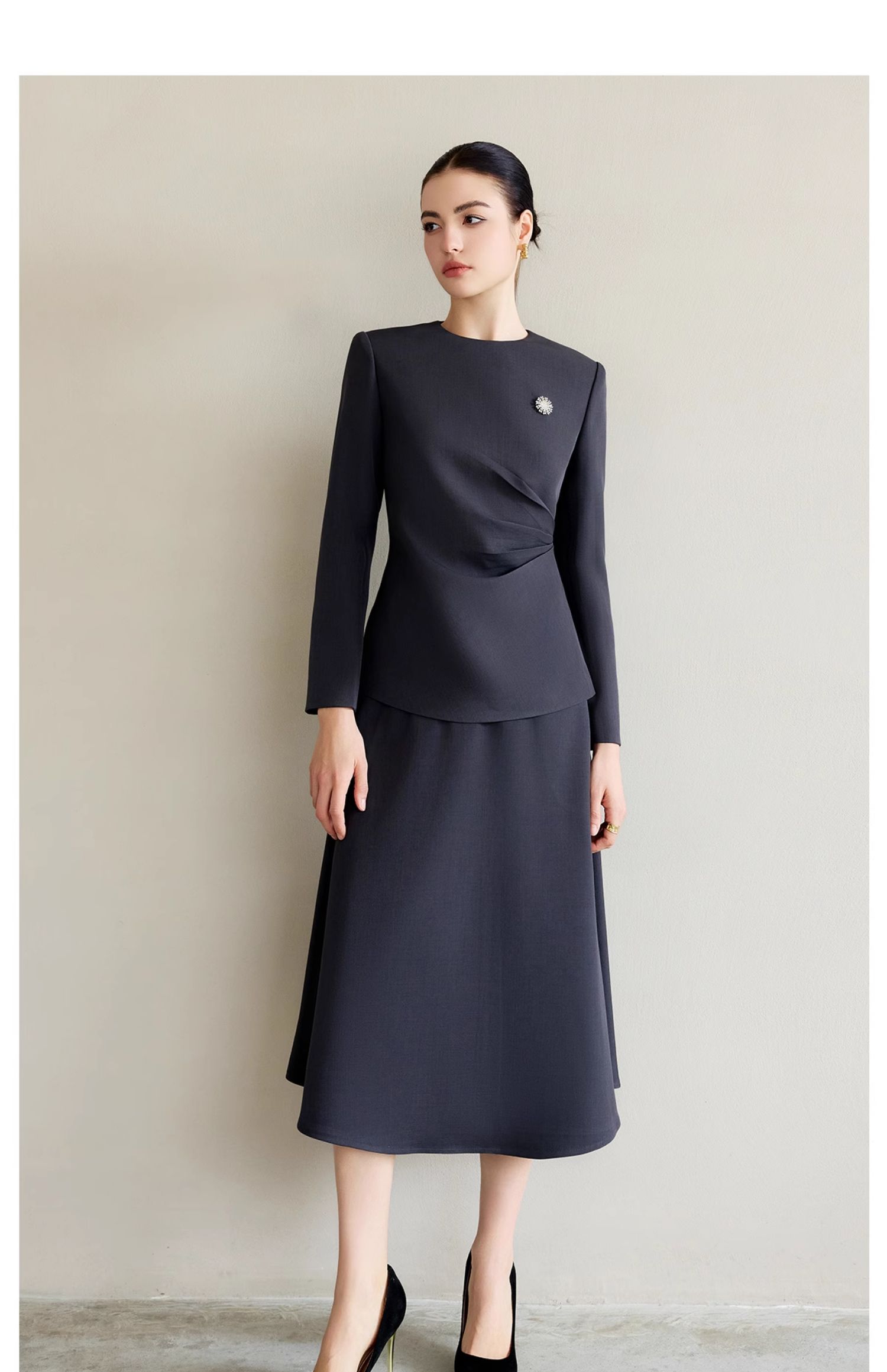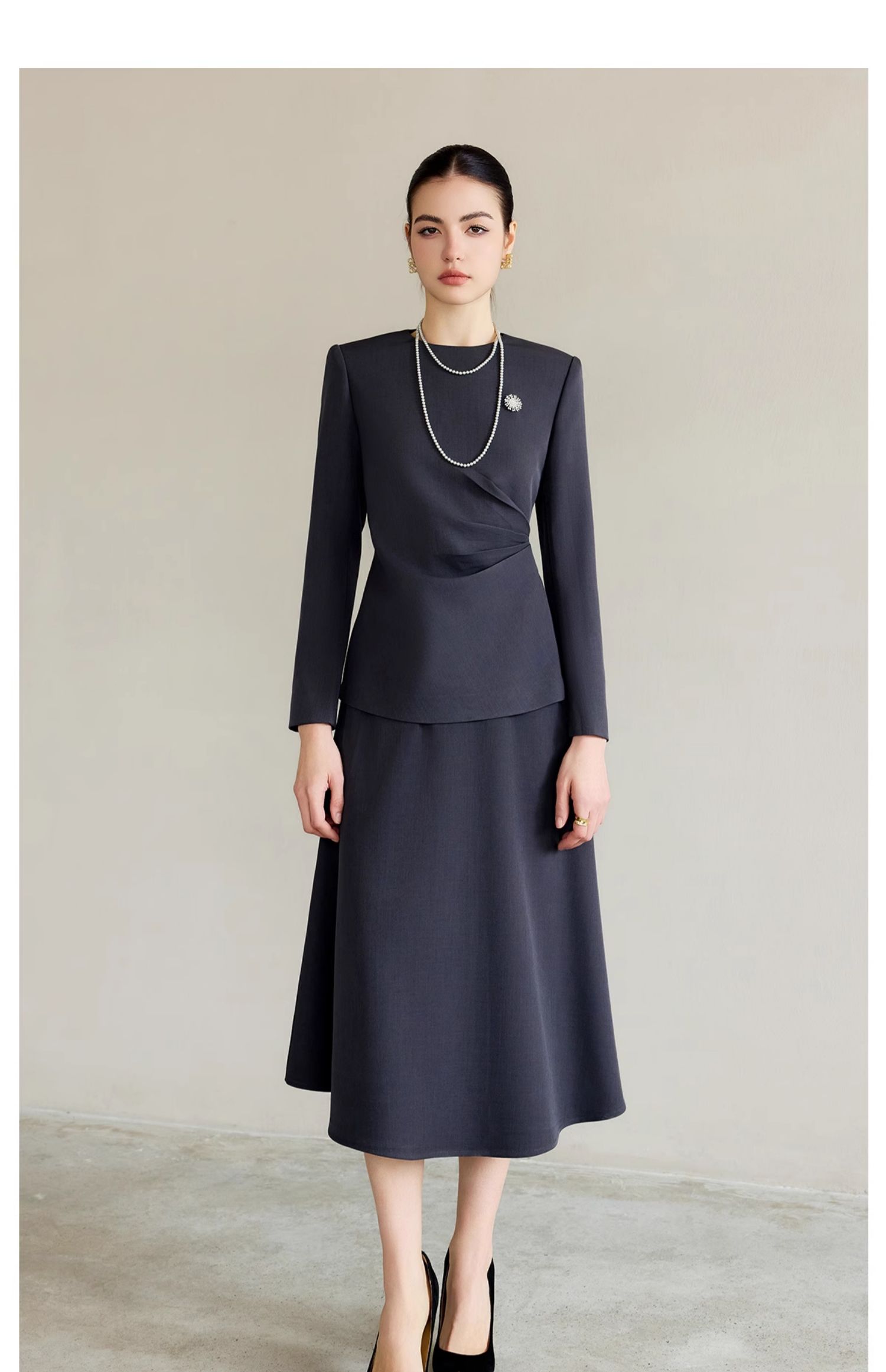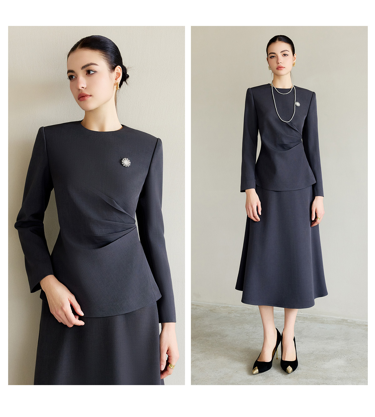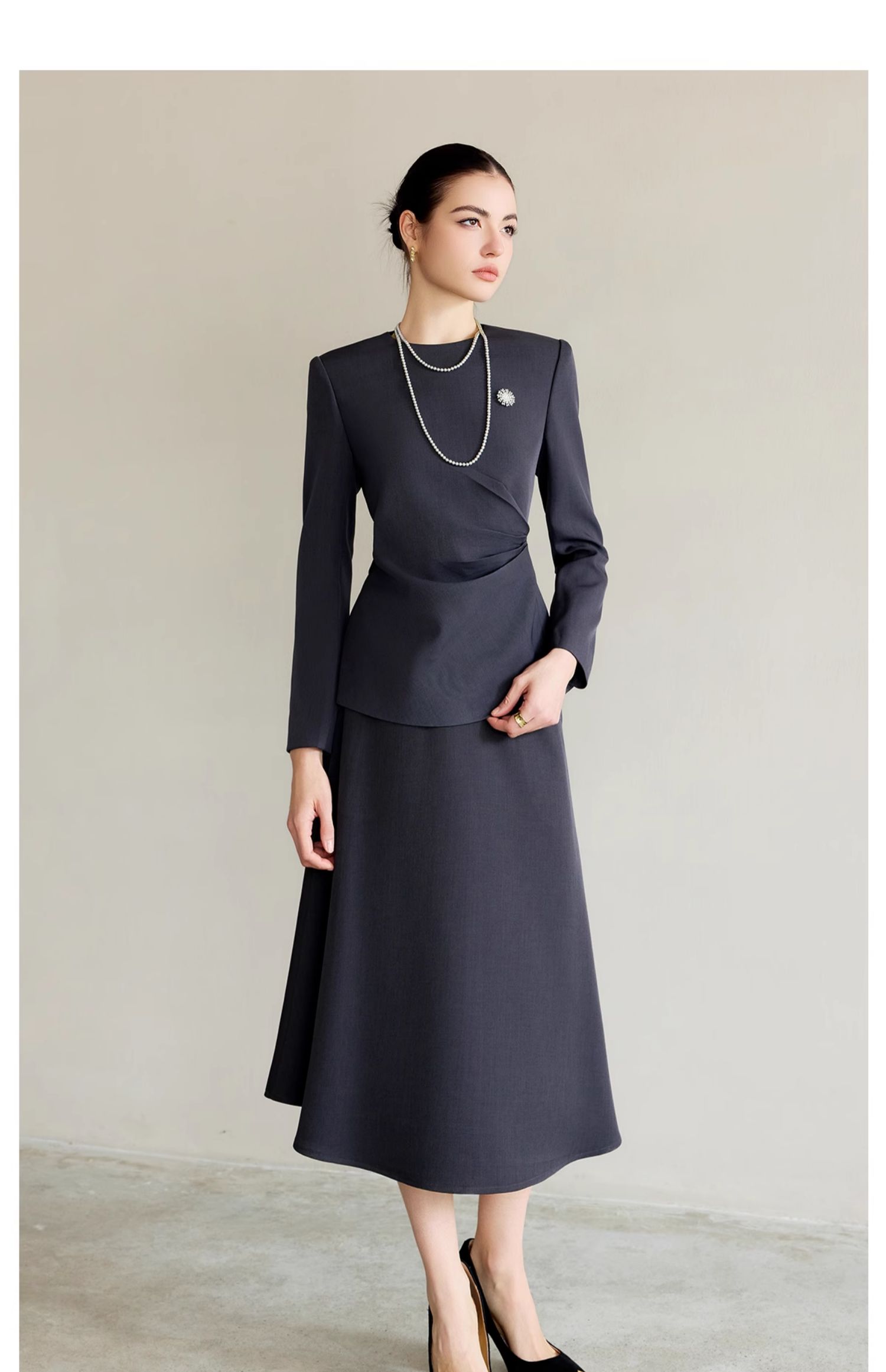 IWY/灰色西服套装气质女神范高端名媛西装两件套上流社会职业装伞裙CS2225