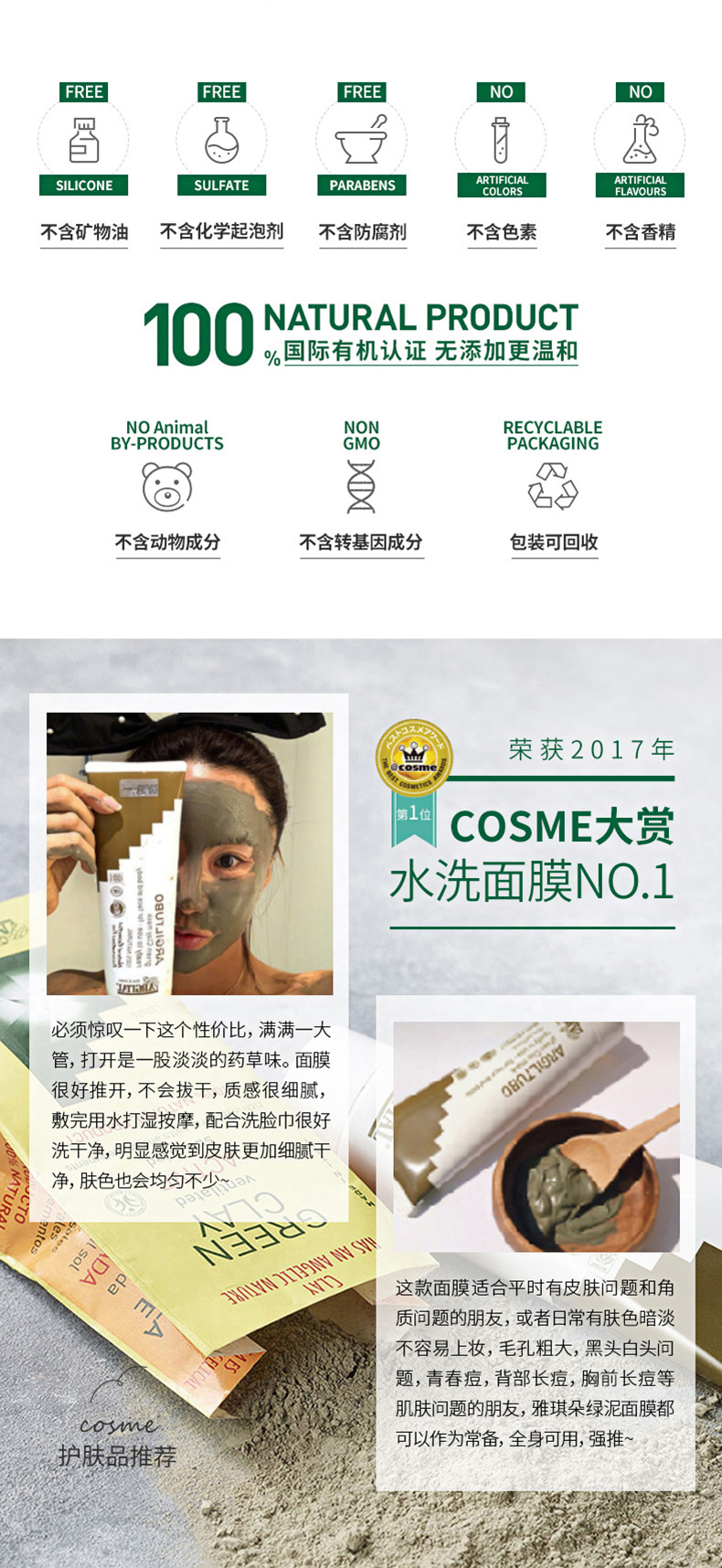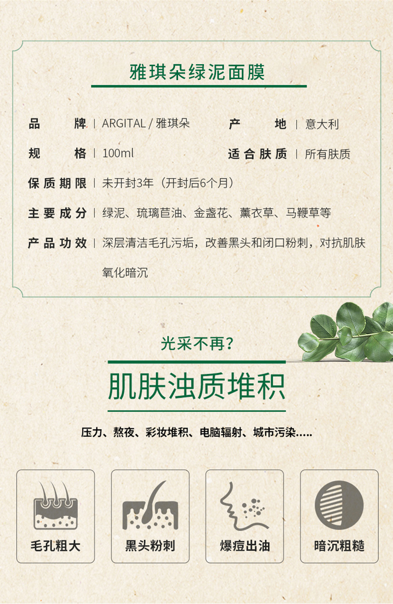 雅琪朵天然绿泥面膜 100ml/瓶