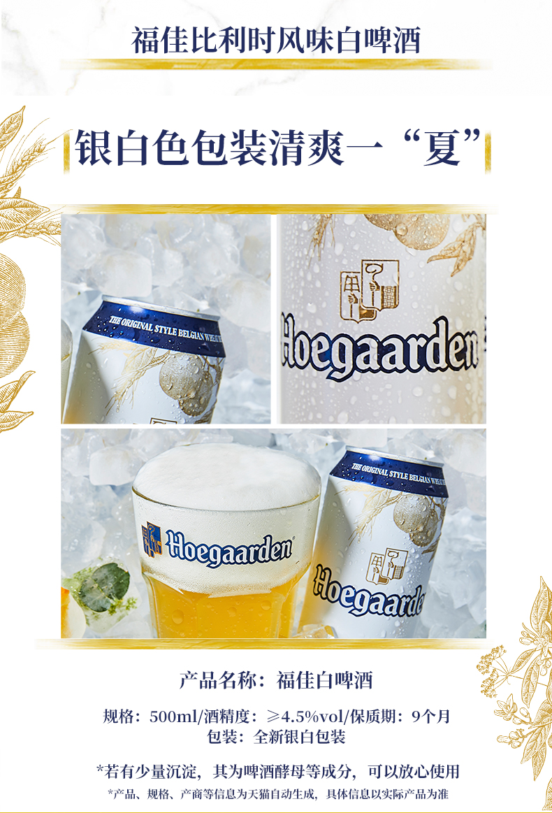 福佳啤酒500ml/012628 馥郁果香醇厚绵密银白色包装清爽一“夏”