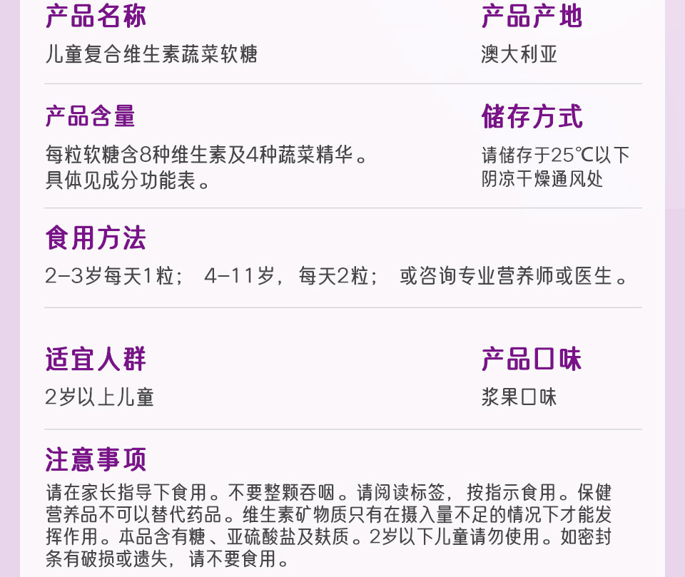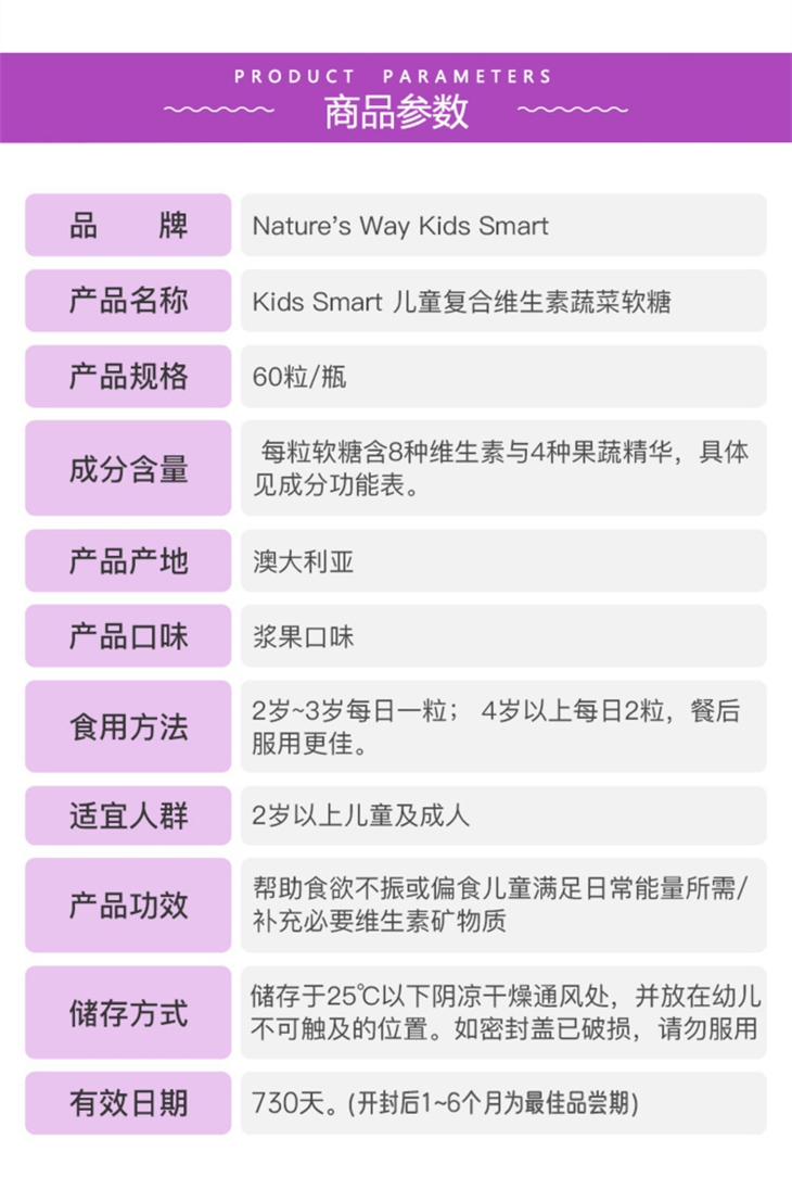 澳洲 佳思敏(Nature's Way)复合维生素+复合蔬菜软糖 60粒,适合2岁以上儿童