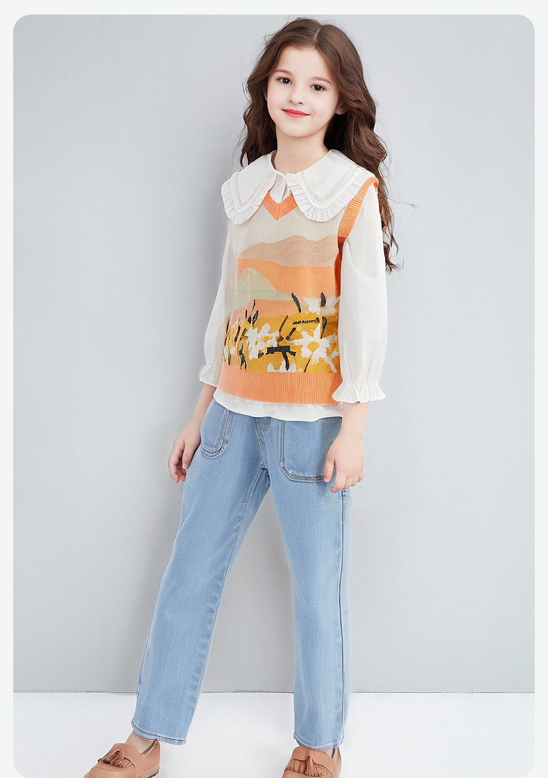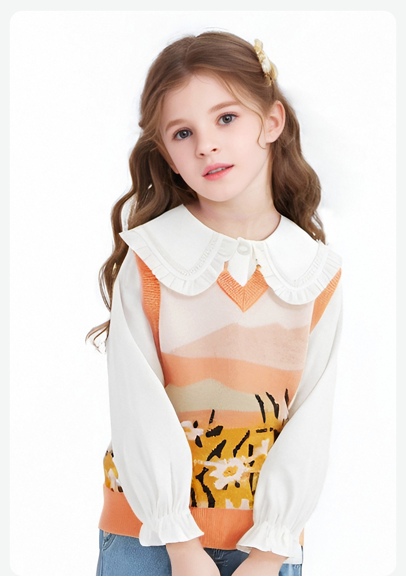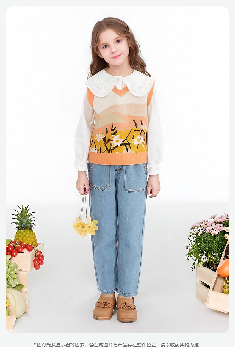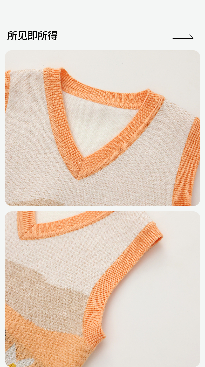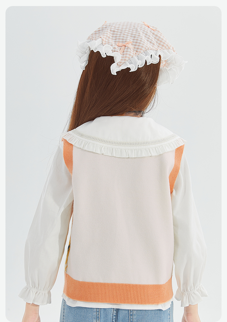 笛莎Deesha 女童2024秋季新款V领针织马甲