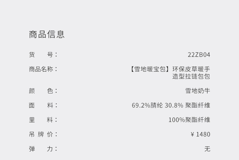 【雪地暖宝包】环保皮草暖手造型拉链包包/22ZB04