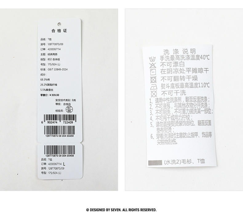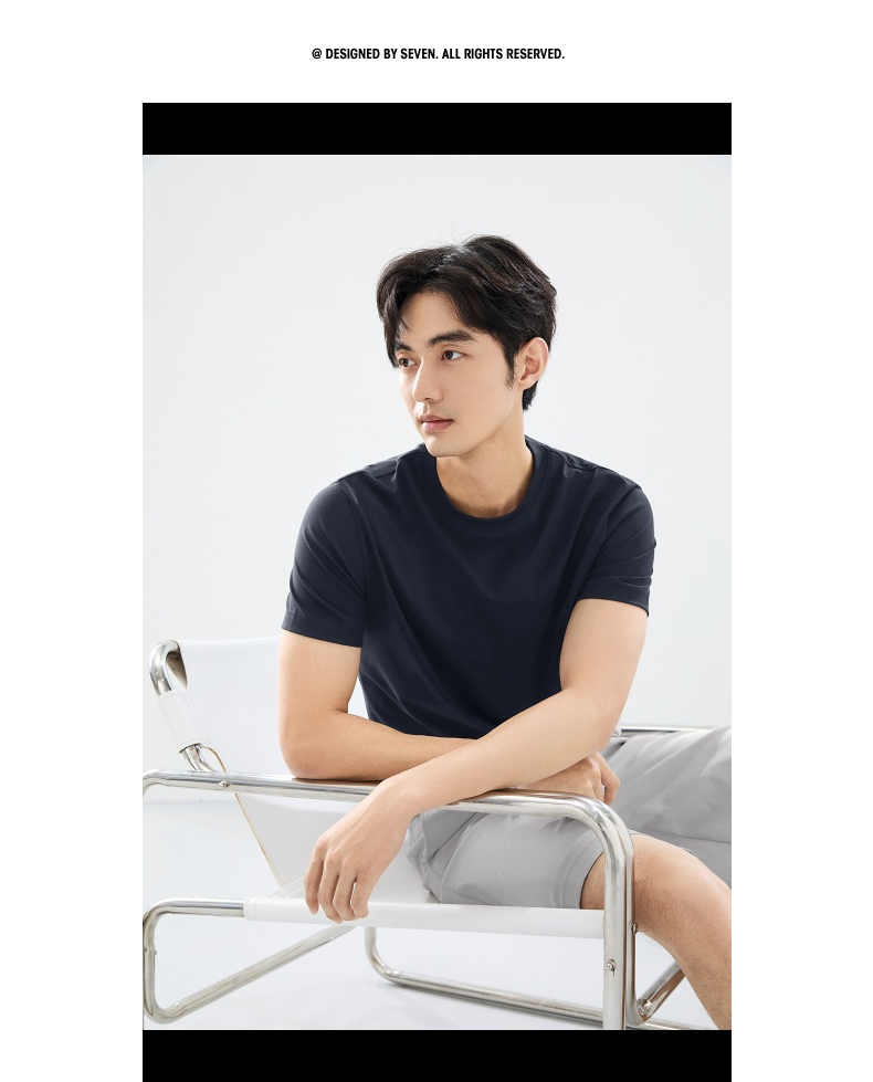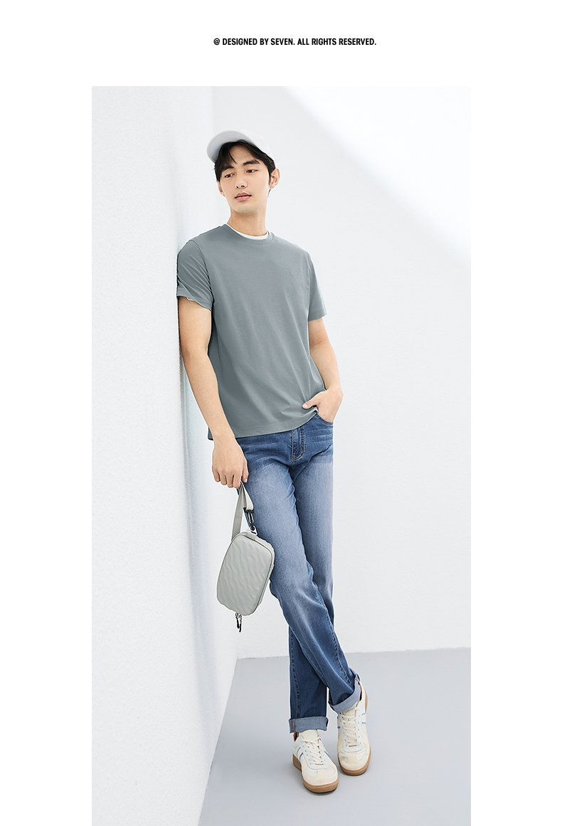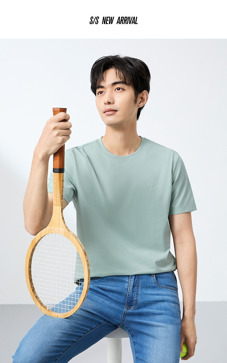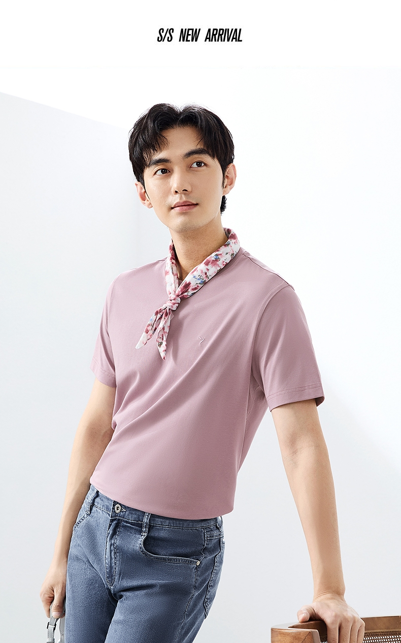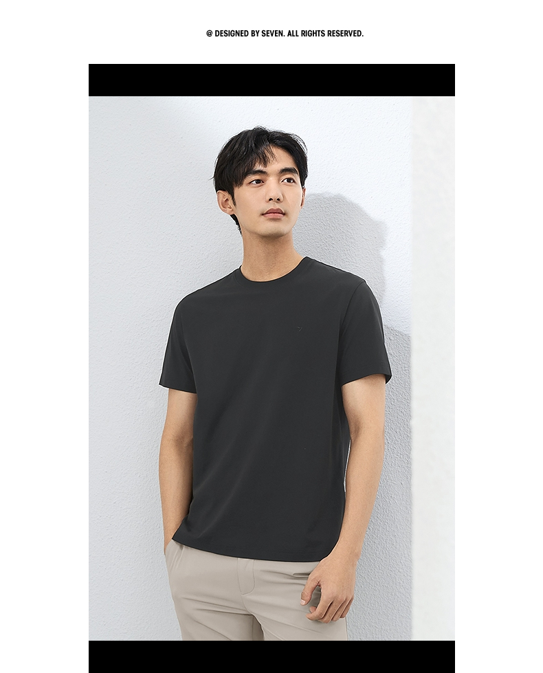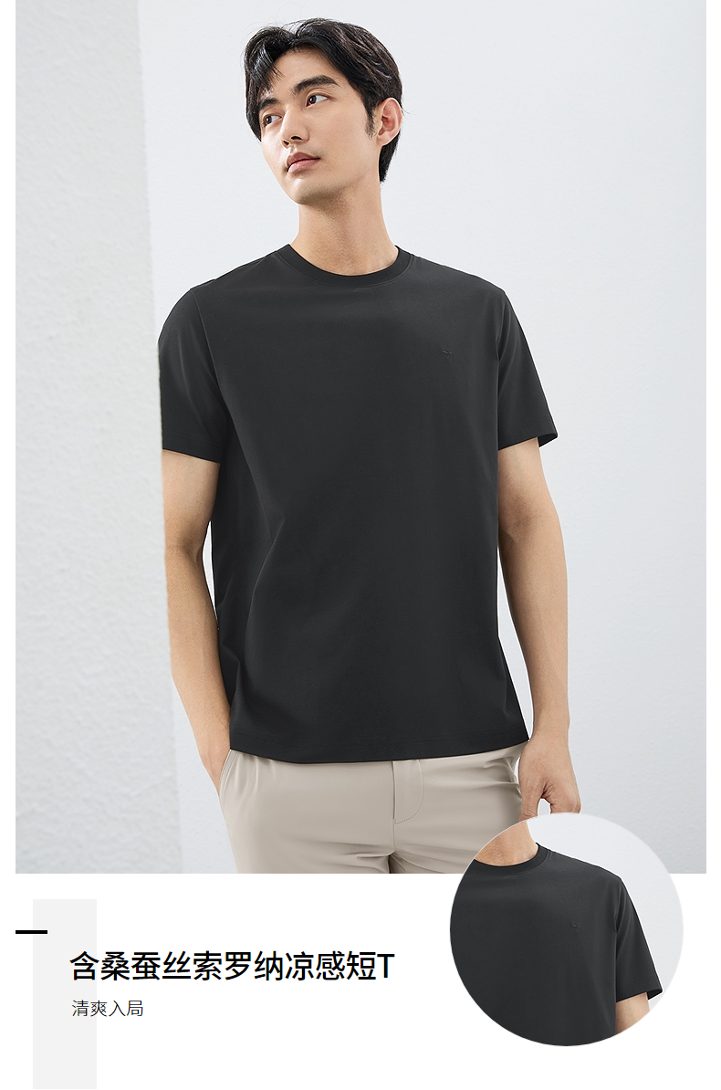 柒牌【含桑蚕丝】短袖男T恤时尚休闲圆领体恤