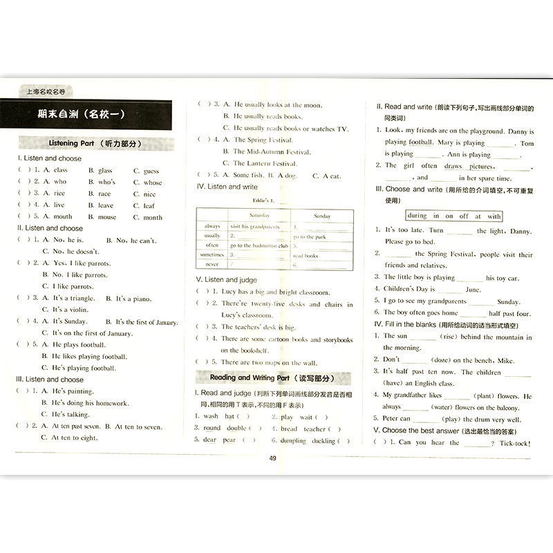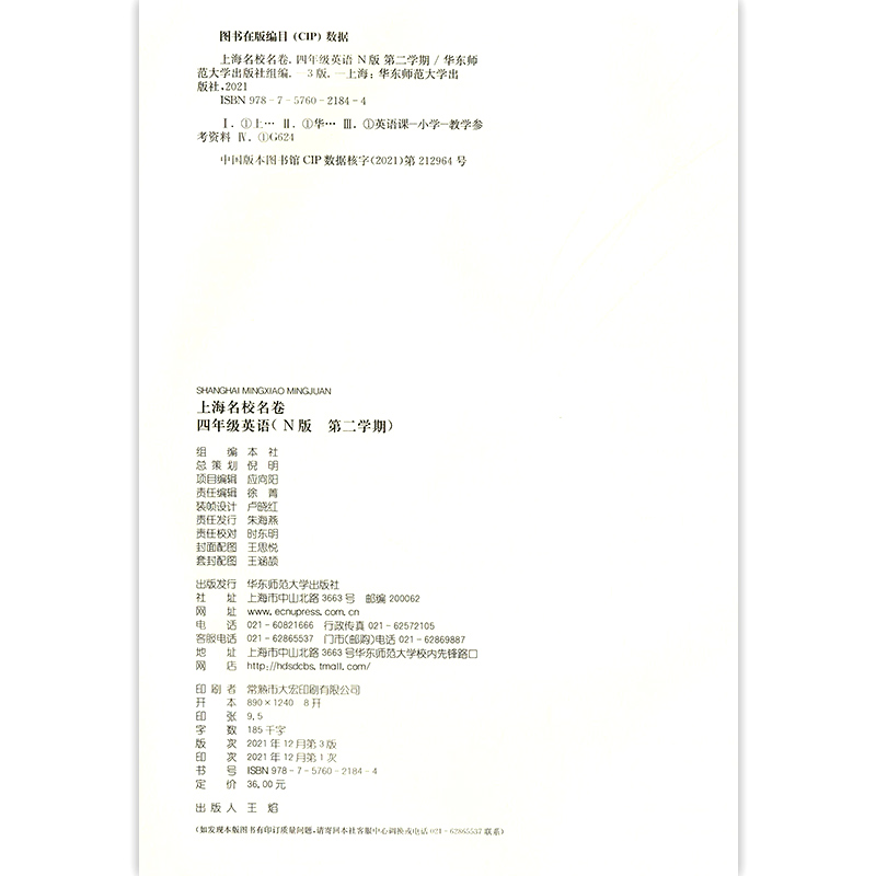 2022上海名校名卷 英语N版4年级下册/四年级第二学期 与上海牛津版英语教材配套 单元测试卷期中期末满分冲刺卷华东师范大学出版社