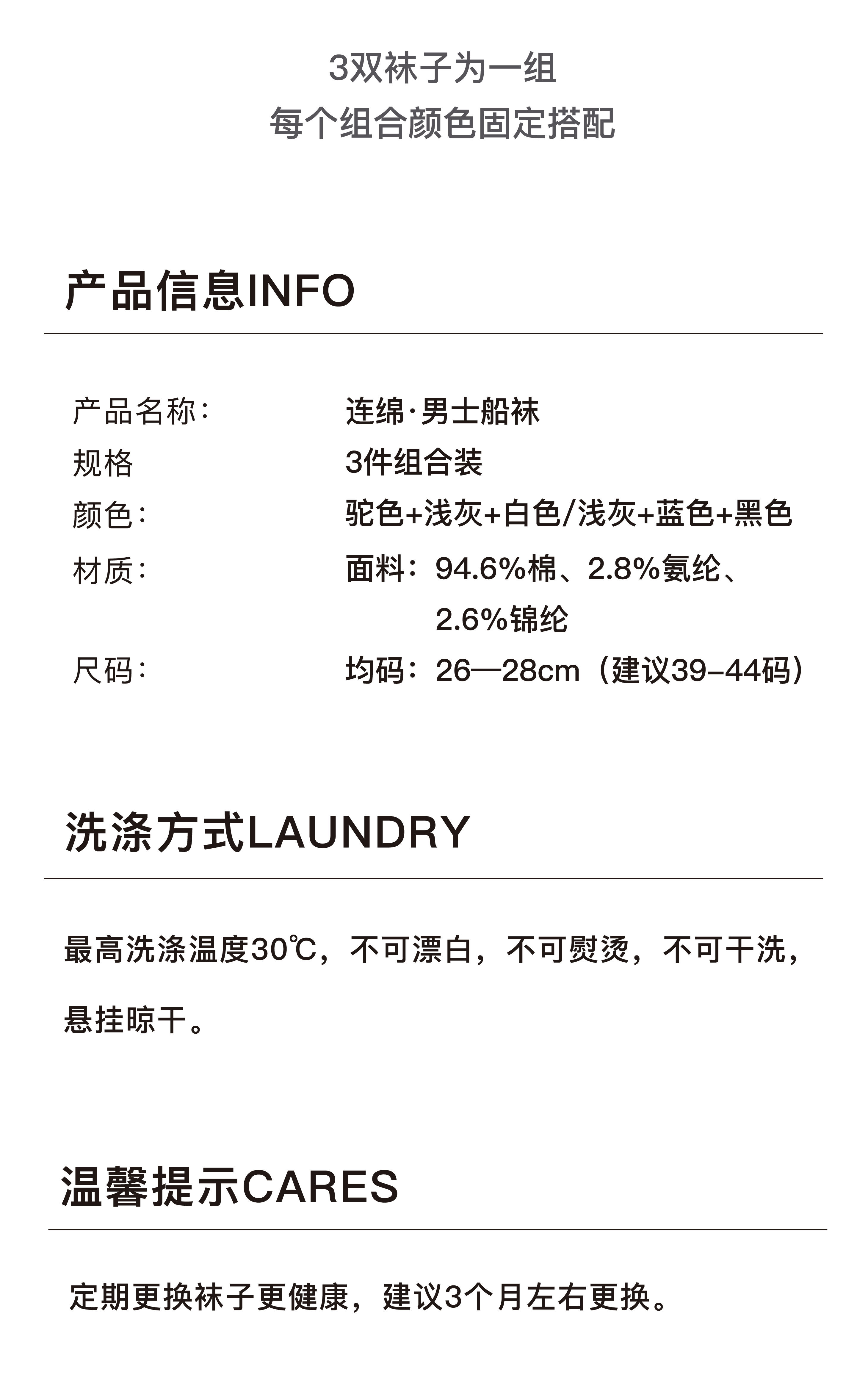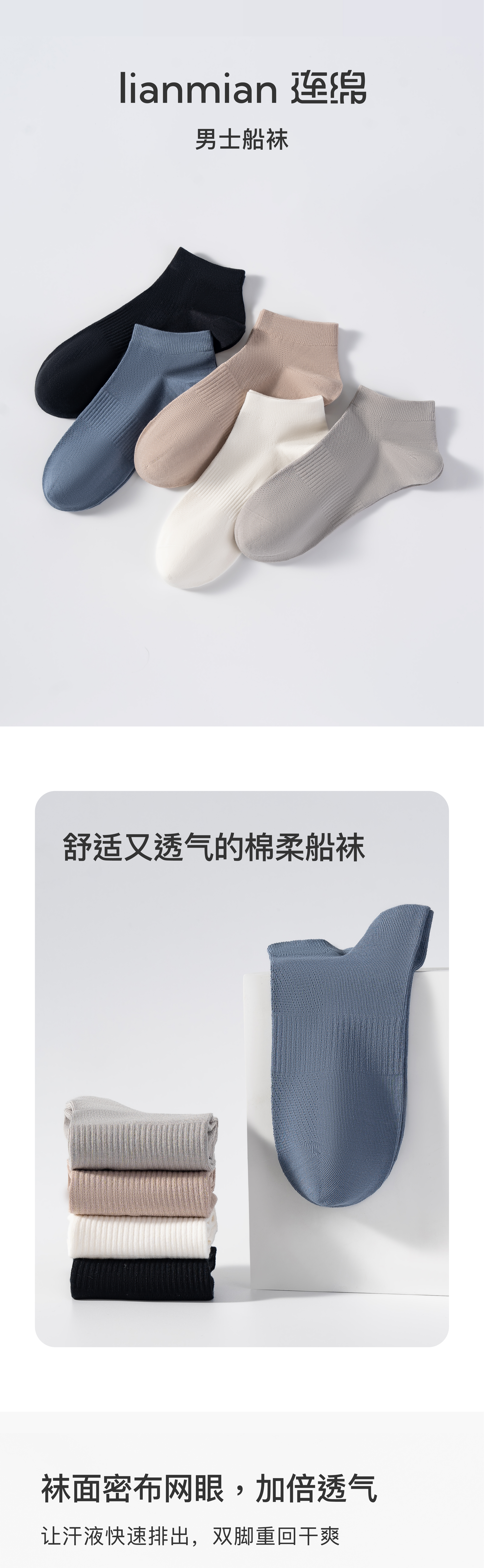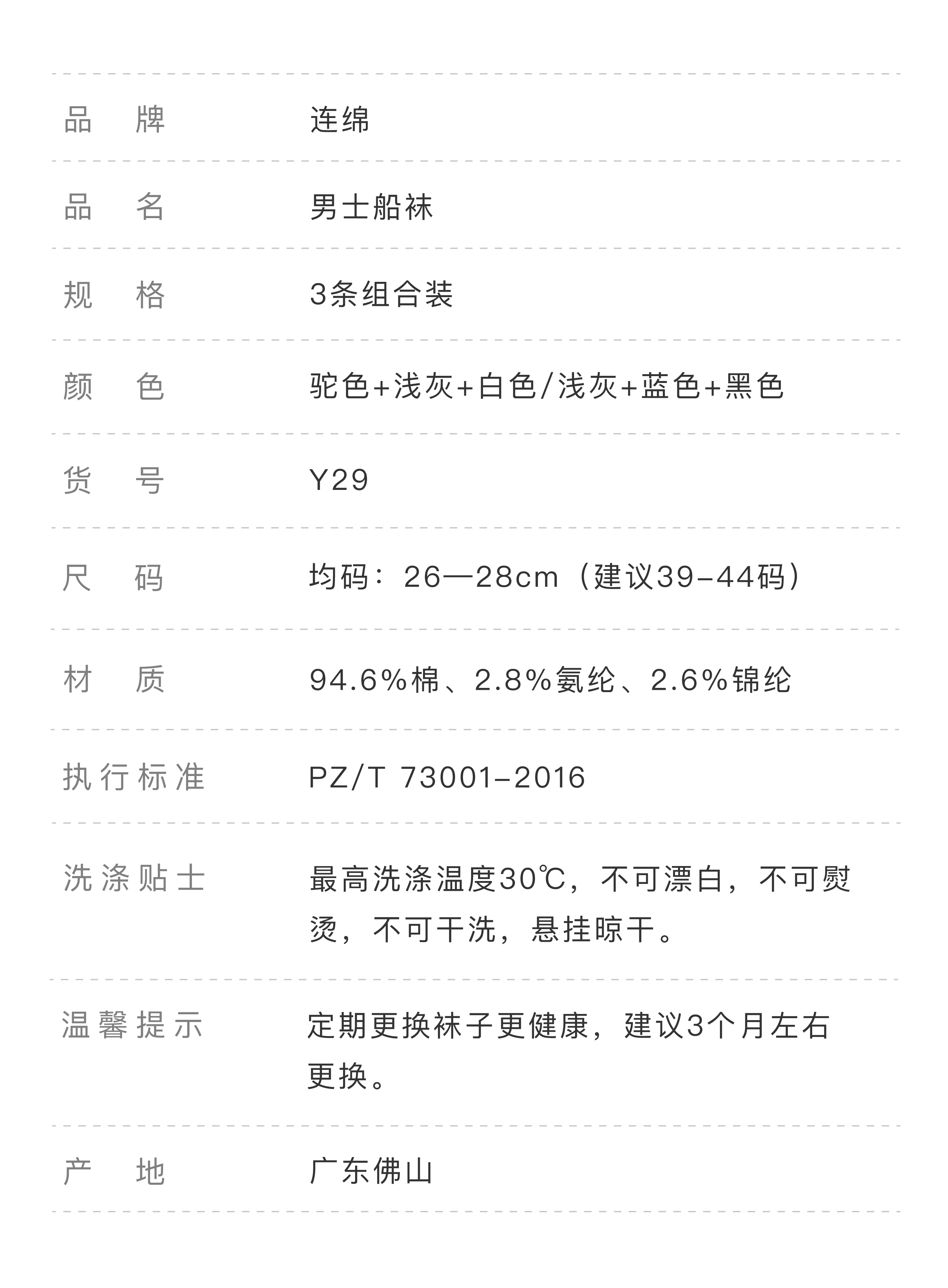 连绵·男士船袜Y29(3双装)