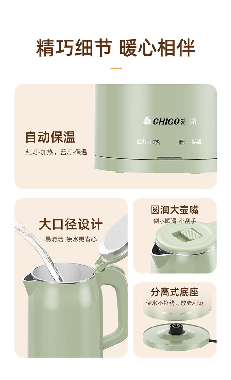 志高电热水壶不锈钢家用烧水壶保温一体自动断电大容量电热水壶
