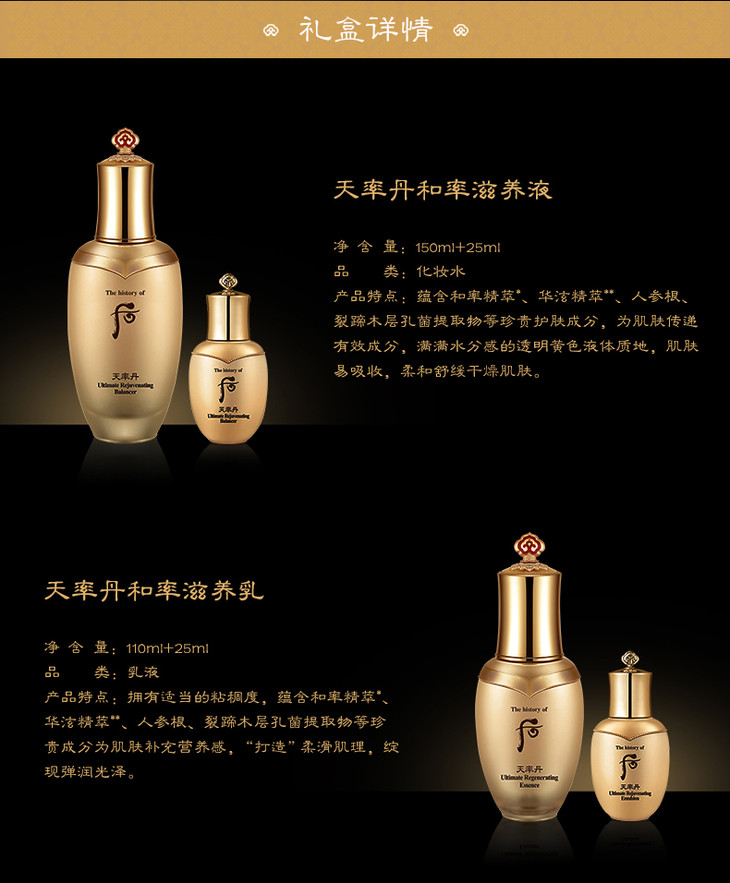 韩国 WHOO后 天率丹和率水乳7件套/6件套 套盒