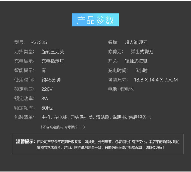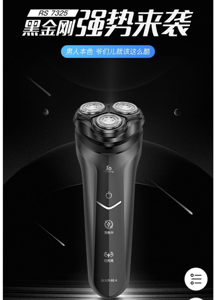 1支超人男士电动剃须刀,车载USB可充电,刀头可水洗
