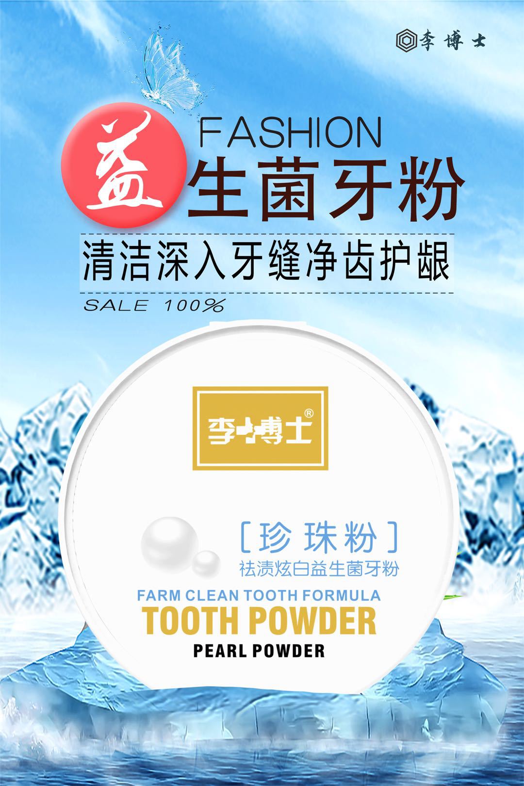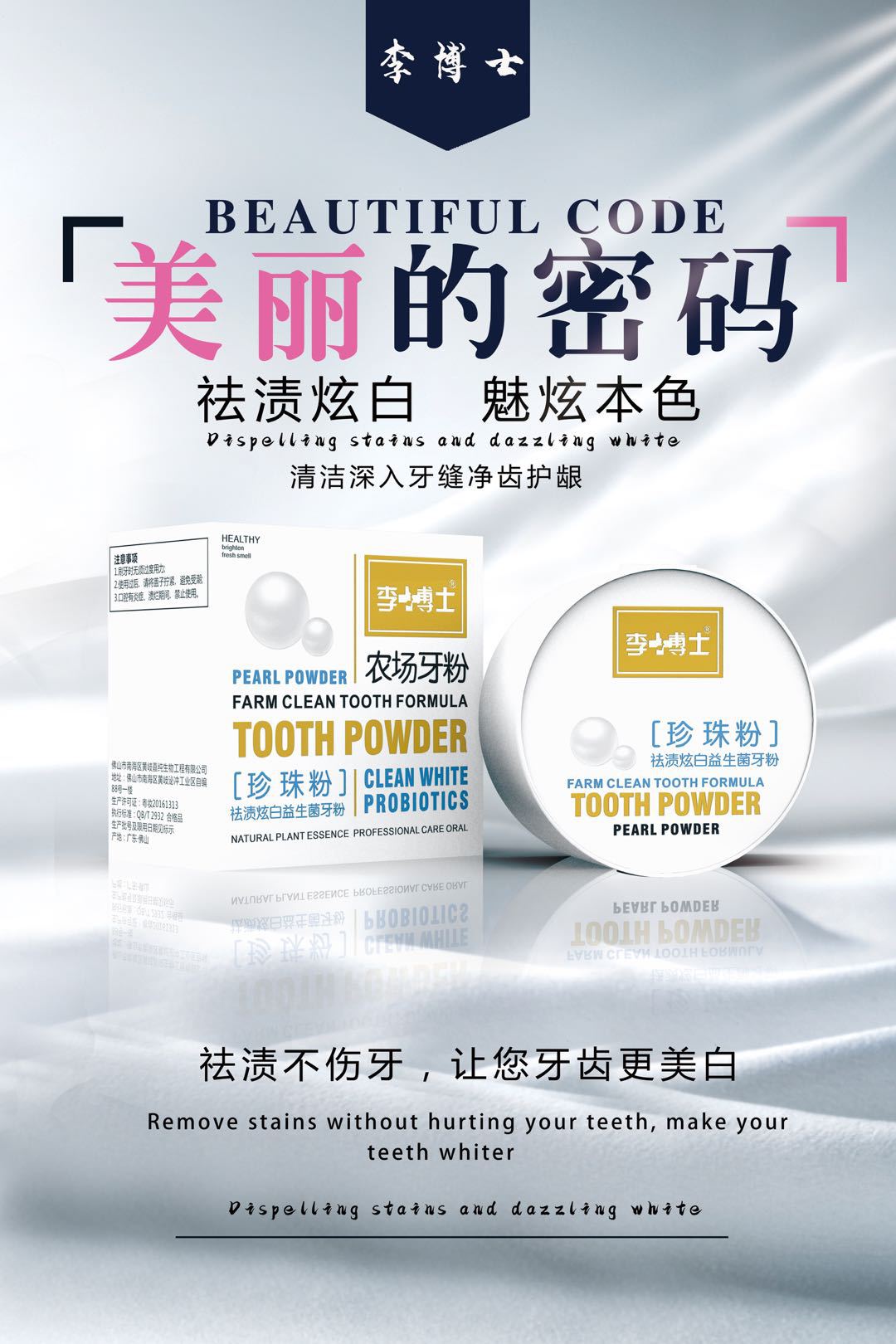 李博士 珍珠祛渍炫白益生菌洁牙素 去黄亮白洗白清新口气洗牙粉50d/盒