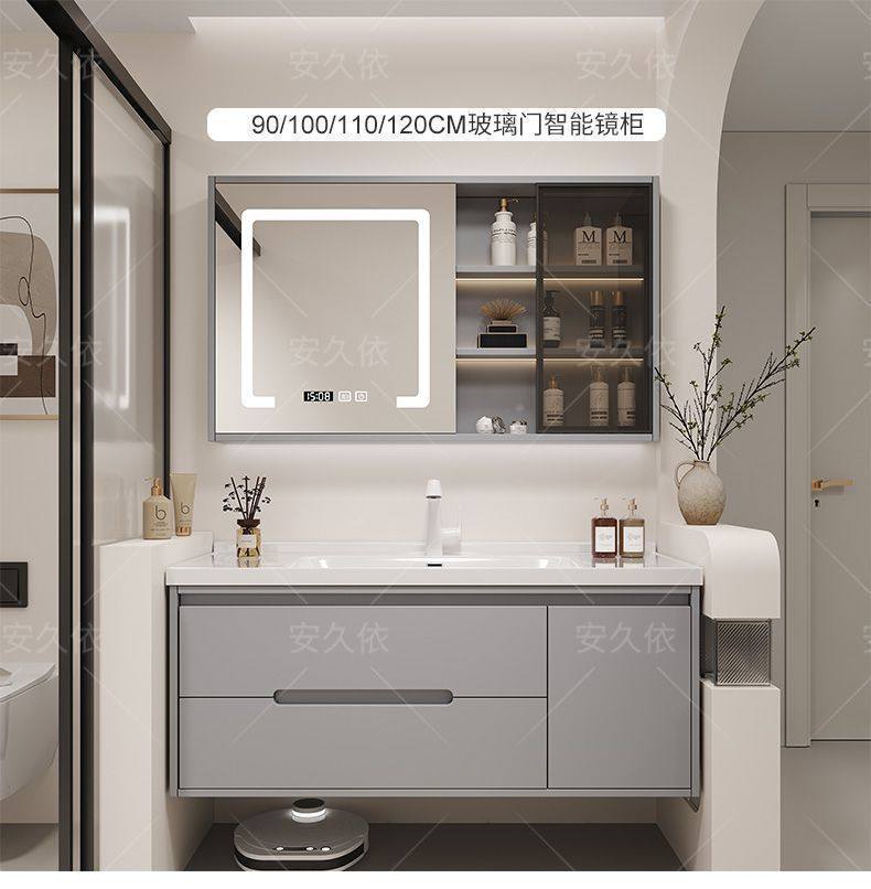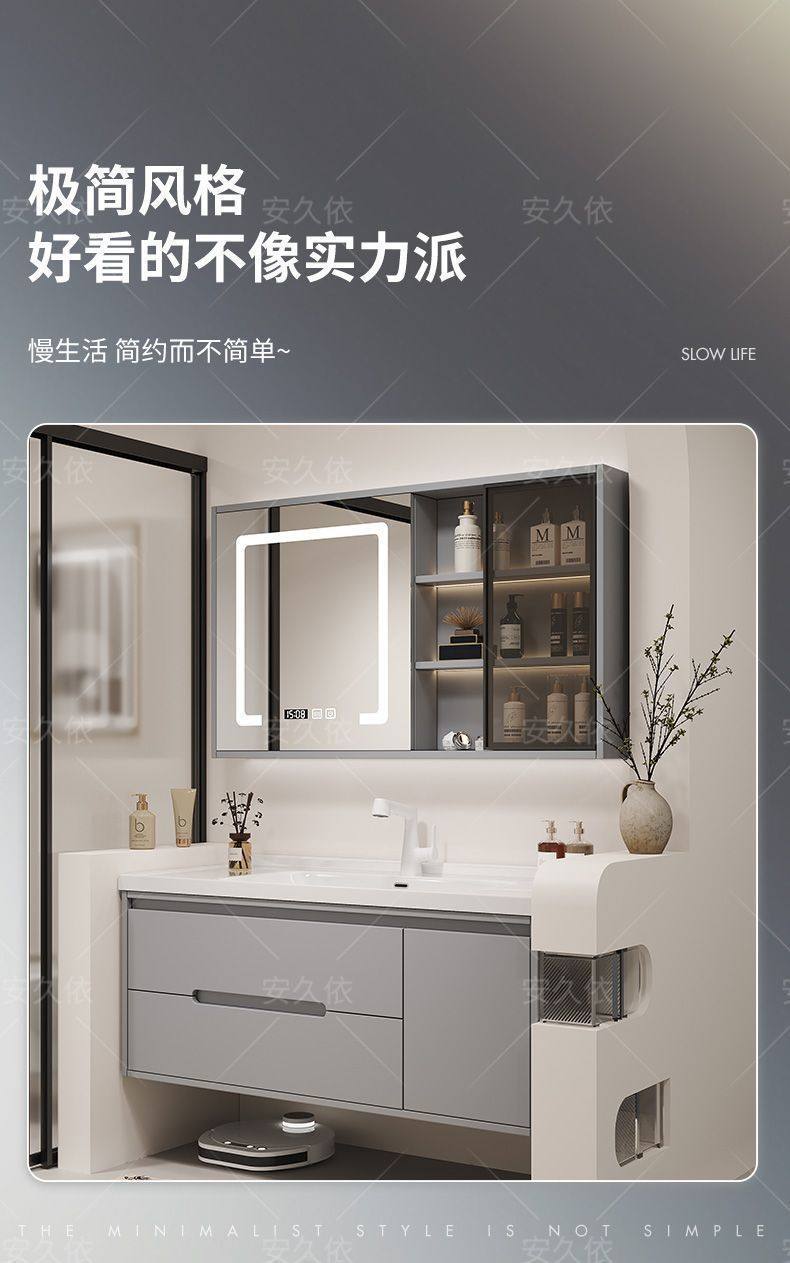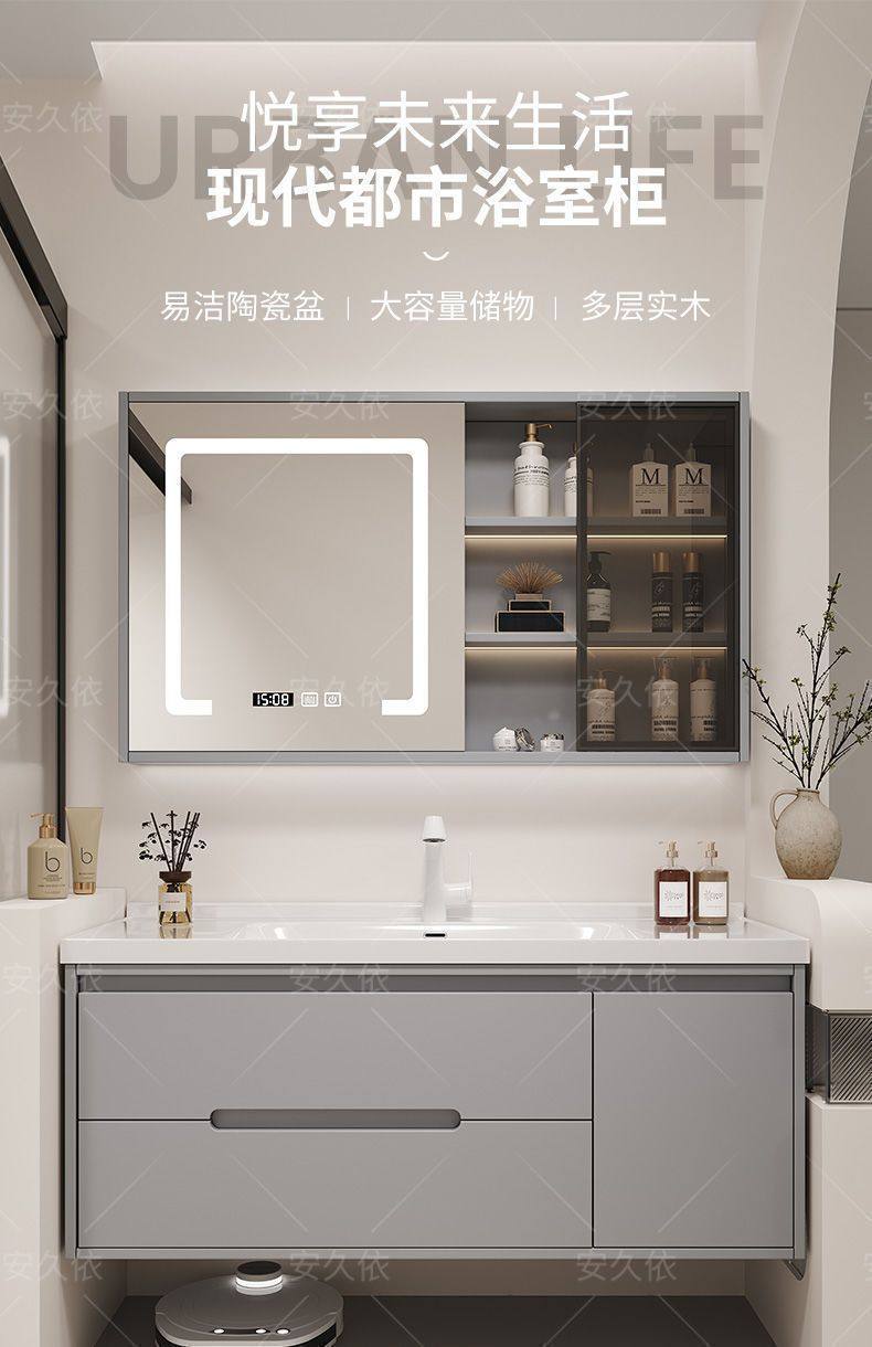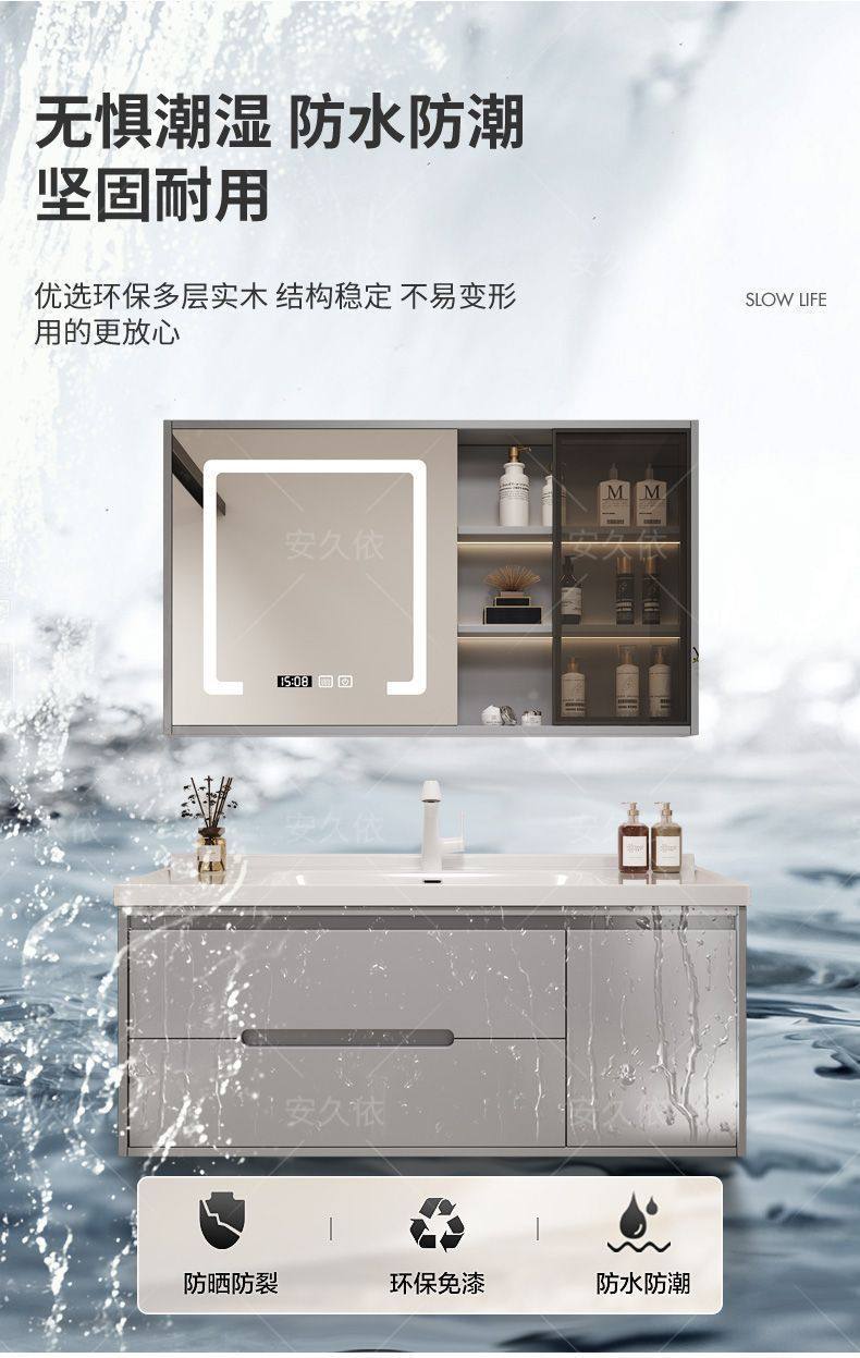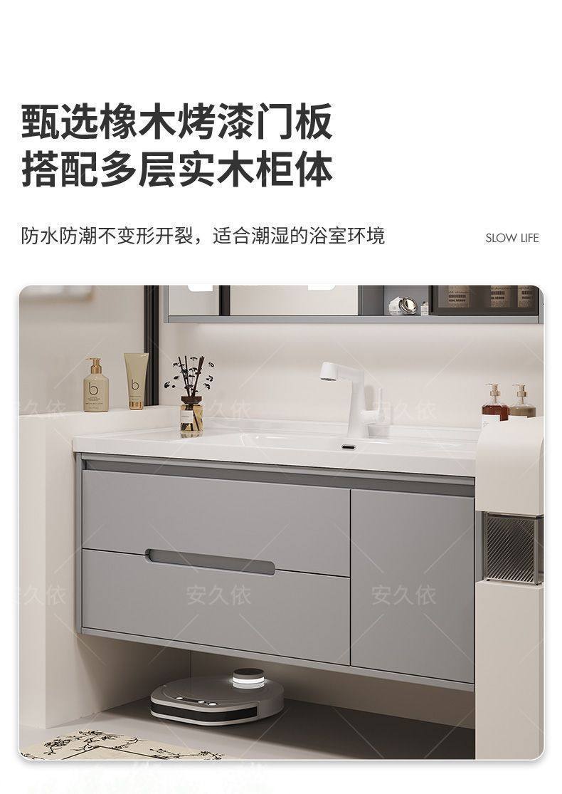 洗手池组合卫生间陶瓷洗手洗漱浴室柜橡木洗脸盆烤漆一体洗手盆