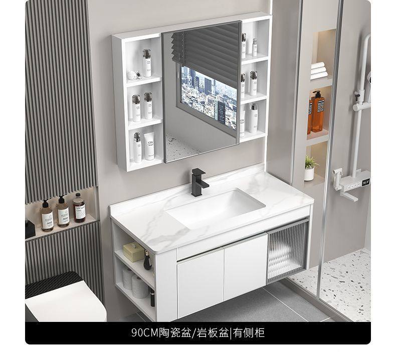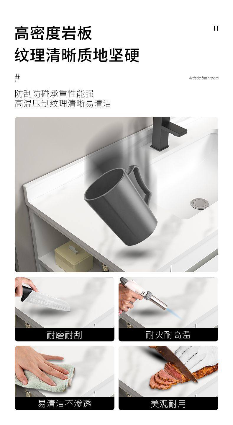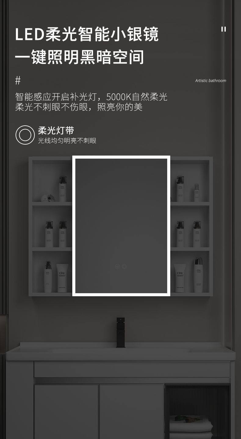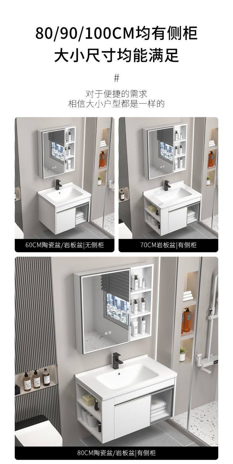 夹柜加厚浴室柜盆不锈钢304陶瓷蜂窝美妆镜R&T板一体智能岩板铝
