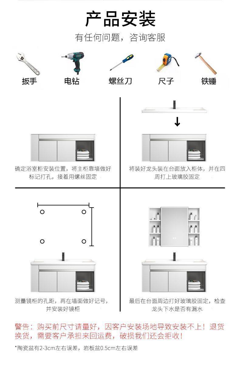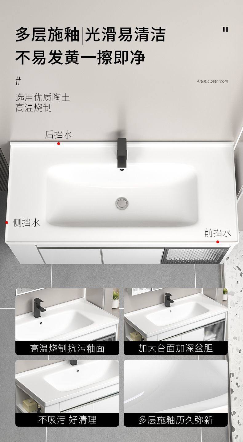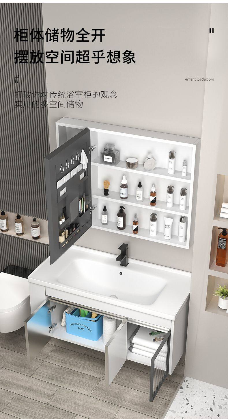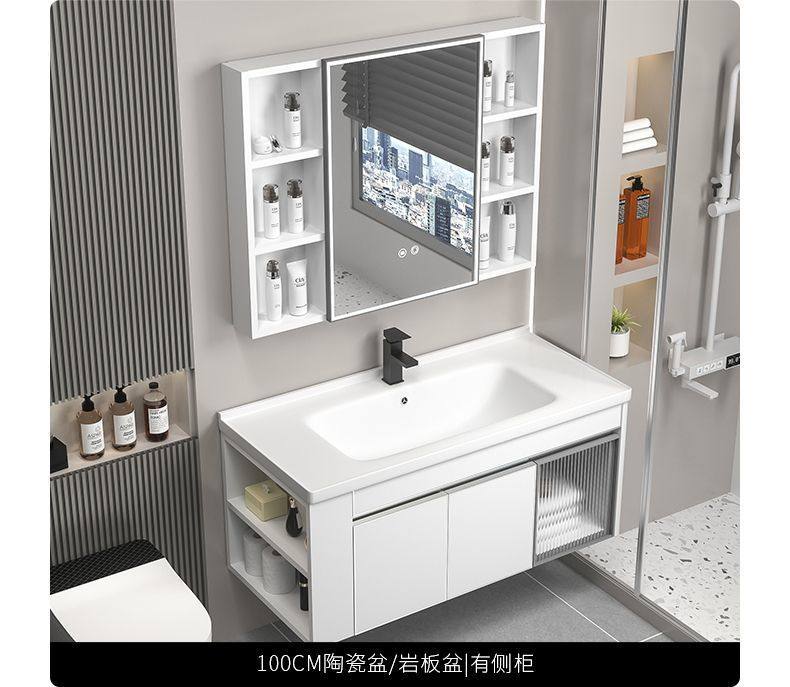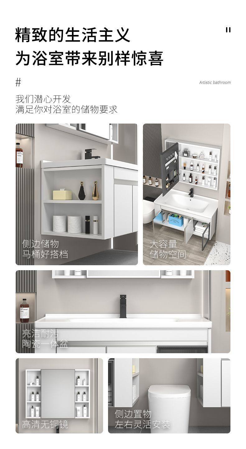 夹柜加厚浴室柜盆不锈钢304陶瓷蜂窝美妆镜R&T板一体智能岩板铝