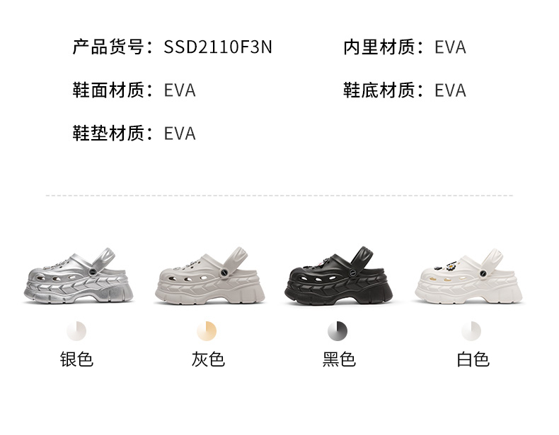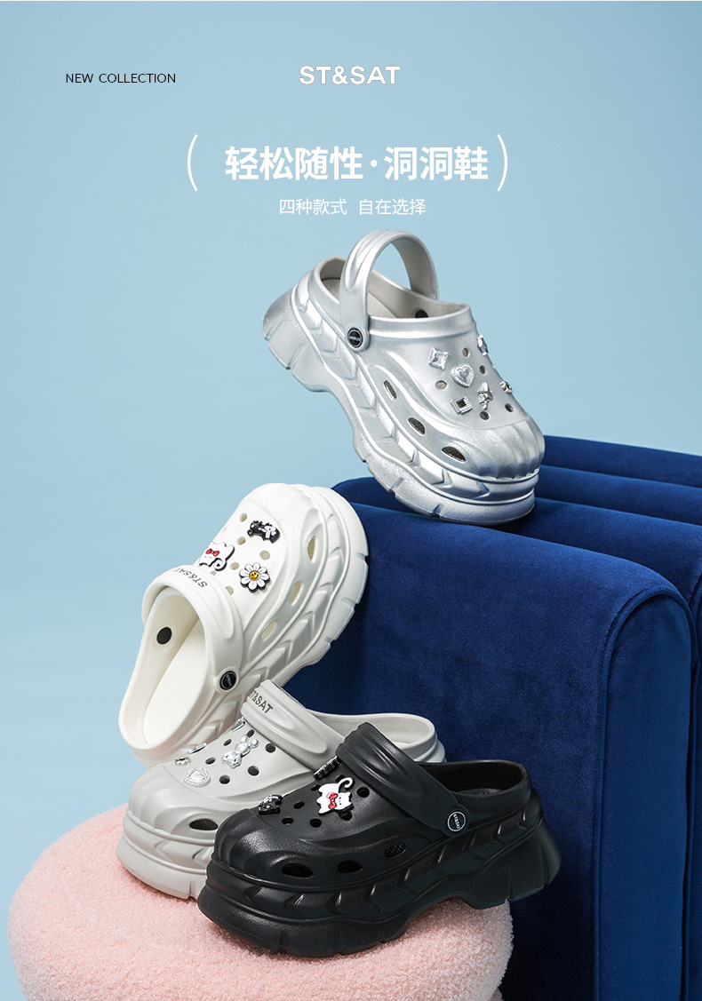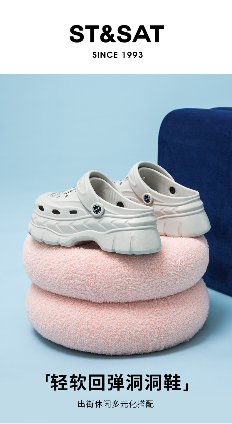 星期六防滑百搭厚底极光贝壳洞洞鞋SSD2110F3N