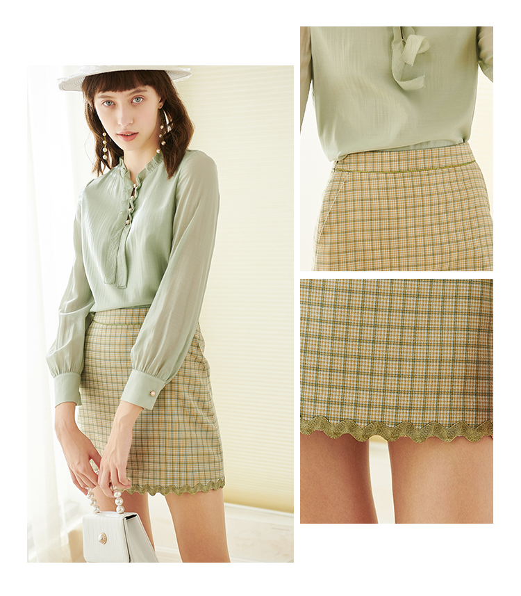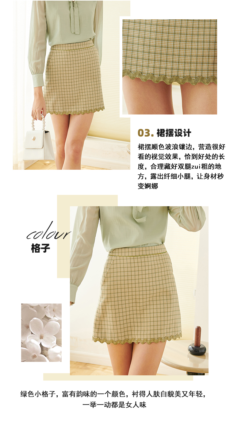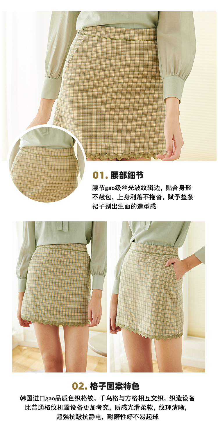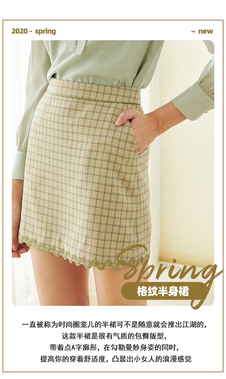 欧芮儿春新款高腰显瘦格子半身裙女不规则短裙洋气包臀裙